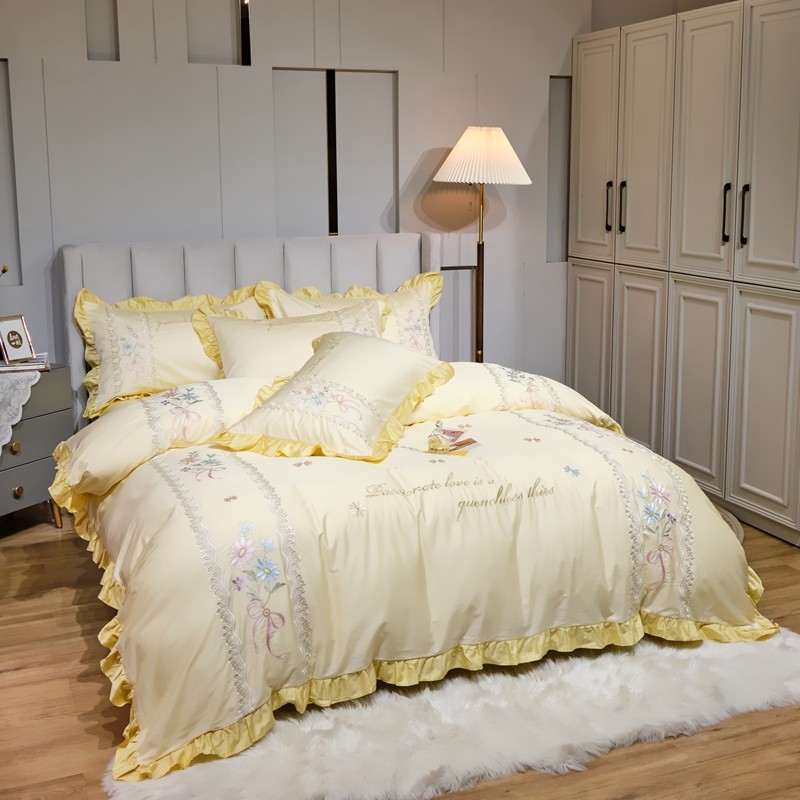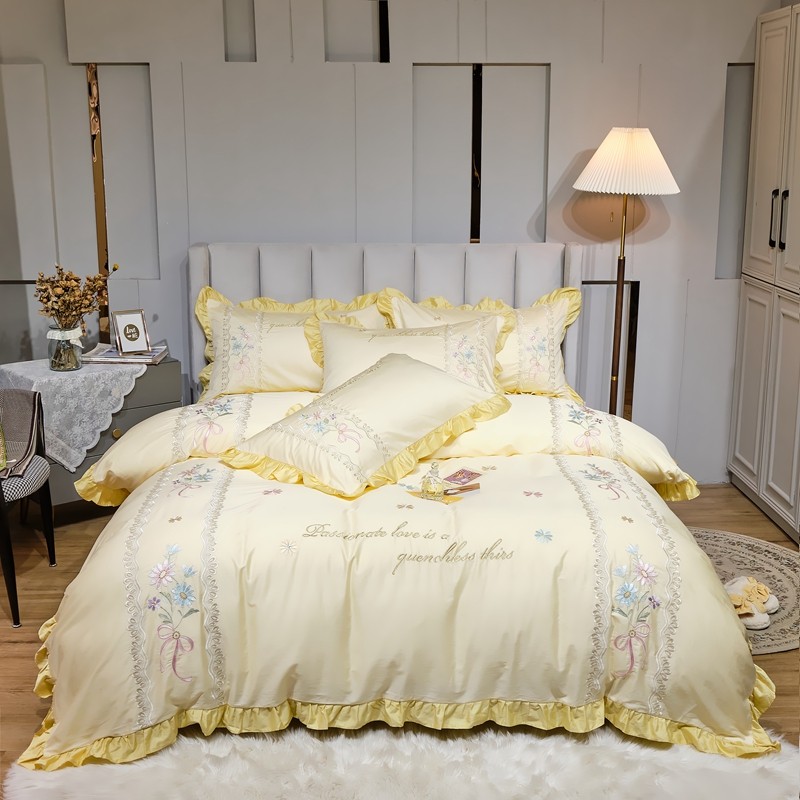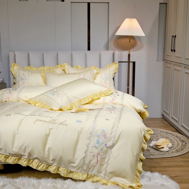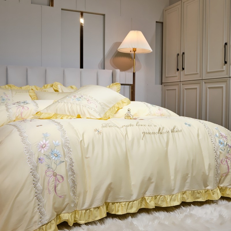 星尚 2022新款100支长绒棉四件套-花田森 米黄