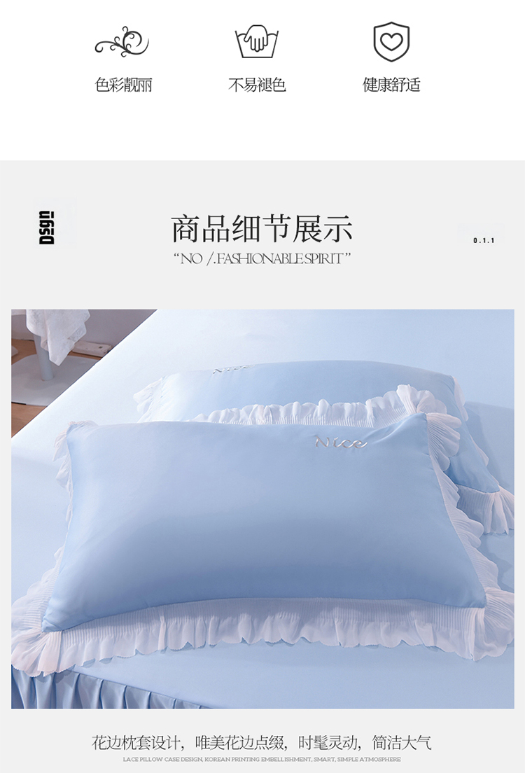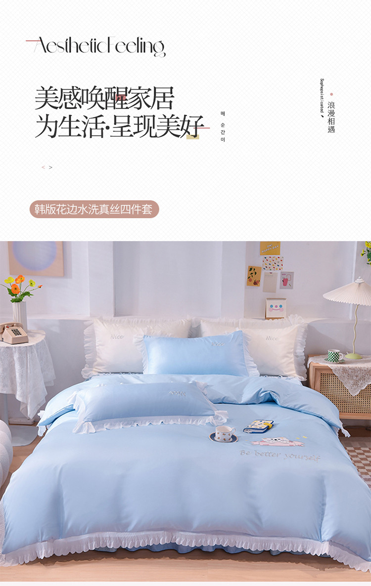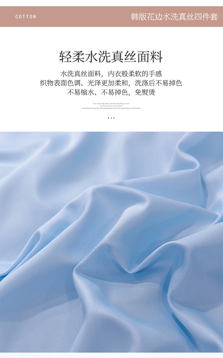 (总)艾米家居 2026春夏水洗真丝花边款四件套-春漾系列,珍珠白,公主粉,青苹绿,水波蓝,浅藕色