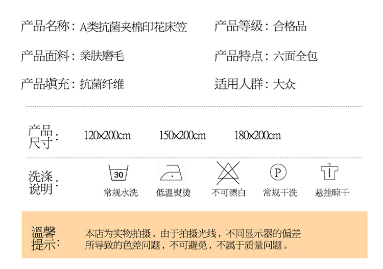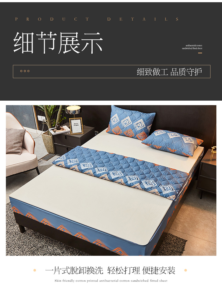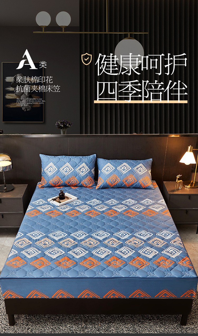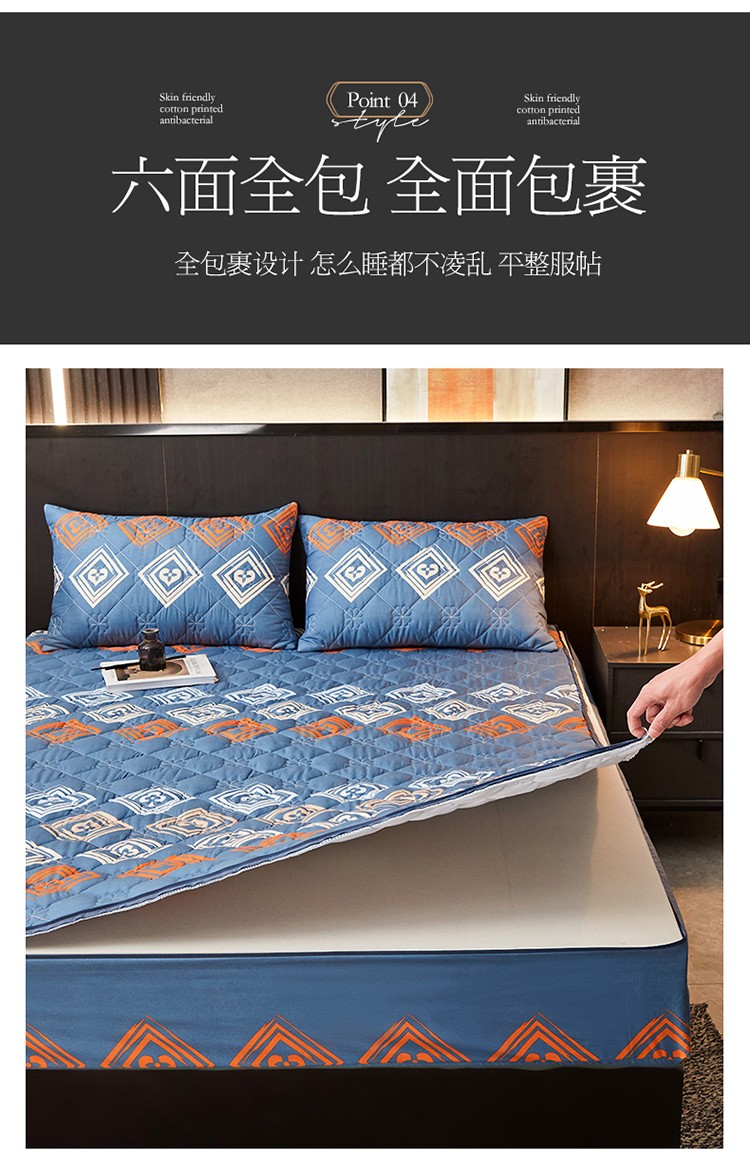 商品名称:(总) 纤雅床笠 2024新款亲肤印花抗菌六面全包夹棉床笠