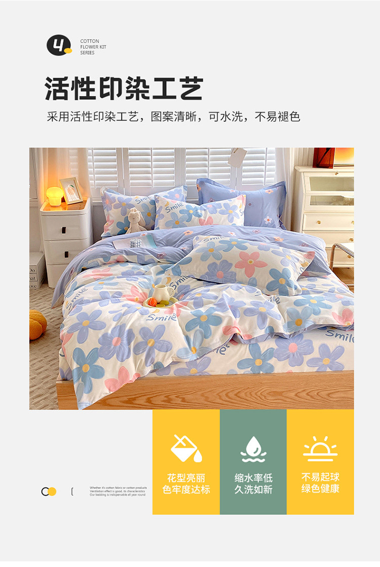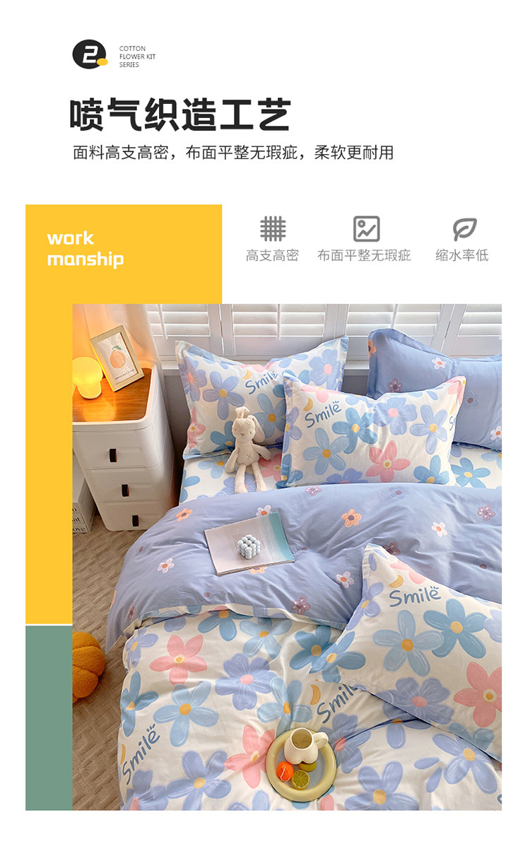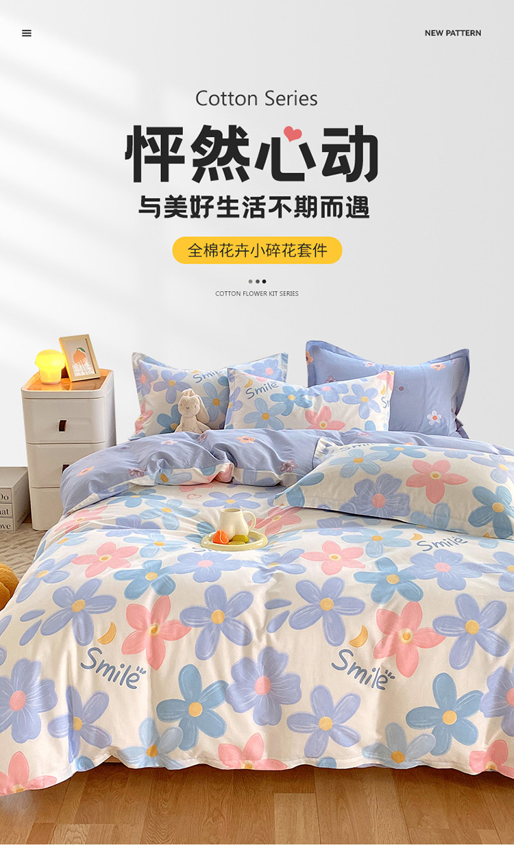 当前位置: 91家纺网 > 商品网购 > 床品套件 > 四件套 > 全棉普通四件套 > 拾物记 2022新款A类12868全棉喷气印花系列四件套 浅浅花漾