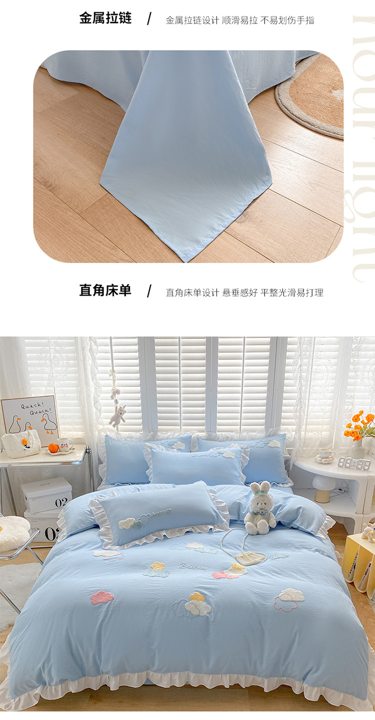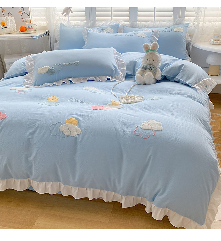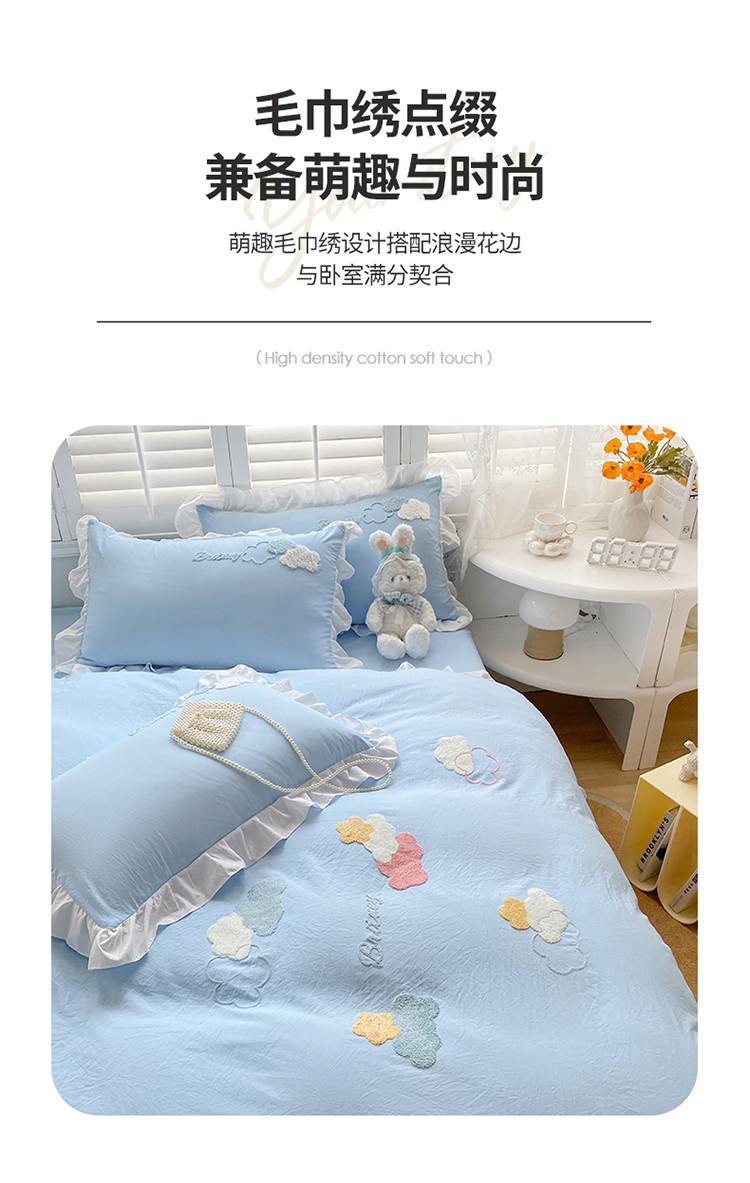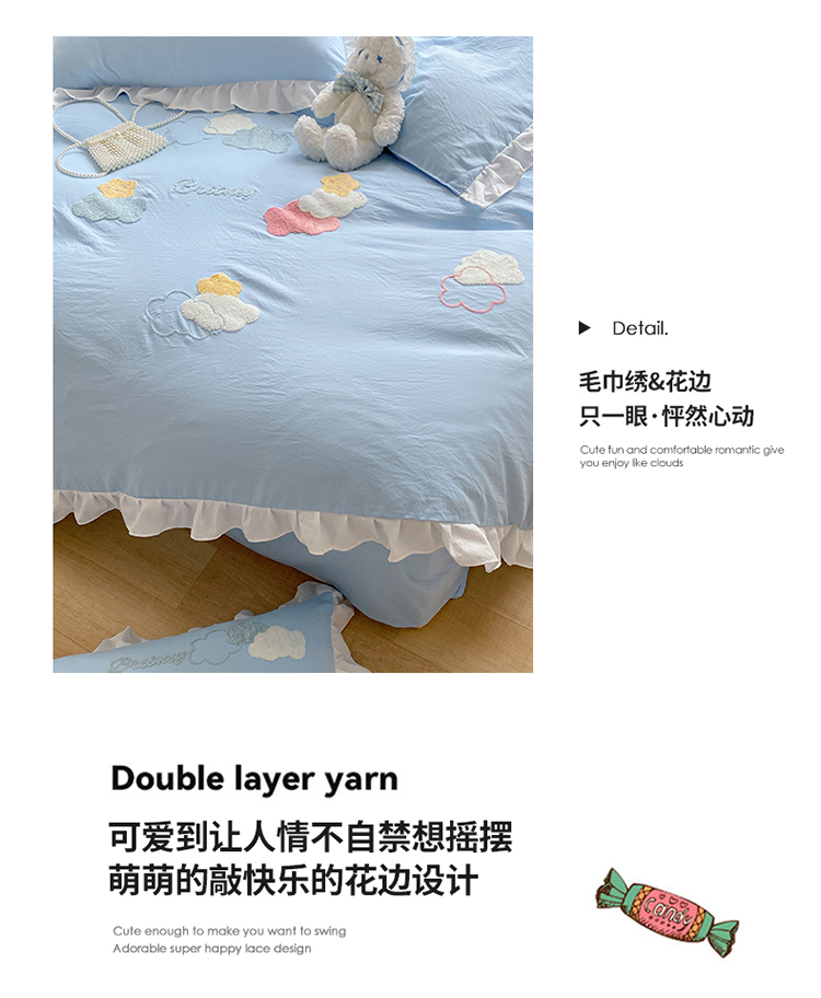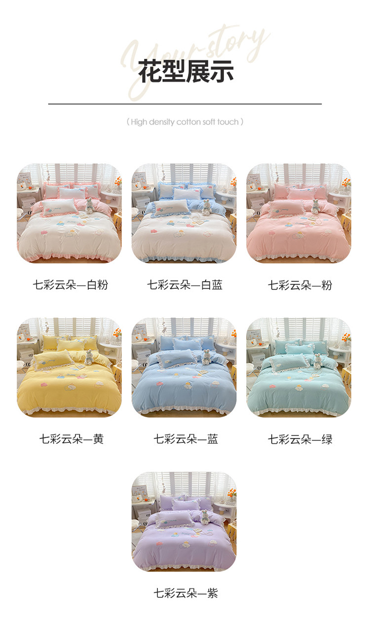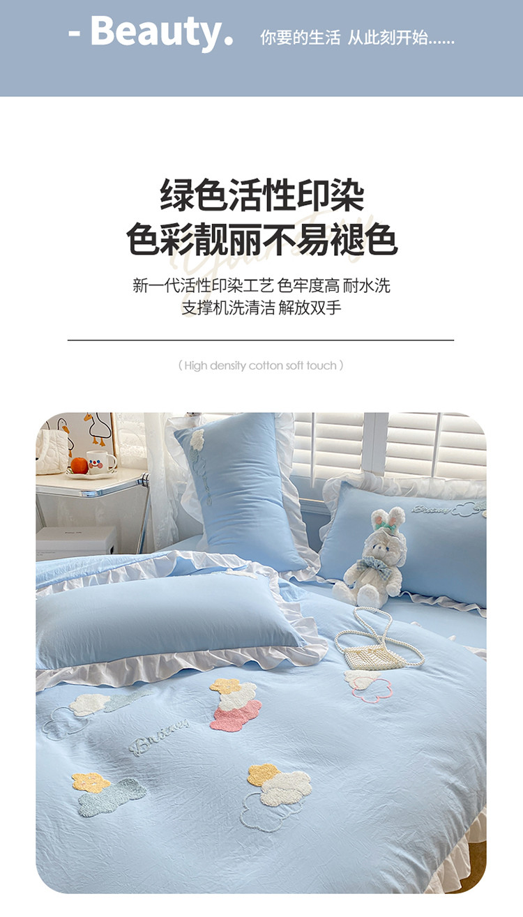 当前位置: 91家纺网 > 商品网购 > 床品套件 > 四件套 > 水洗棉四件套 > 易禾 2022新款小清新水洗亲肤棉四件套七彩云朵 七彩云朵蓝