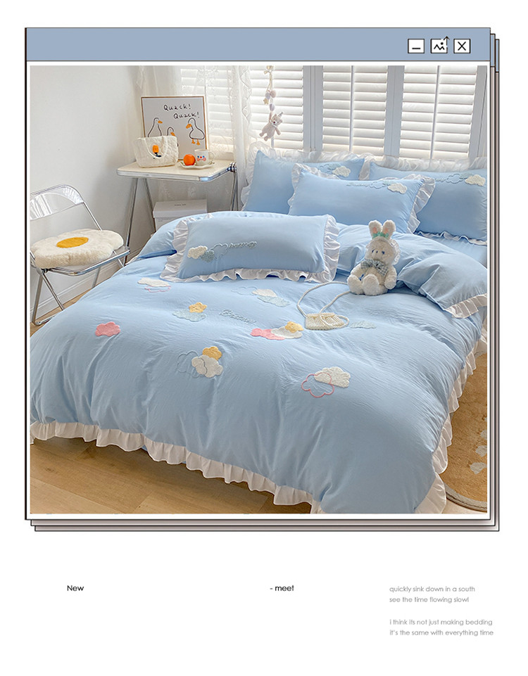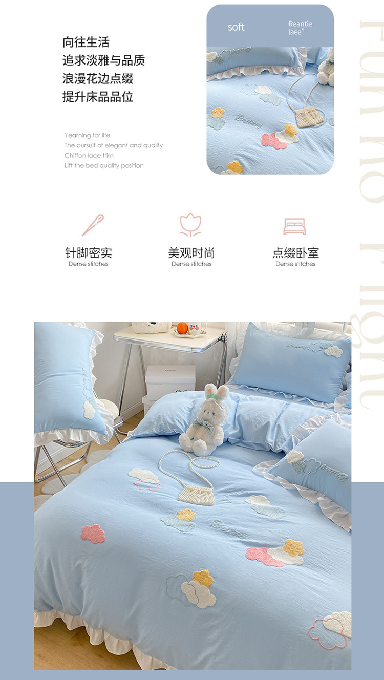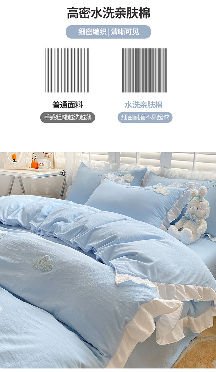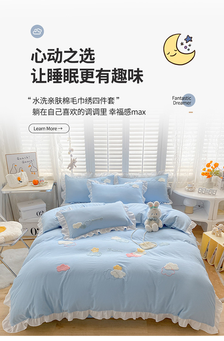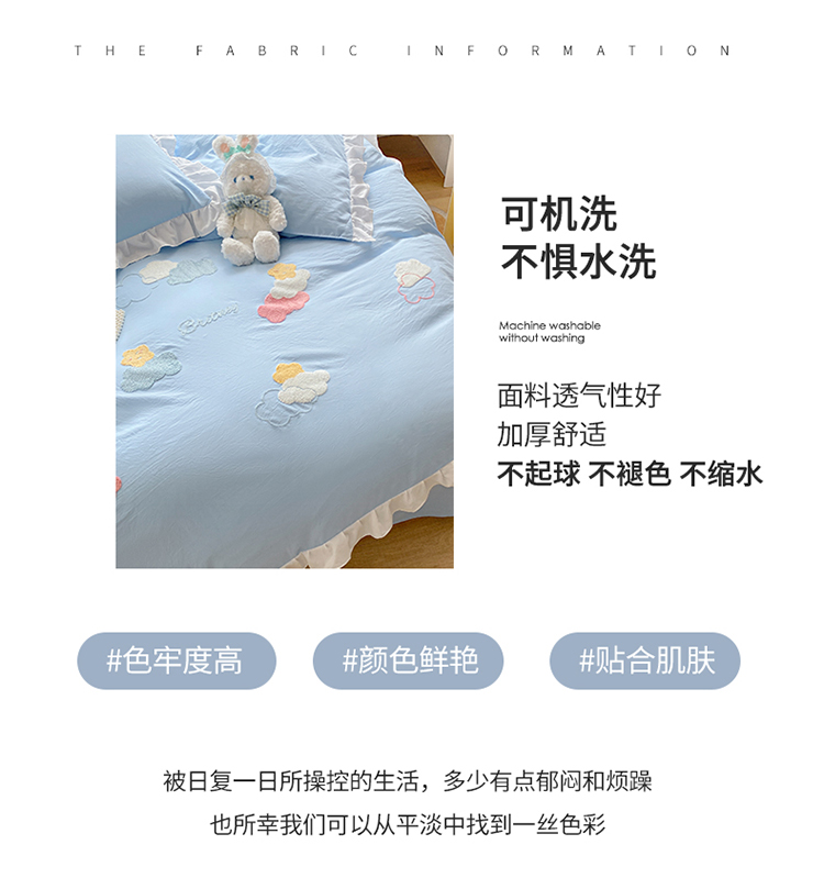 当前位置: 91家纺网 > 商品网购 > 床品套件 > 四件套 > 水洗棉四件套 > 易禾 2022新款小清新水洗亲肤棉四件套七彩云朵 七彩云朵蓝