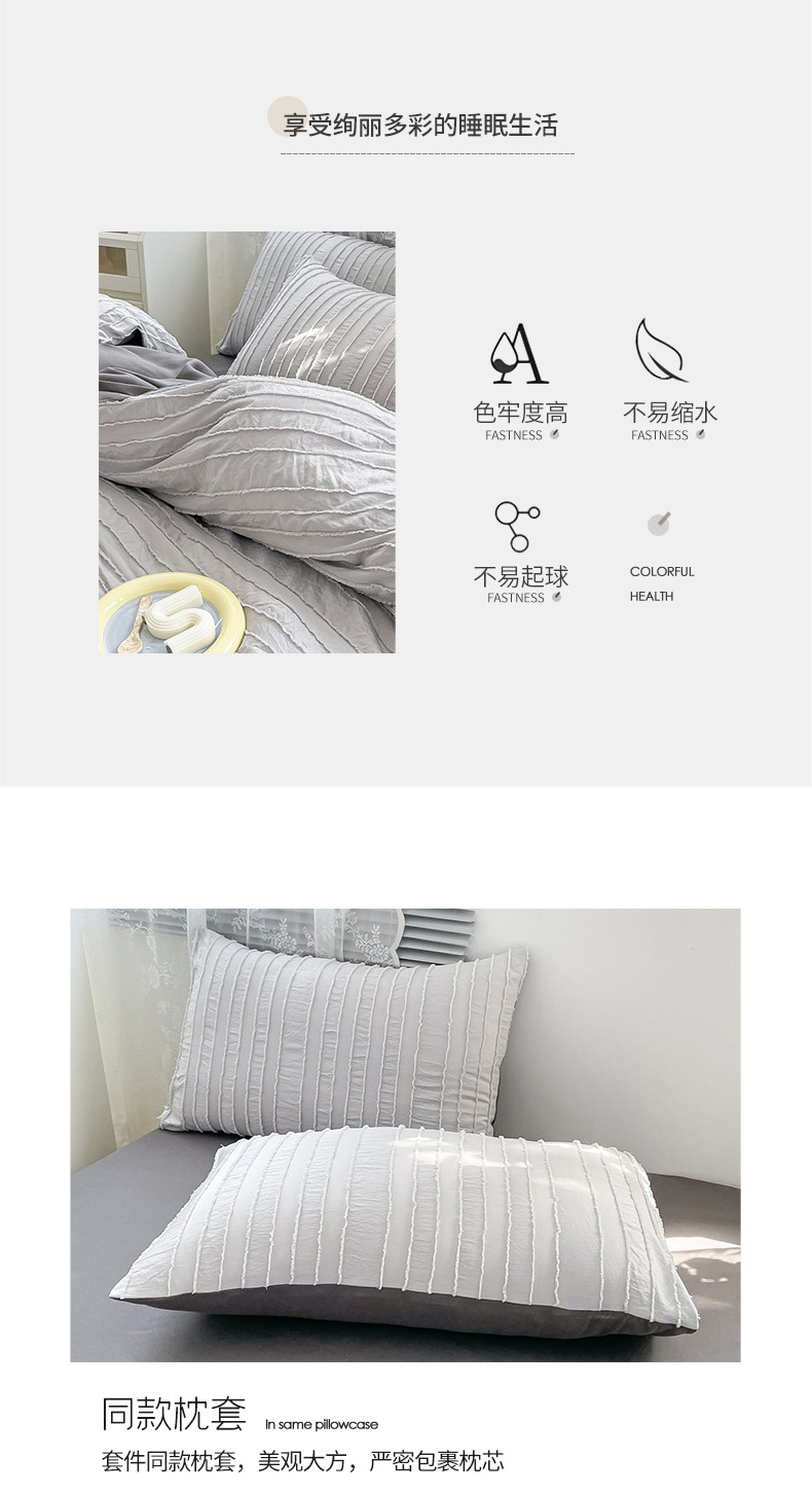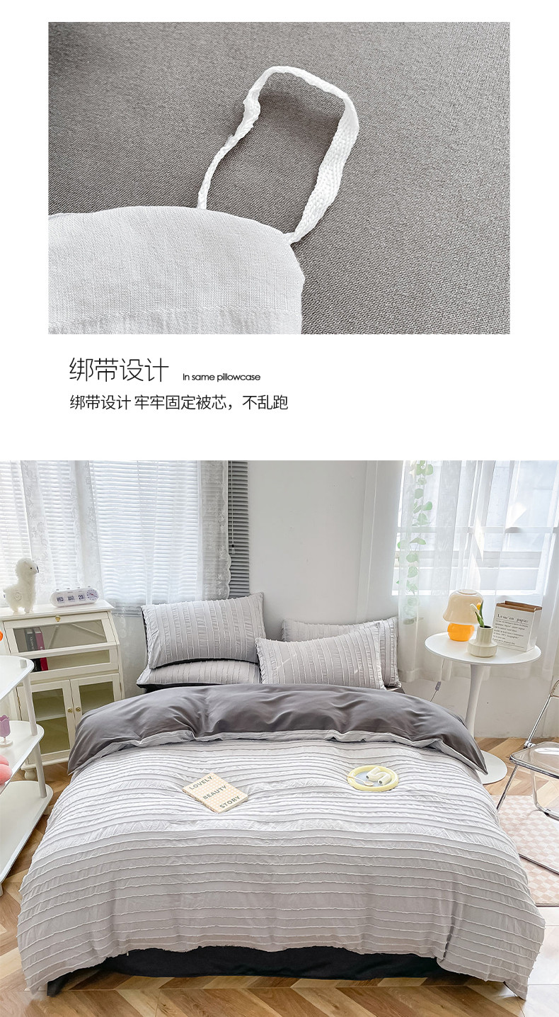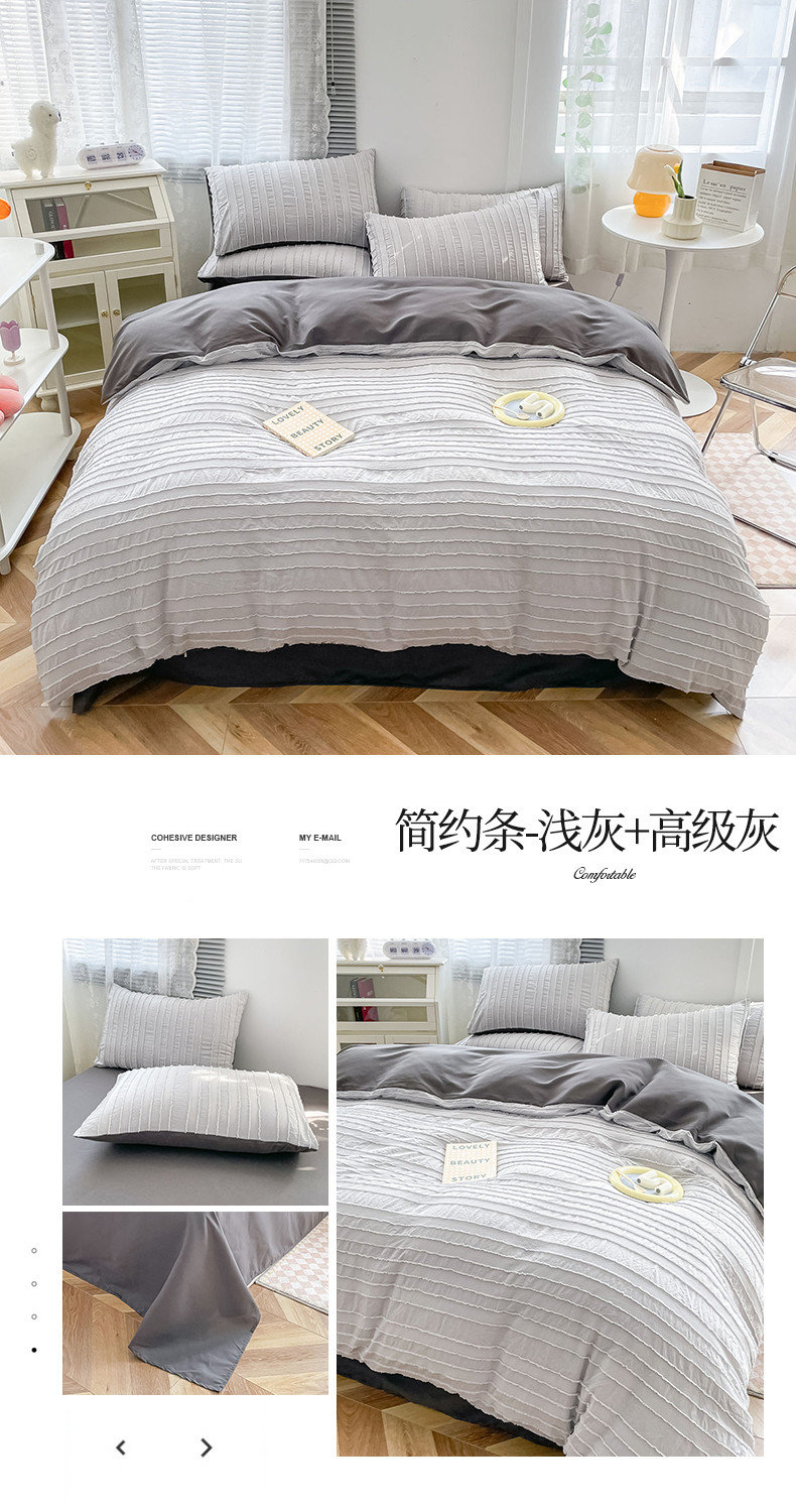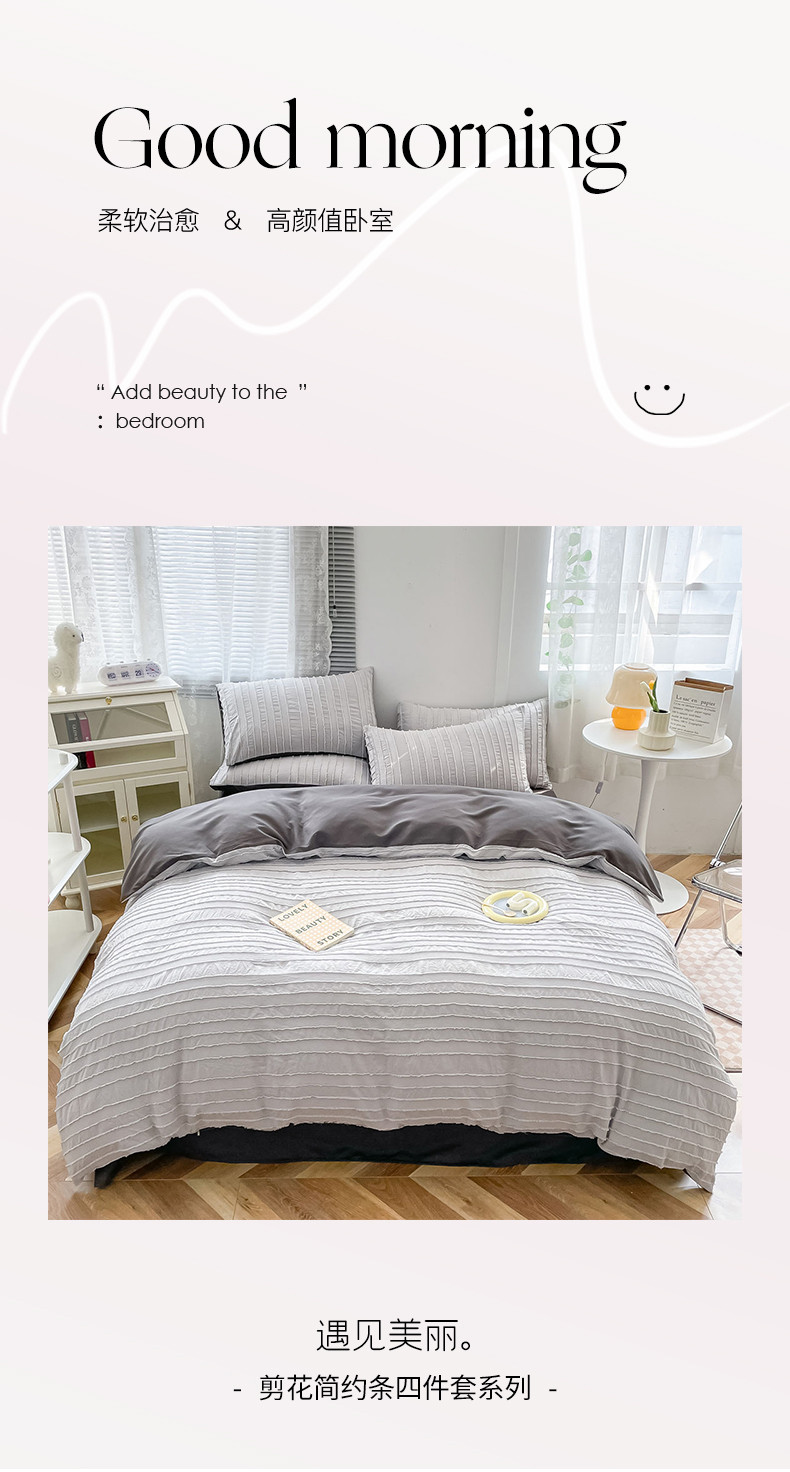 商品名称:古吉梦 2022新款剪花简约条系列四件套浅灰+高级灰