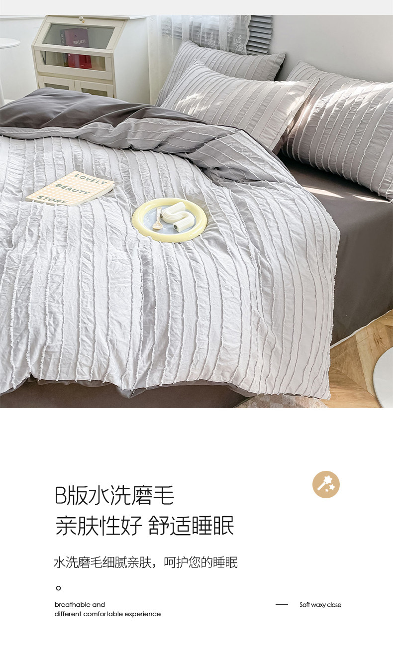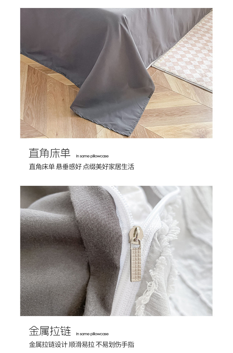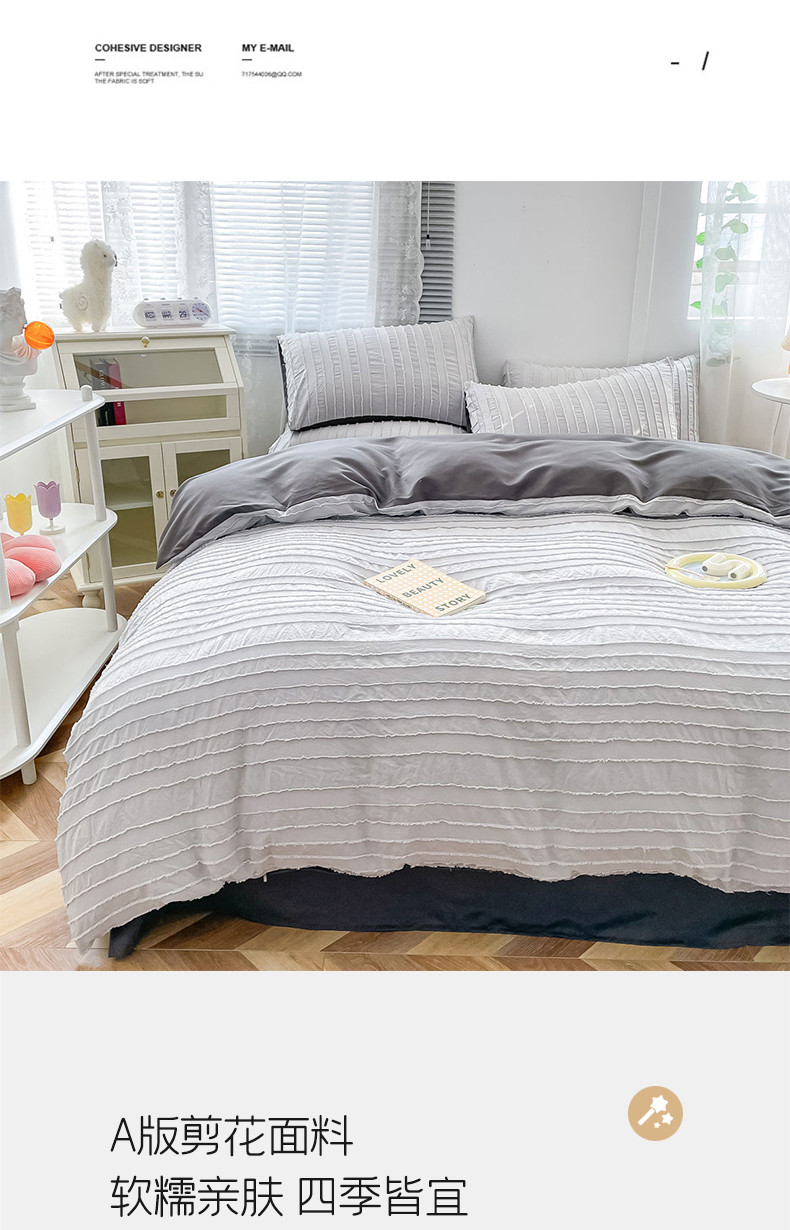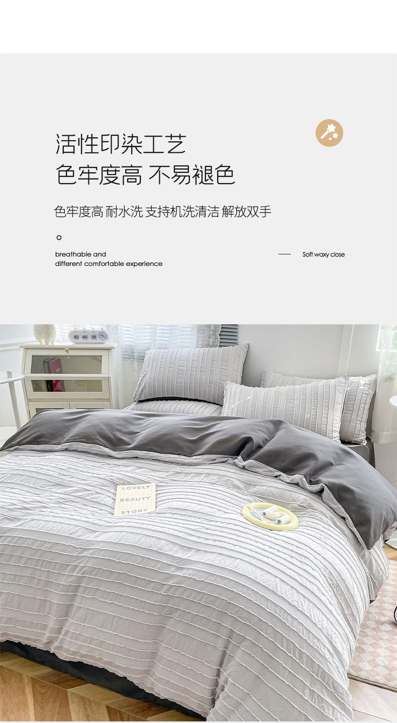 商品名称:古吉梦 2022新款剪花简约条系列四件套浅灰+高级灰