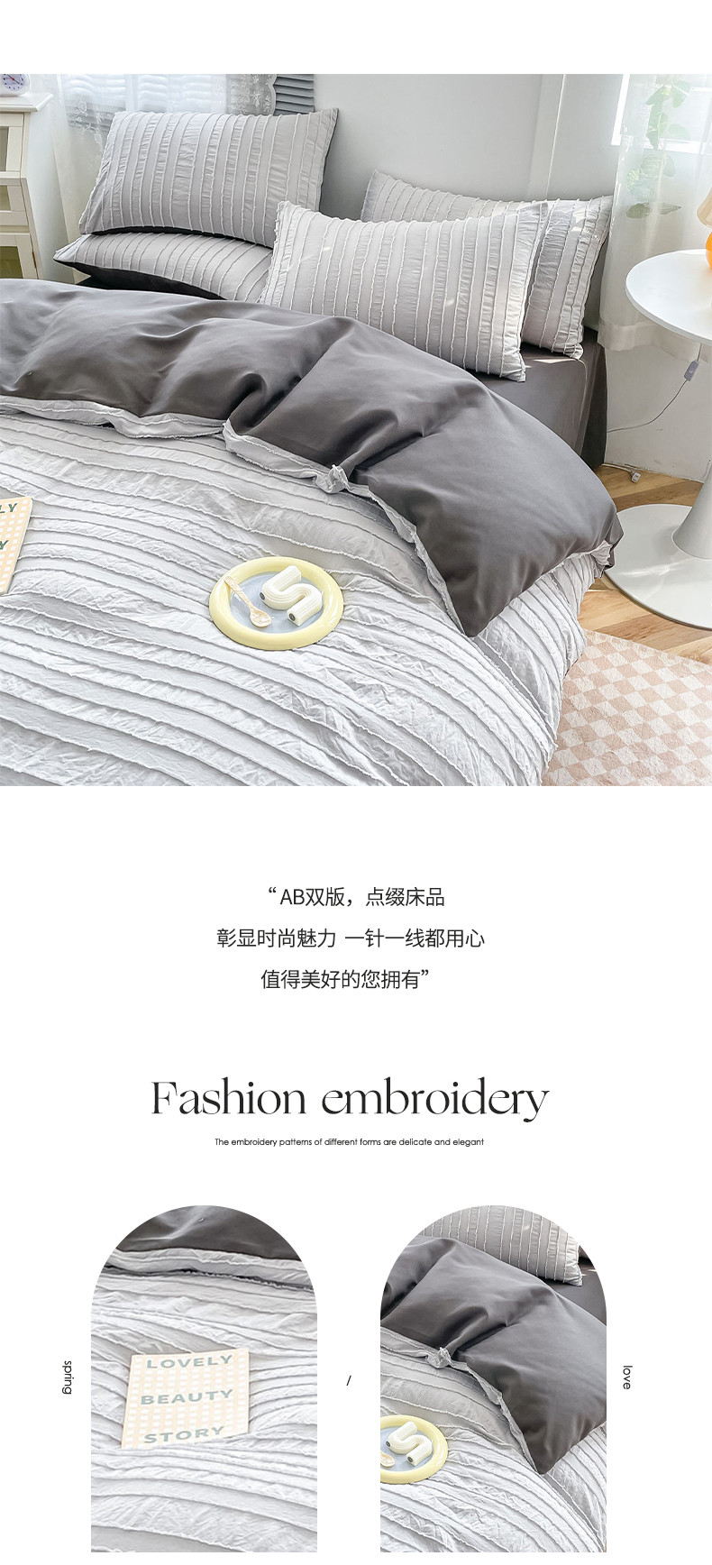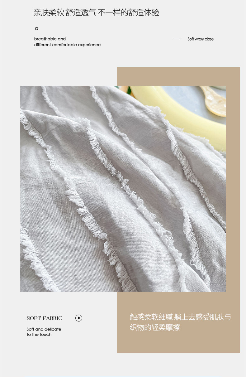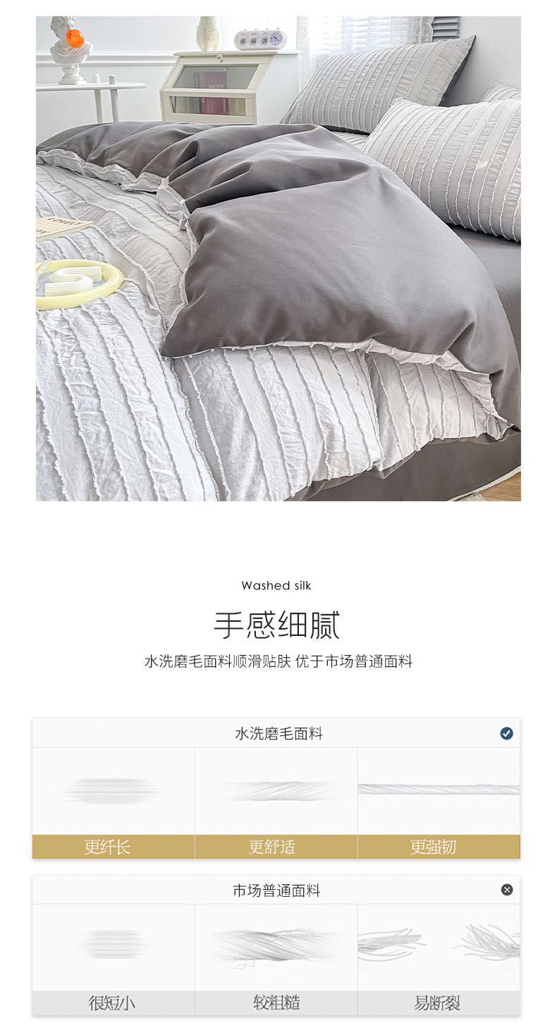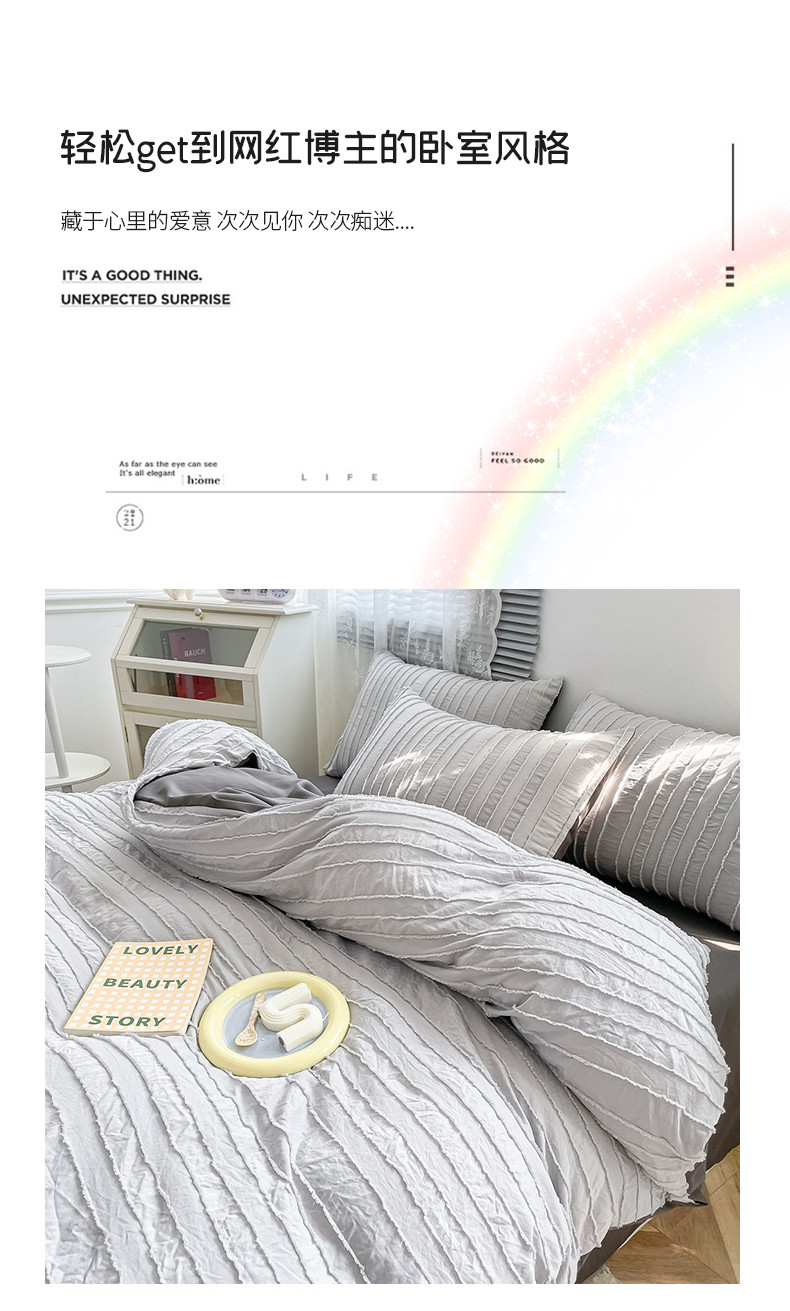 商品名称:古吉梦 2022新款剪花简约条系列四件套浅灰+高级灰