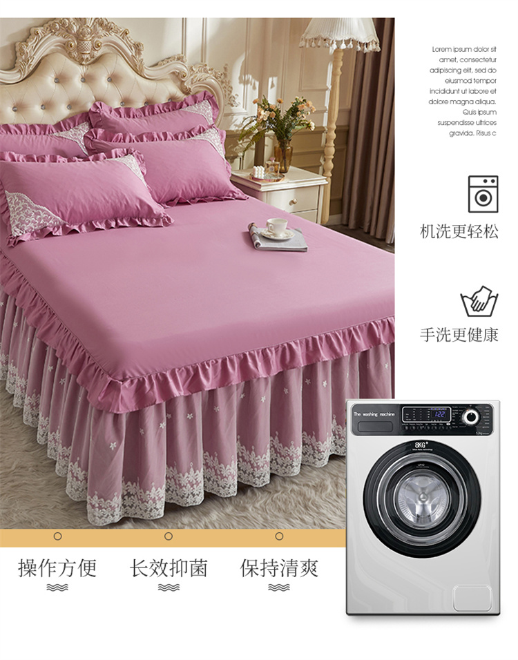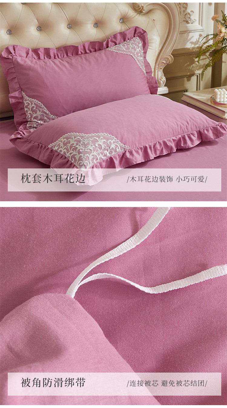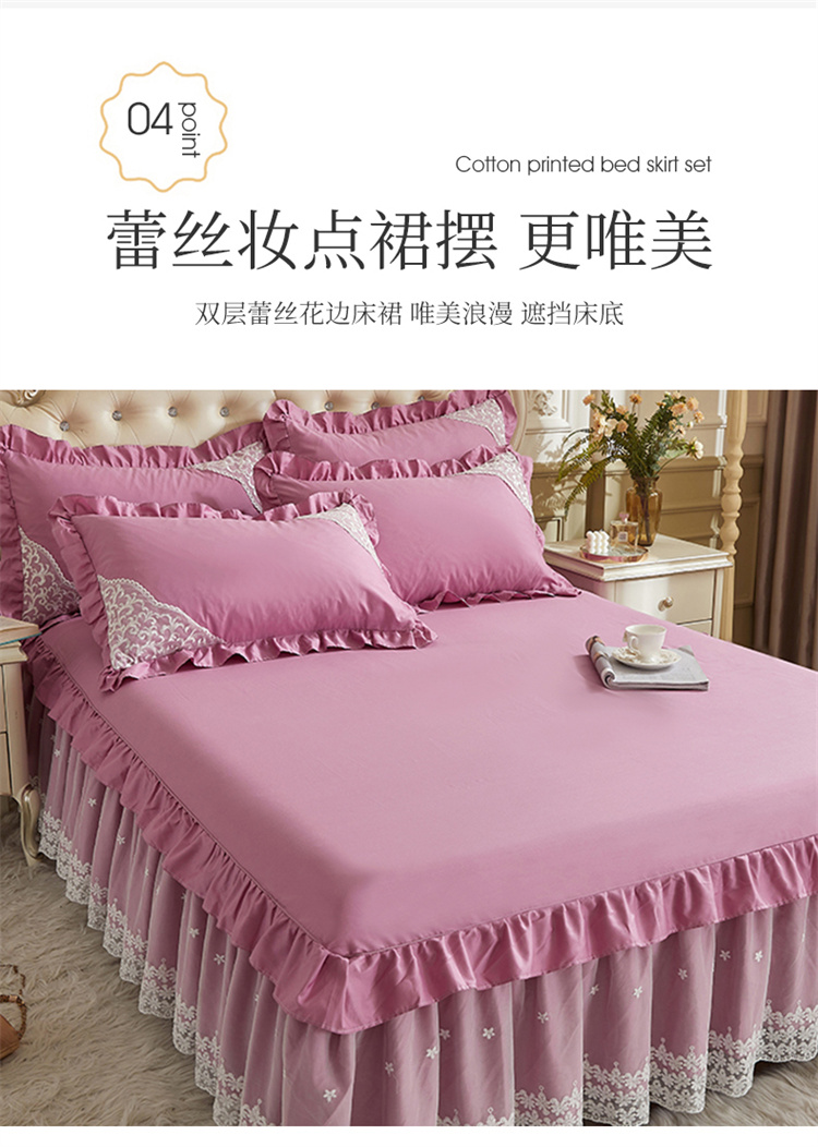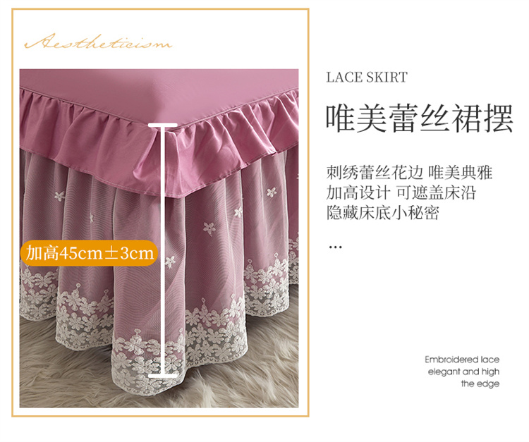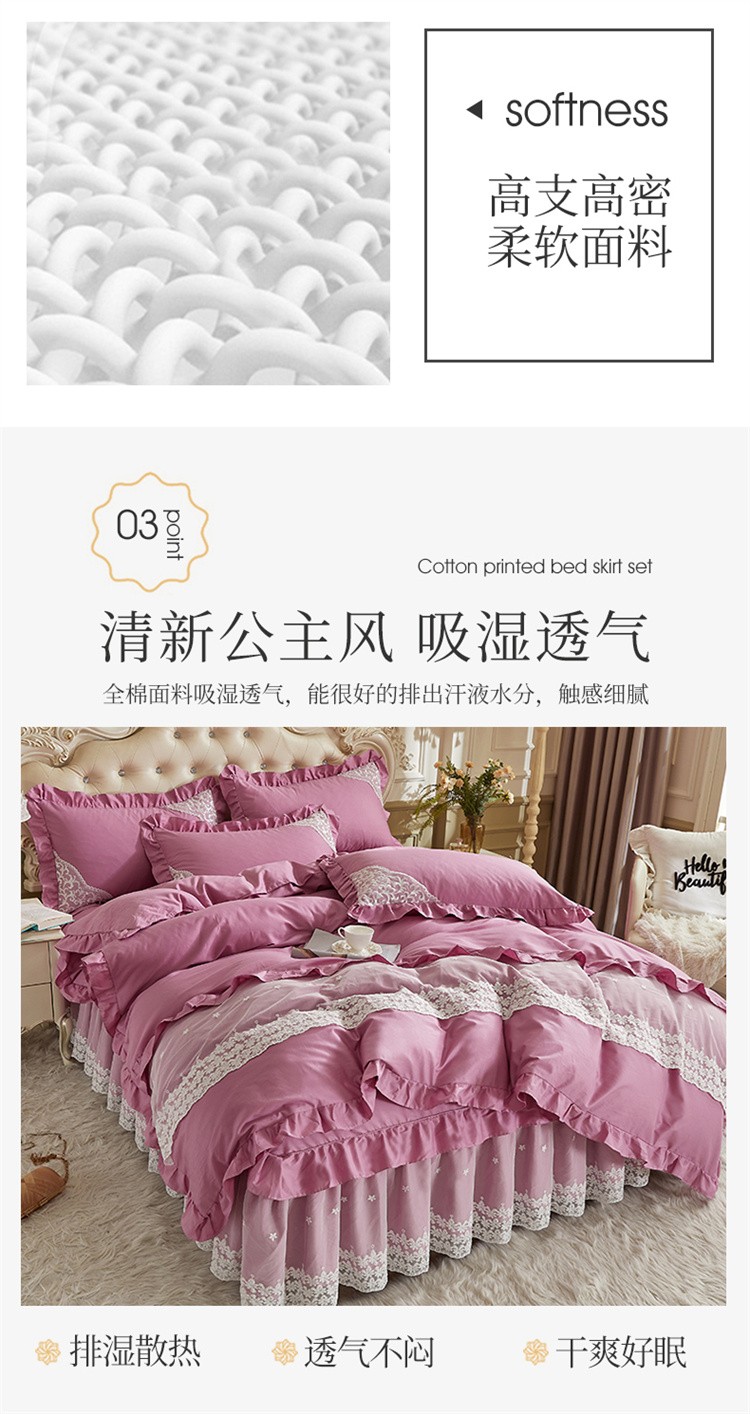 当前位置: 91家纺网 > 商品网购 > 床品套件 > 四件套 > 全棉普通四件套 > 十个点 2022新款纯色全棉公主风蕾丝花边床裙四件套 豆沙色