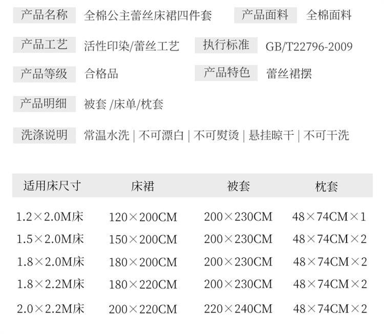 200*220cm全加大床裙四件套 | ¥270.00 |
