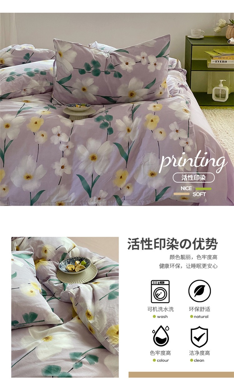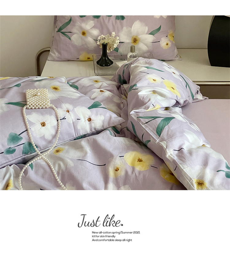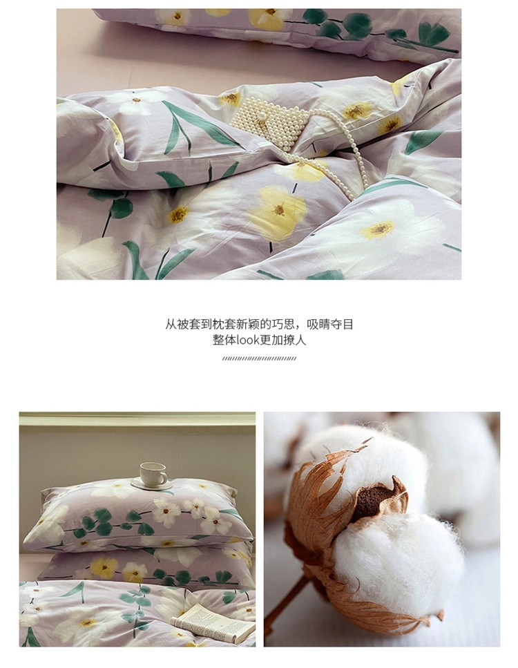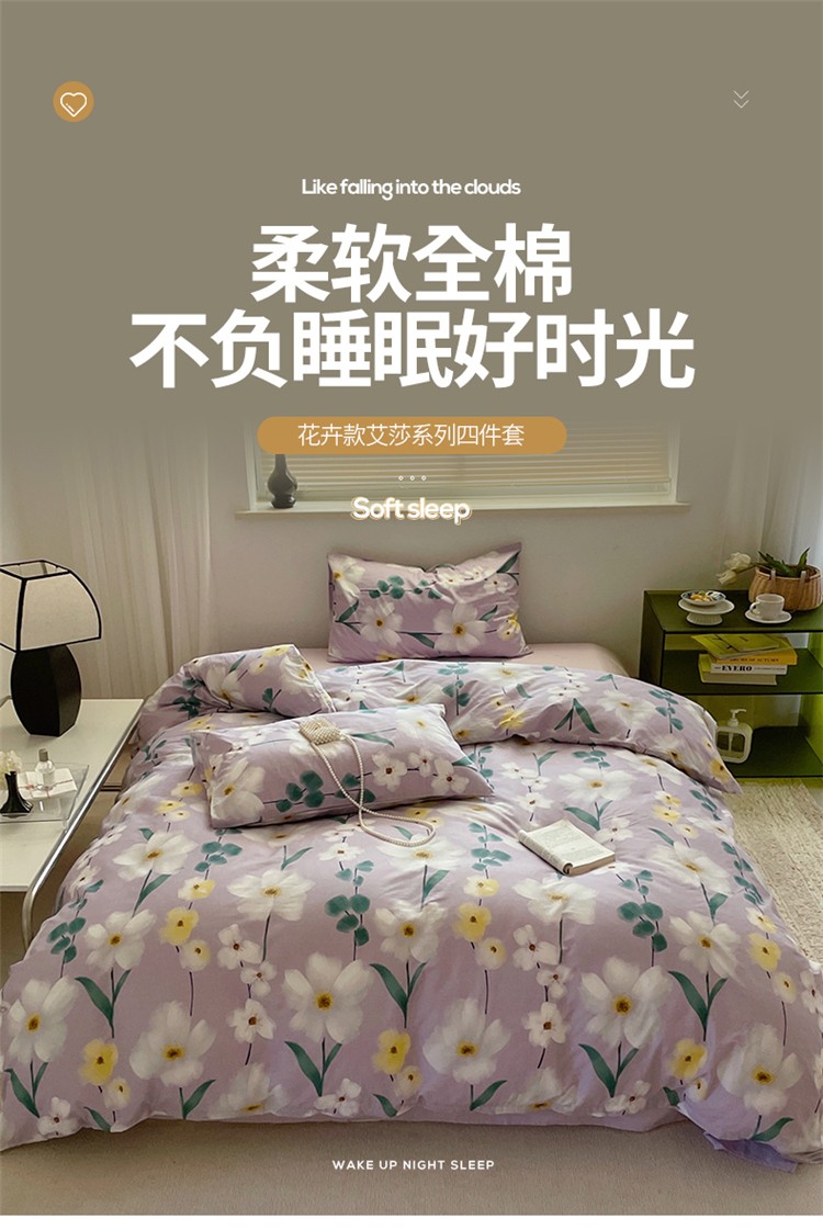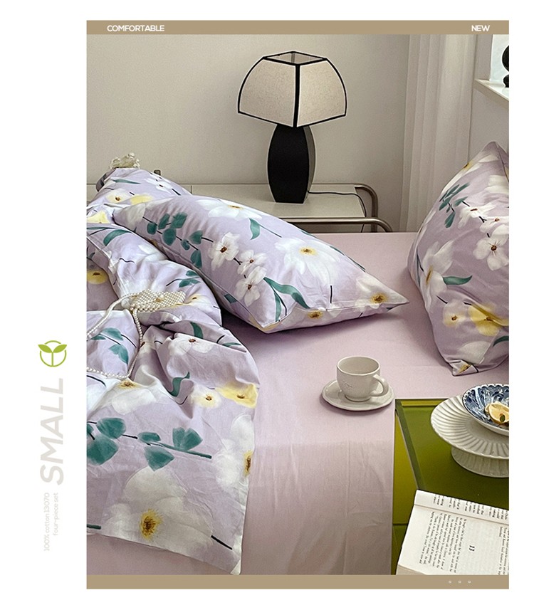 窝米 2022秋季新品全棉13370花卉系列四件套 伊洛紫