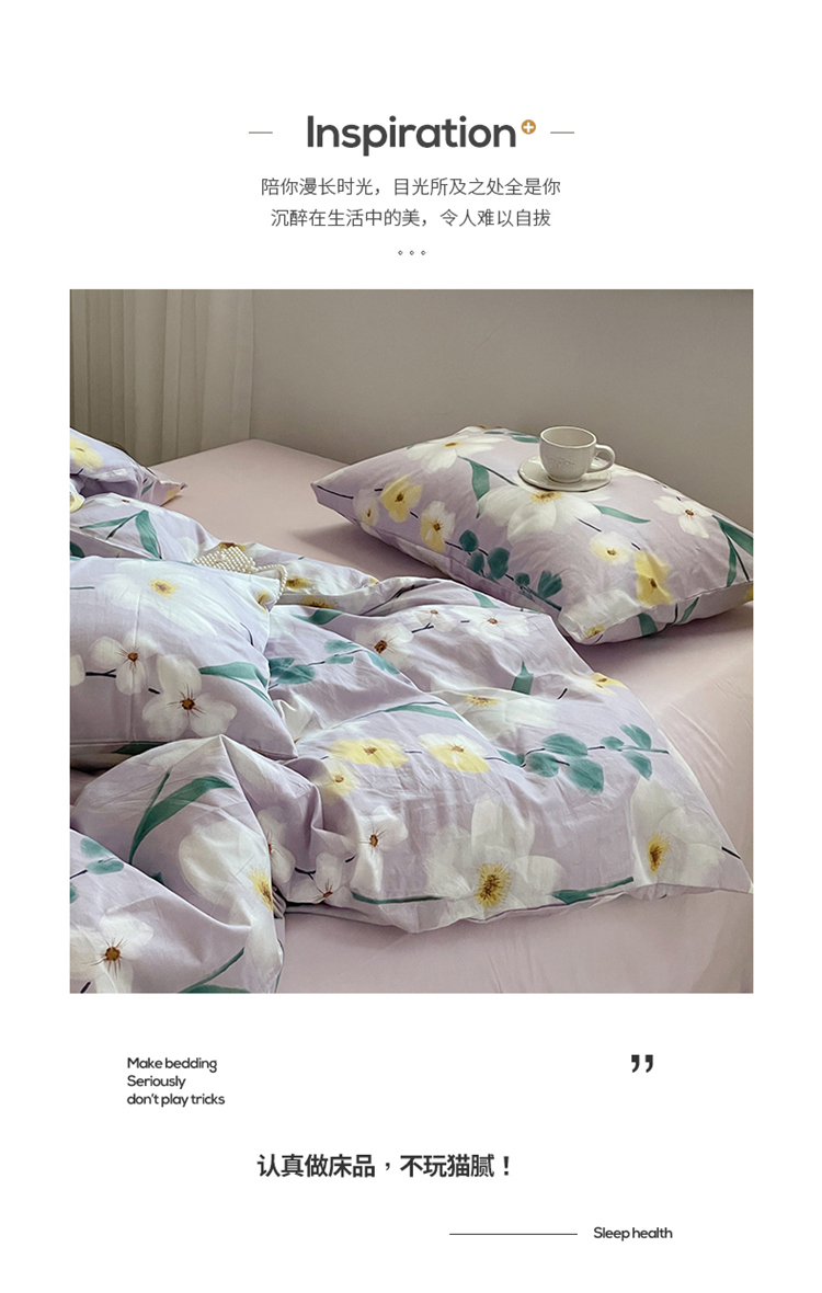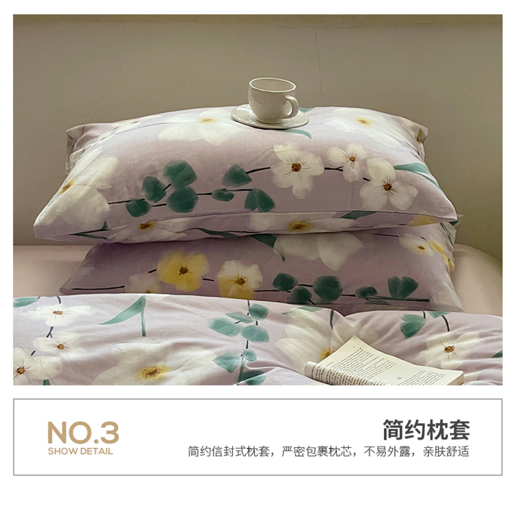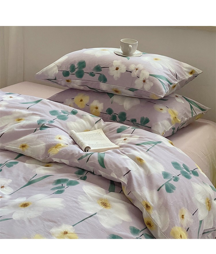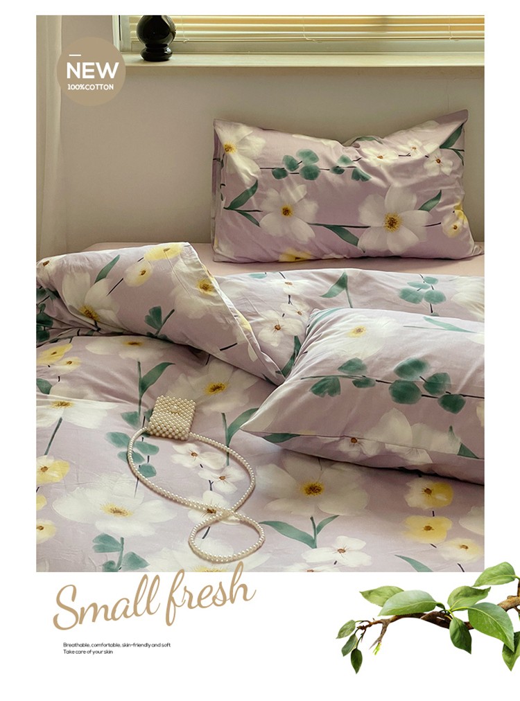 窝米 2022秋季新品全棉13370花卉系列四件套 伊洛紫