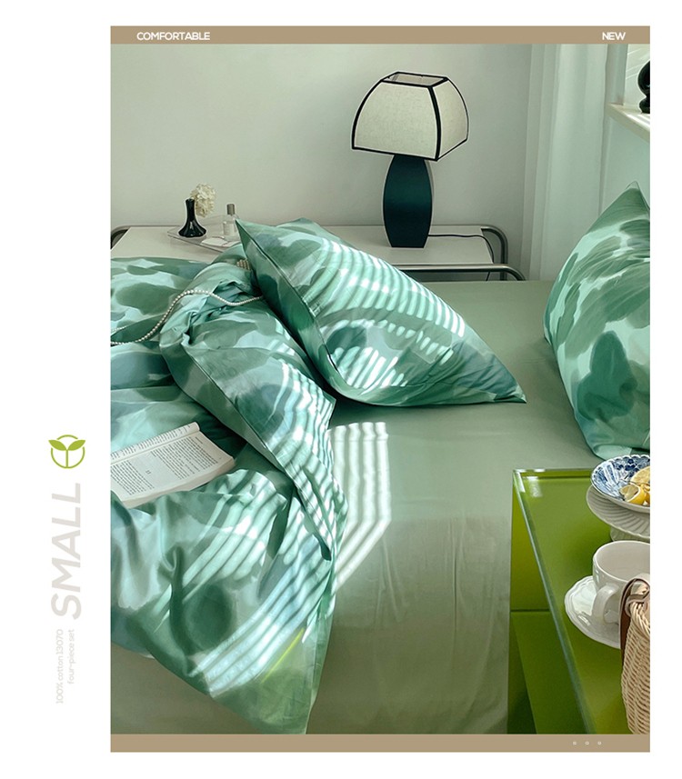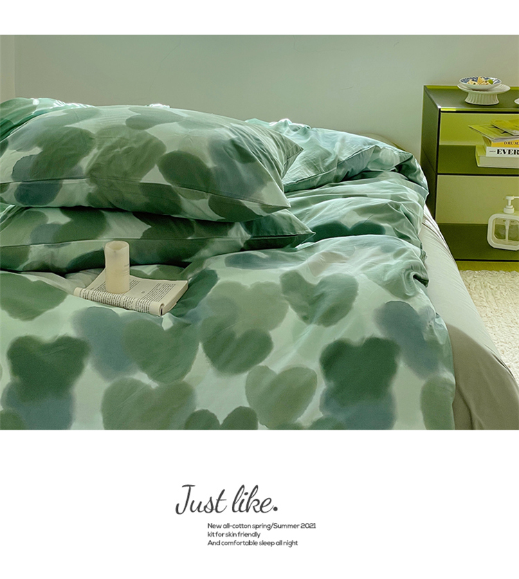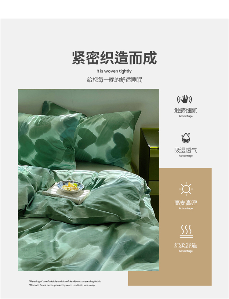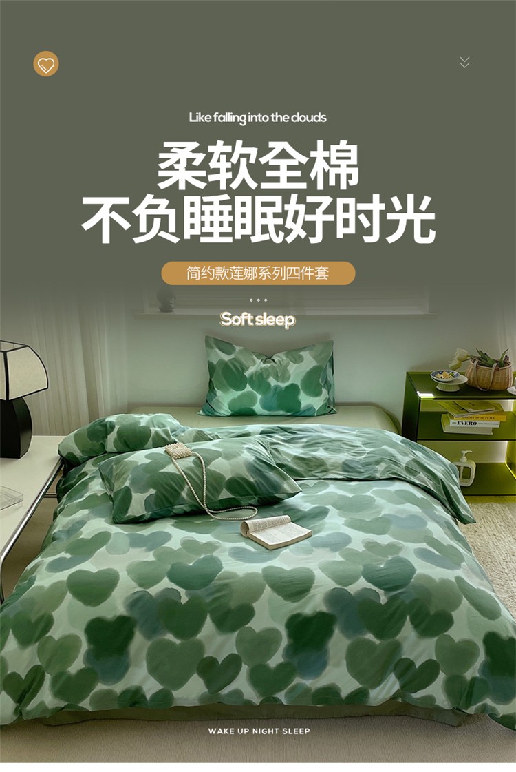 窝米 2022秋季新品全棉13370简约风系列四件套 莲娜绿