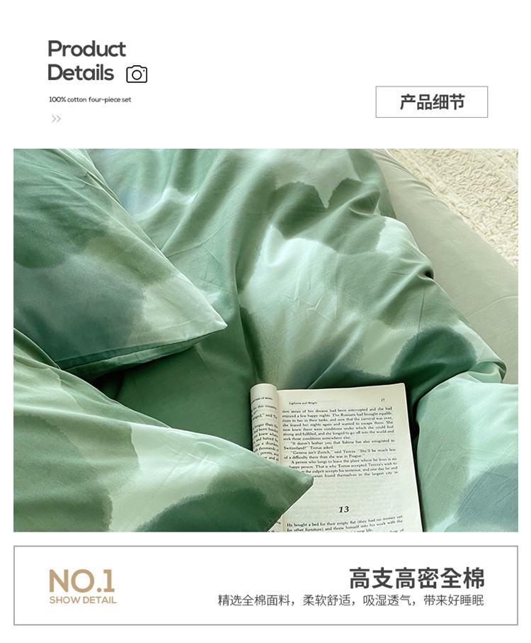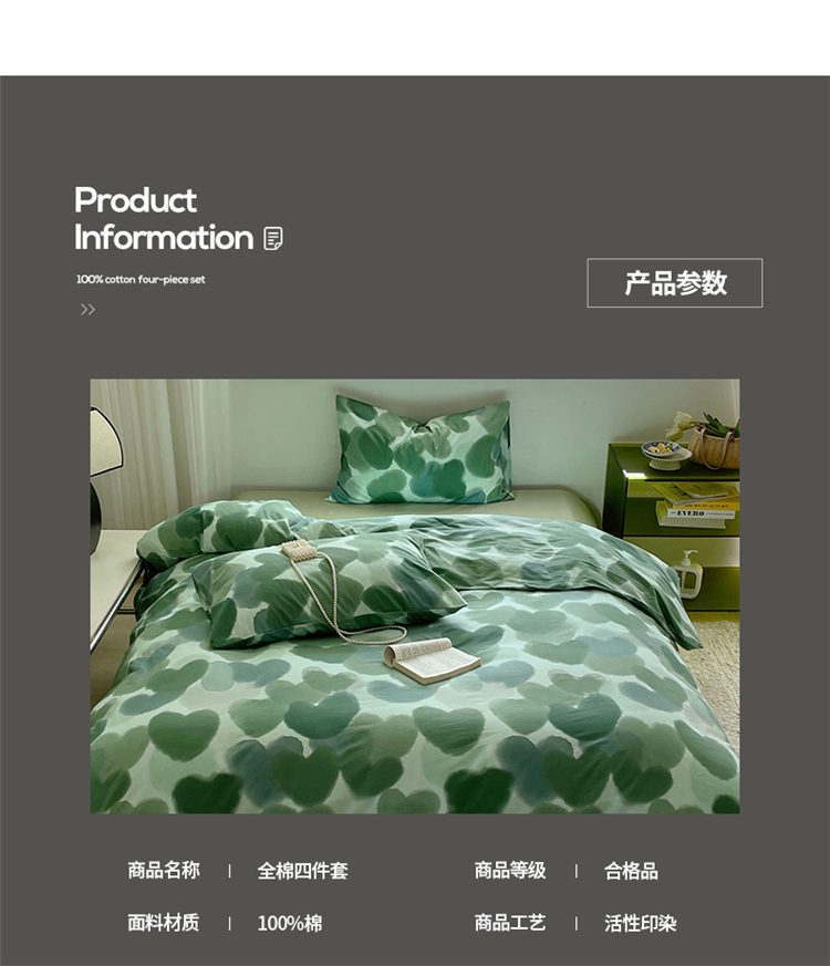 商品名称:窝米 2022秋季新品全棉13370简约风系列四件套 莲娜绿