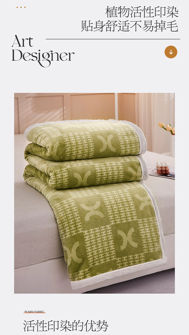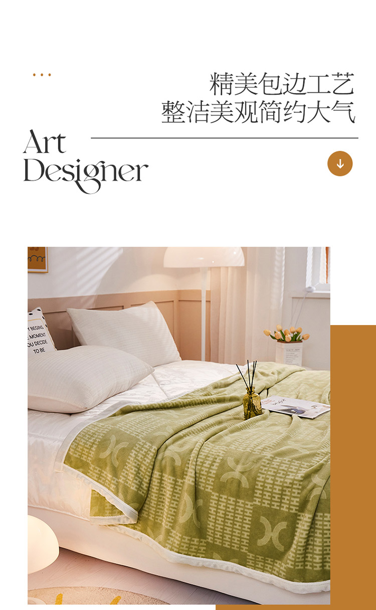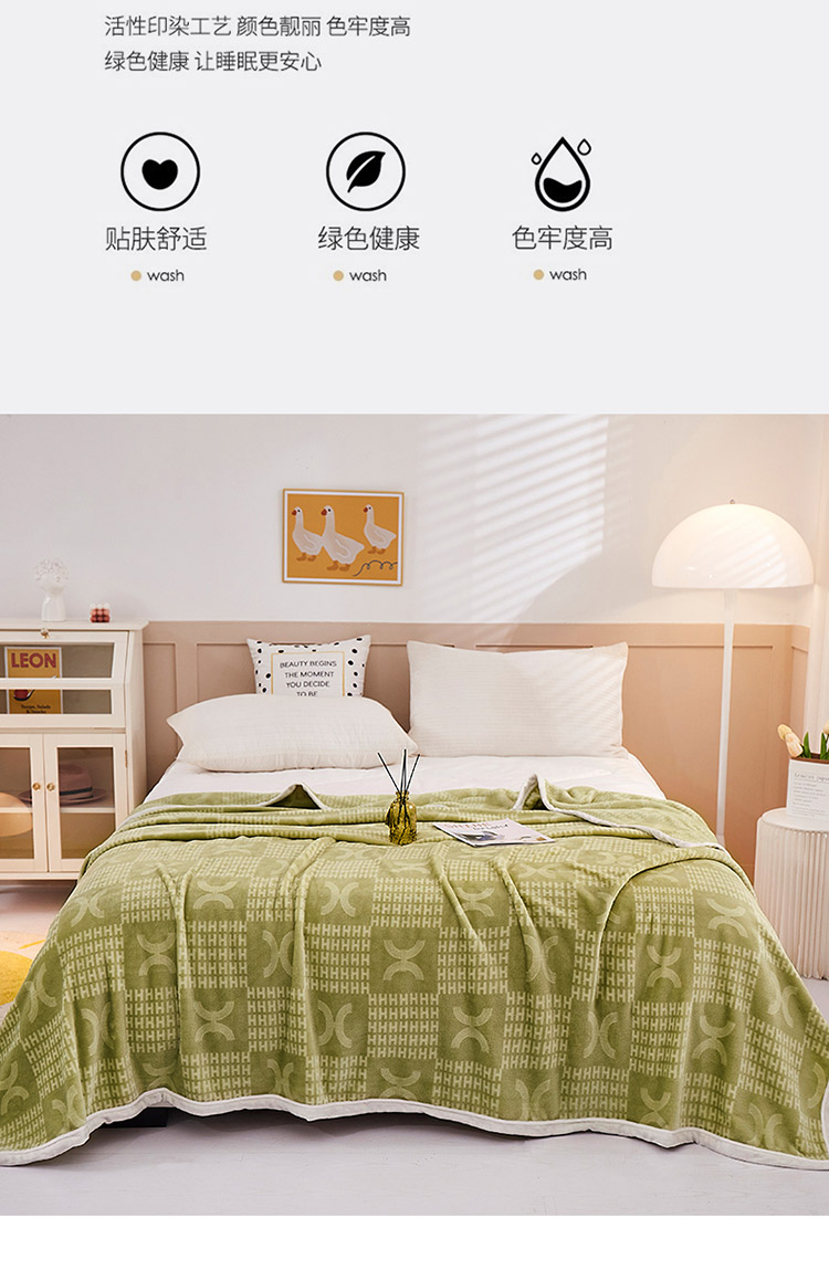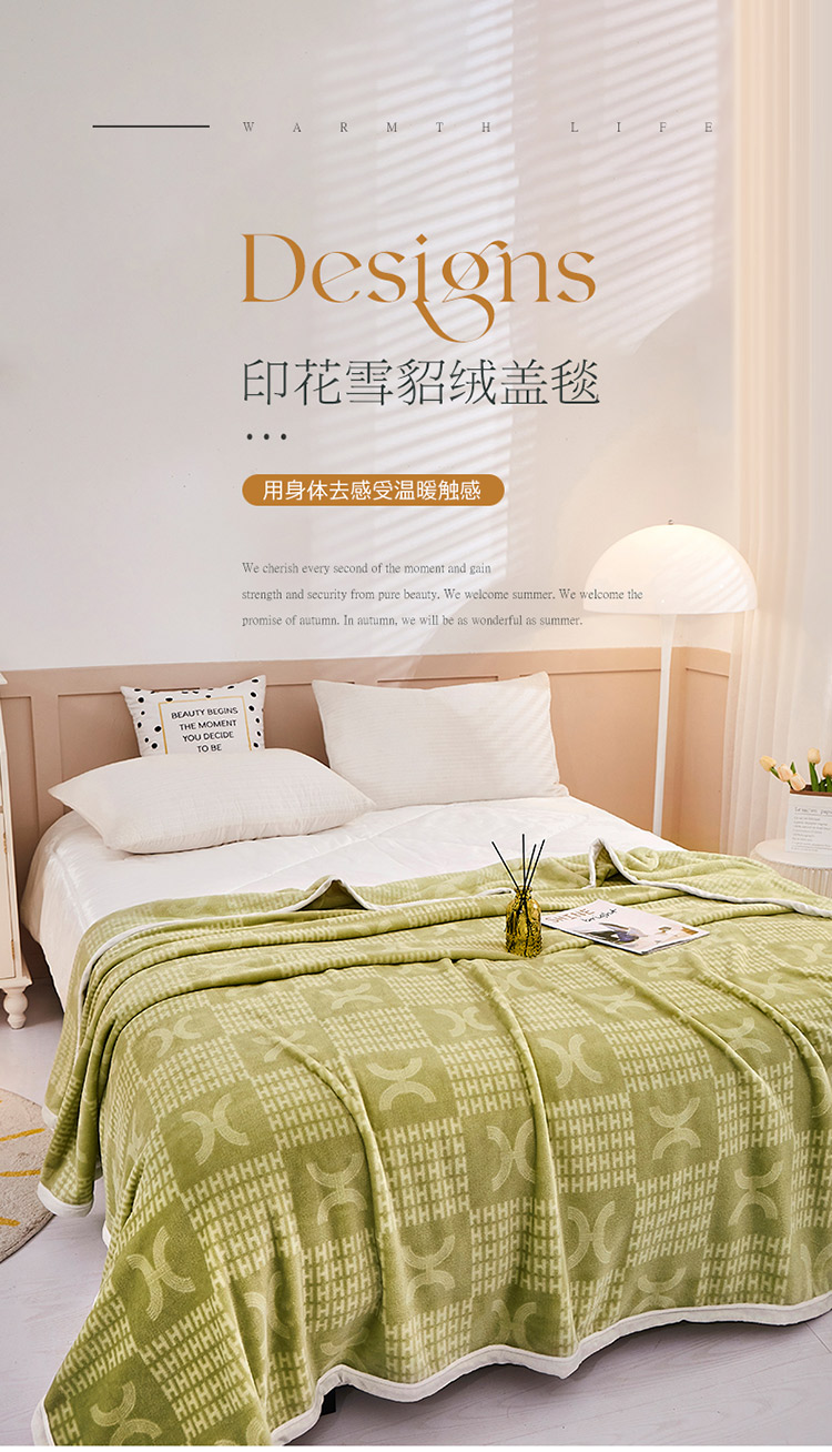 坦客毯业 2025新款印花雪貂绒毛毯沙发盖毯午睡毯子香奈-绿