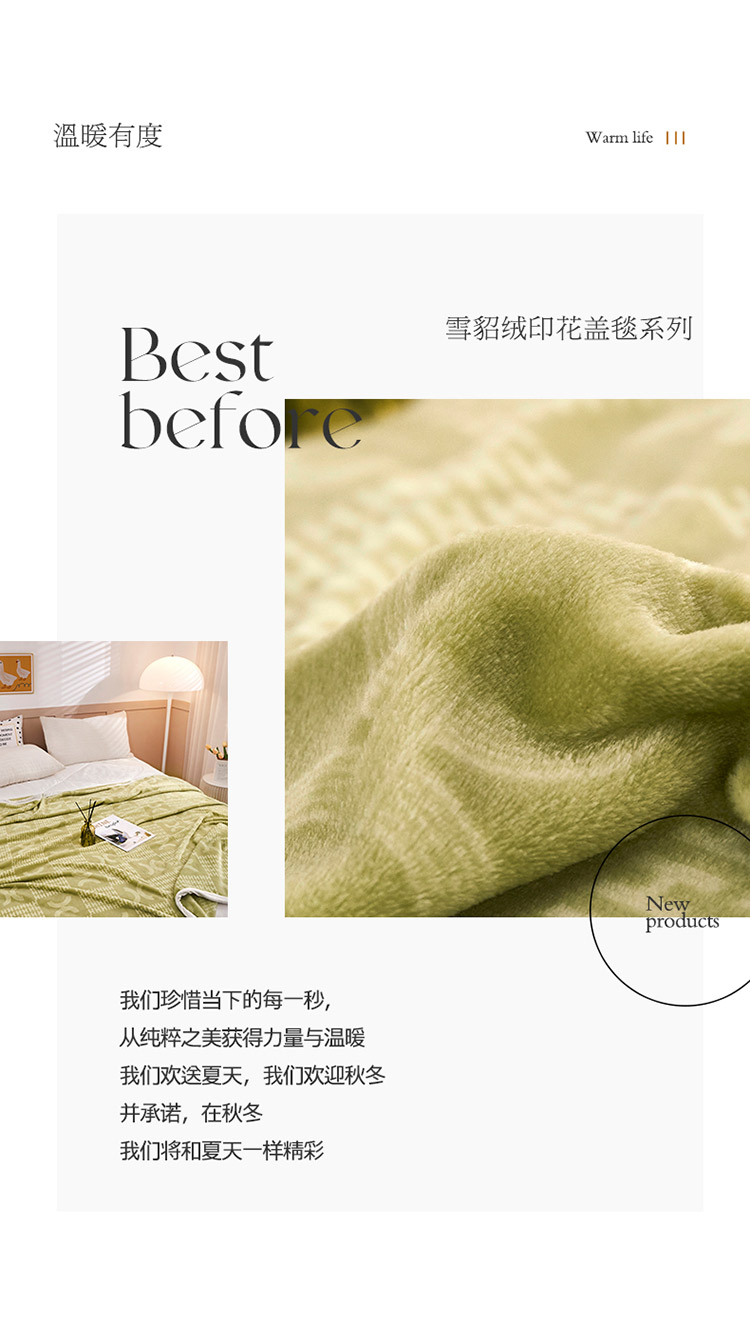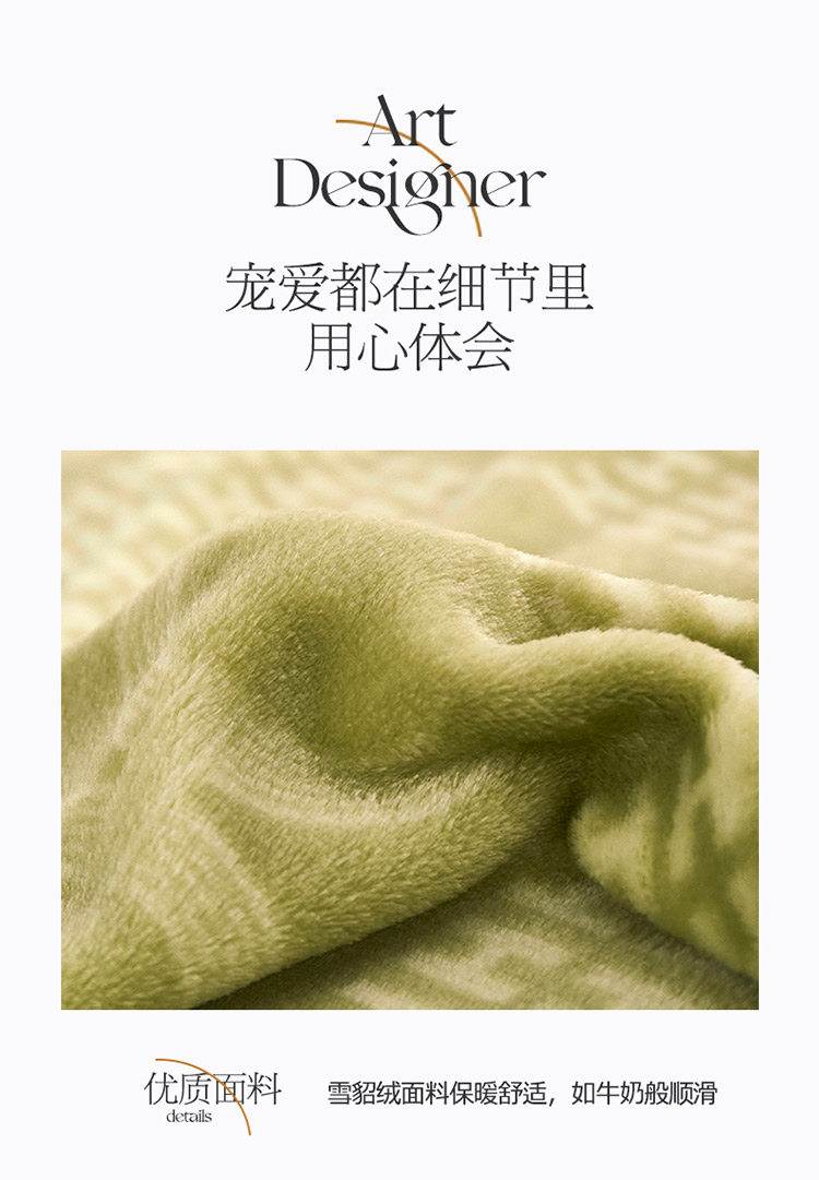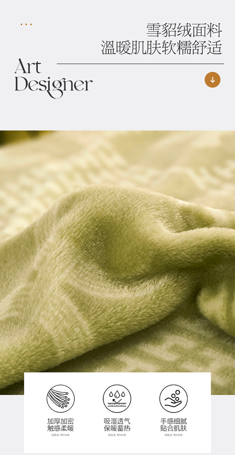 坦客毯业 2025新款印花雪貂绒毛毯沙发盖毯午睡毯子香奈-绿