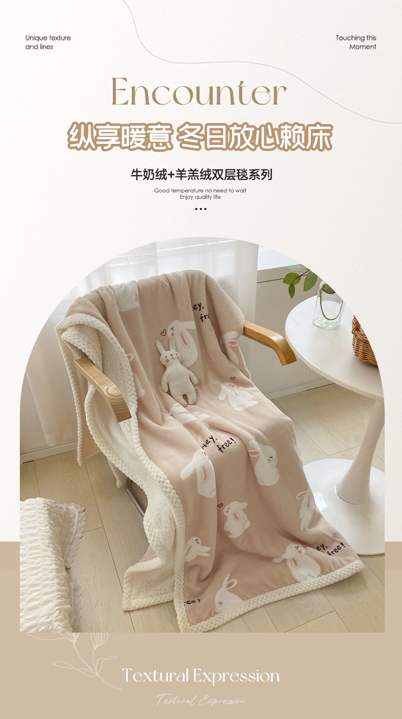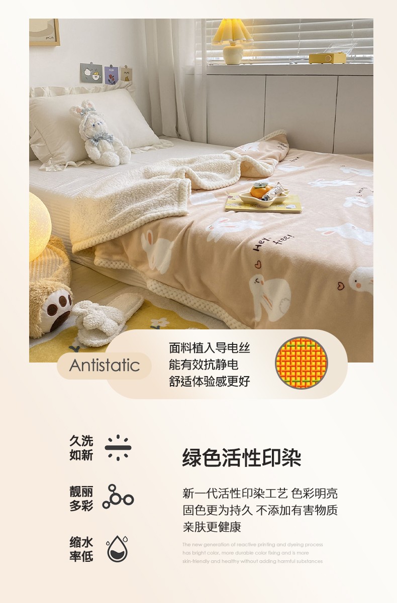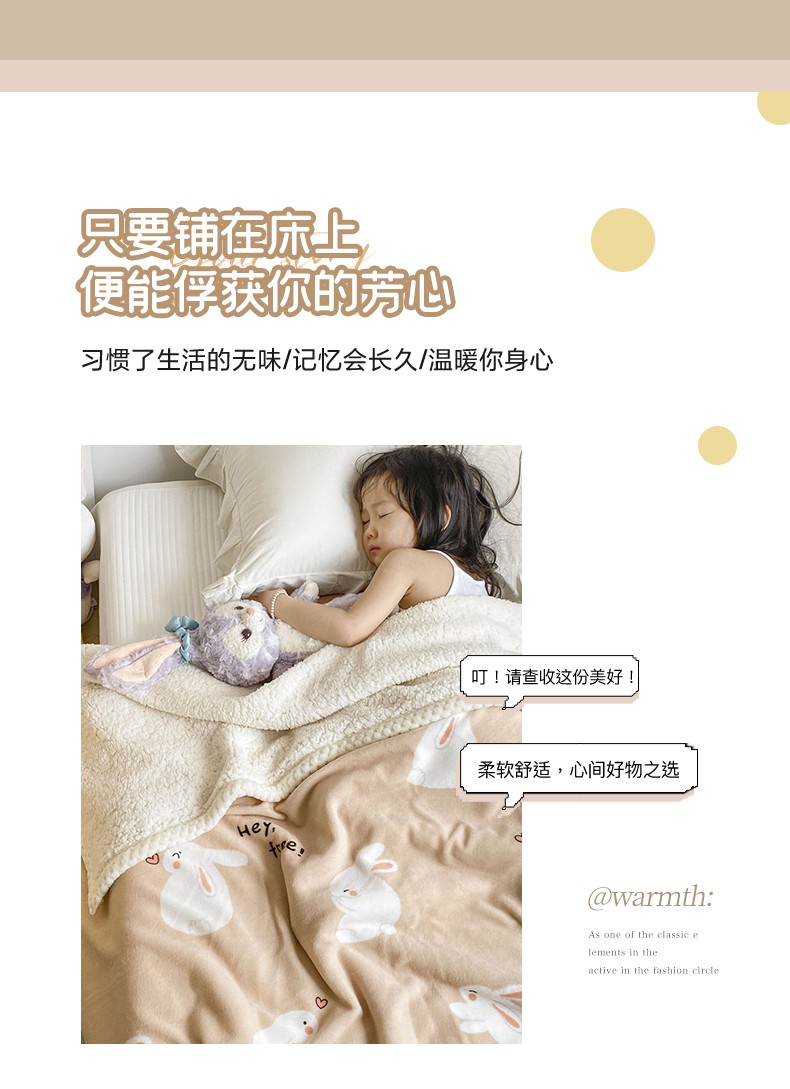 当前位置: 91家纺网 > 商品网购 > 跨境商品 > 床上用品(Bedding) > 毛毯&盖毯(Blankets & Throws) > 古吉梦2022新款+牛奶绒+羊羔绒双层毯 咪兔