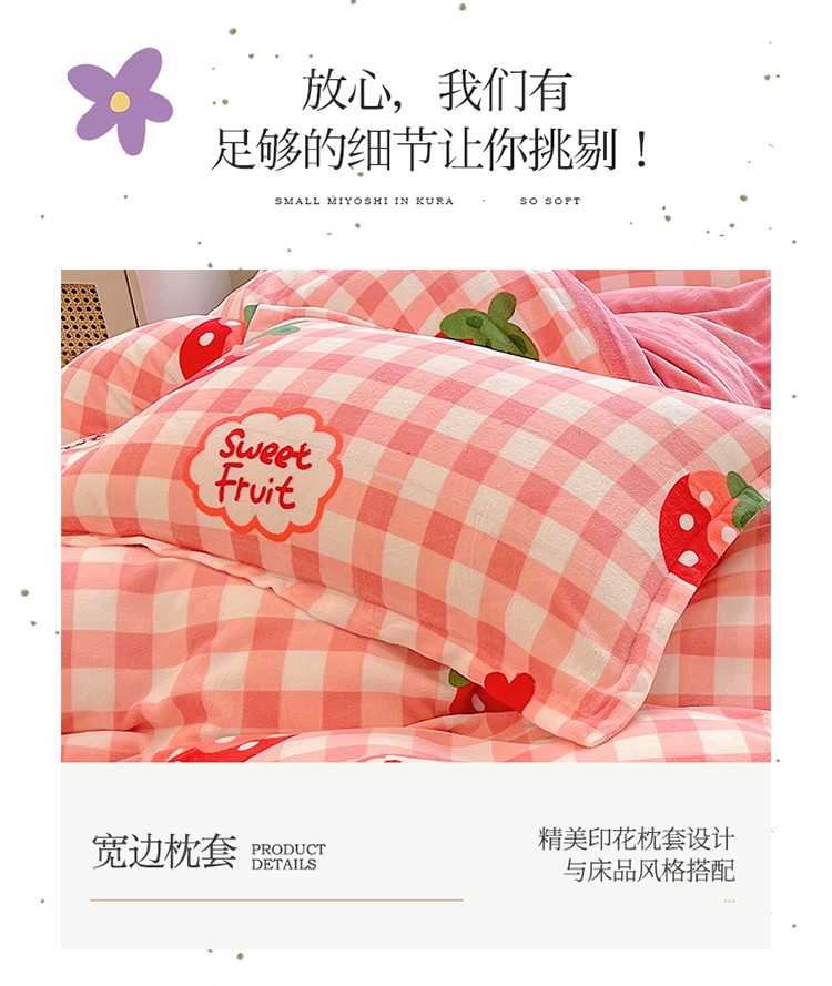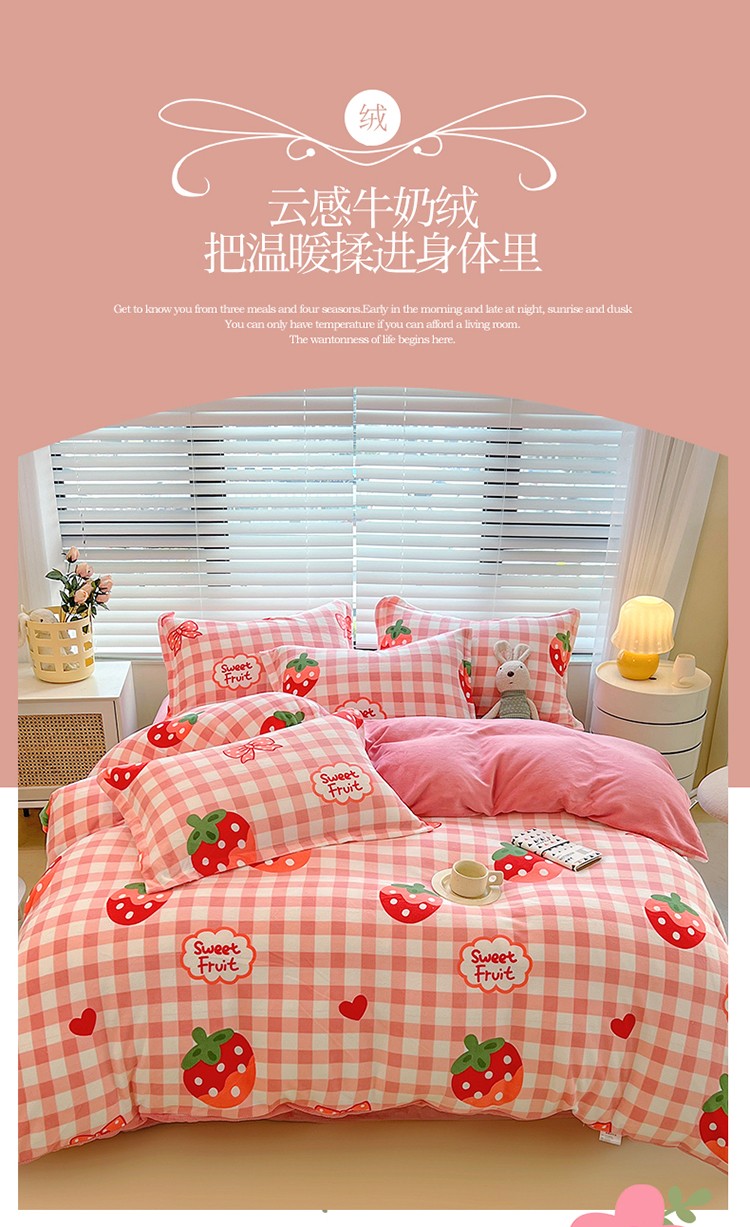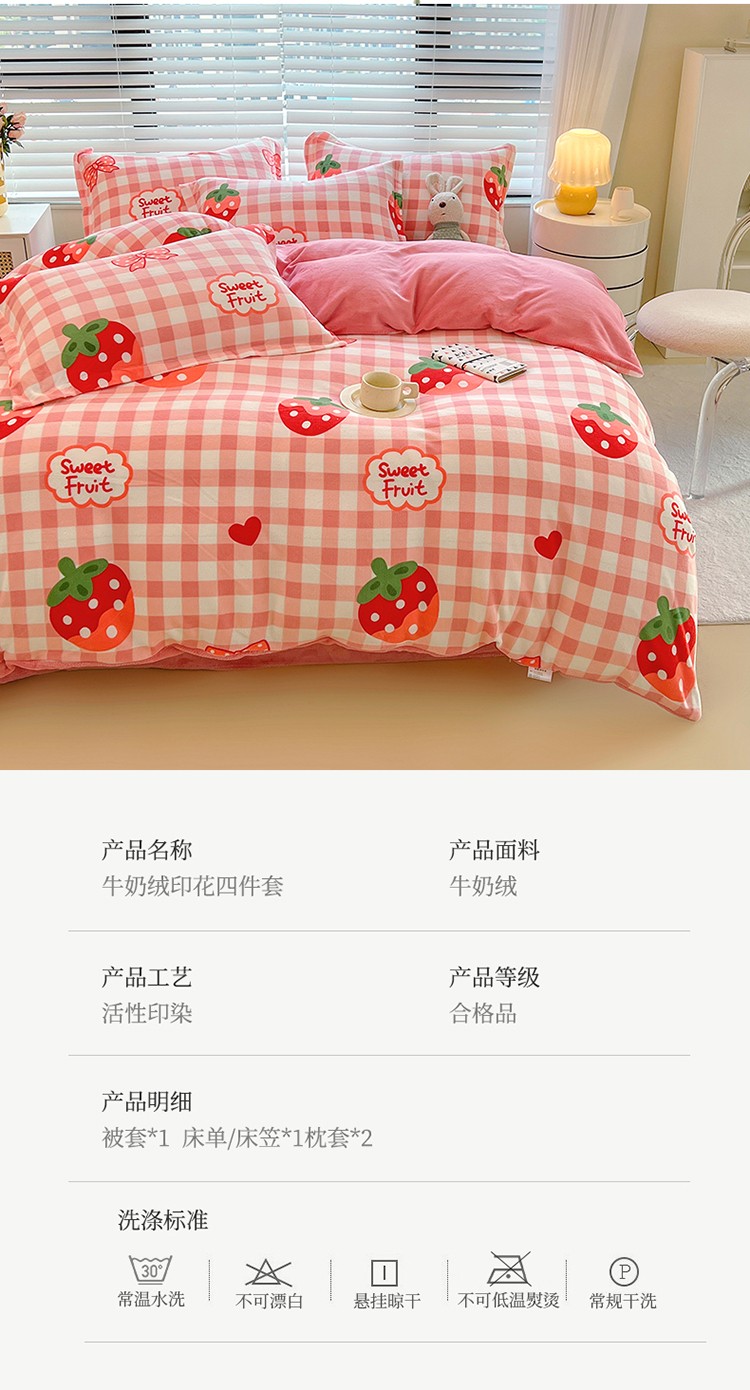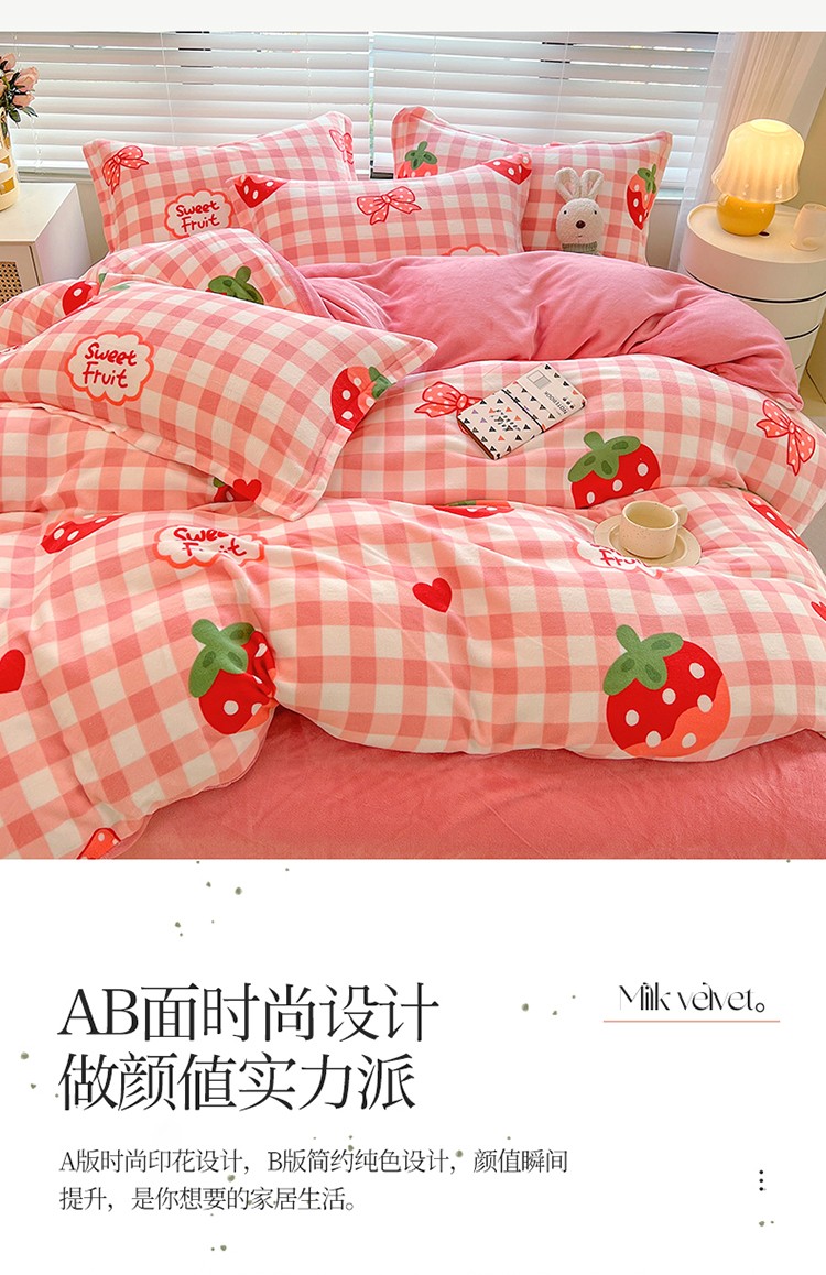 当前位置: 91家纺网 > 商品网购 > 床品套件 > 四件套 > 牛奶绒四件套 > 兄弟坊 2022新款牛奶绒印花四件套-草莓格
