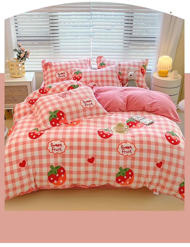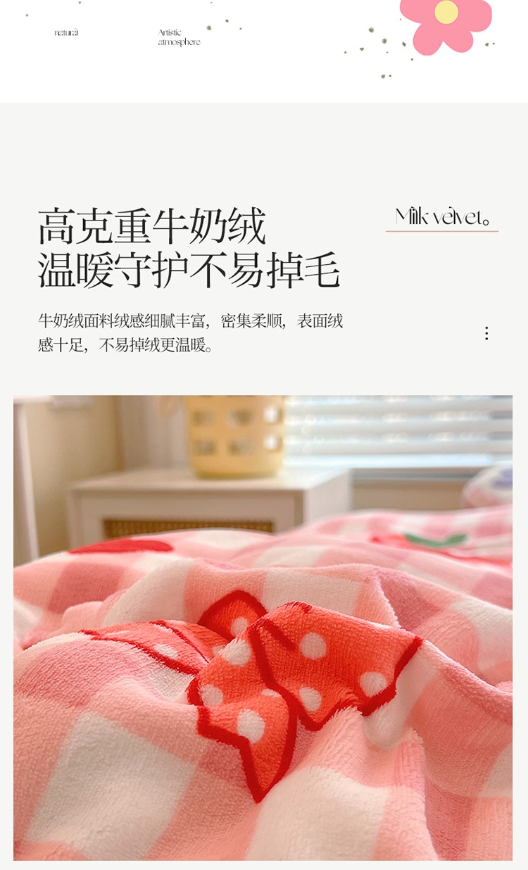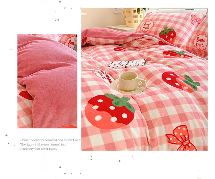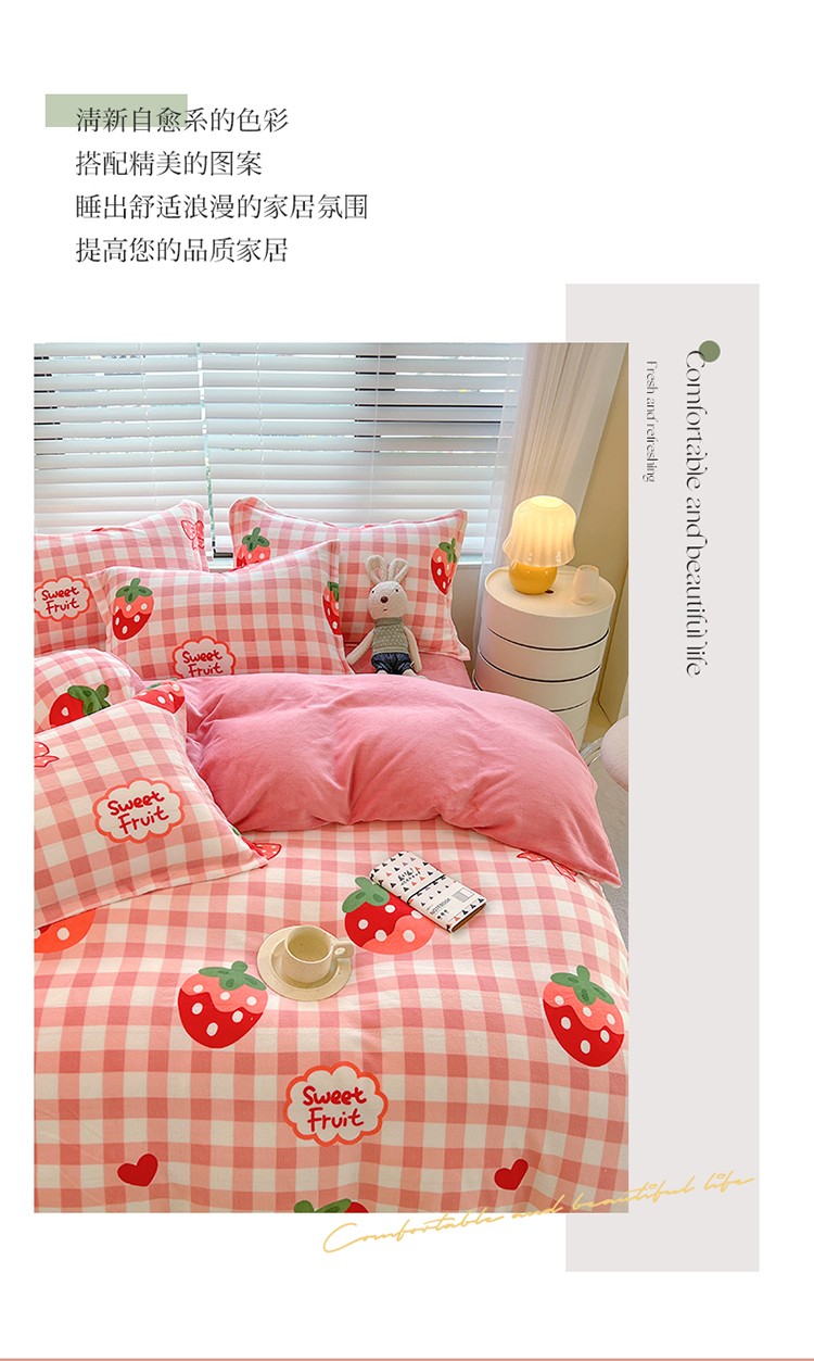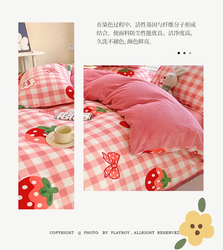 当前位置: 91家纺网 > 商品网购 > 床品套件 > 四件套 > 牛奶绒四件套 > 兄弟坊 2022新款牛奶绒印花四件套-草莓格