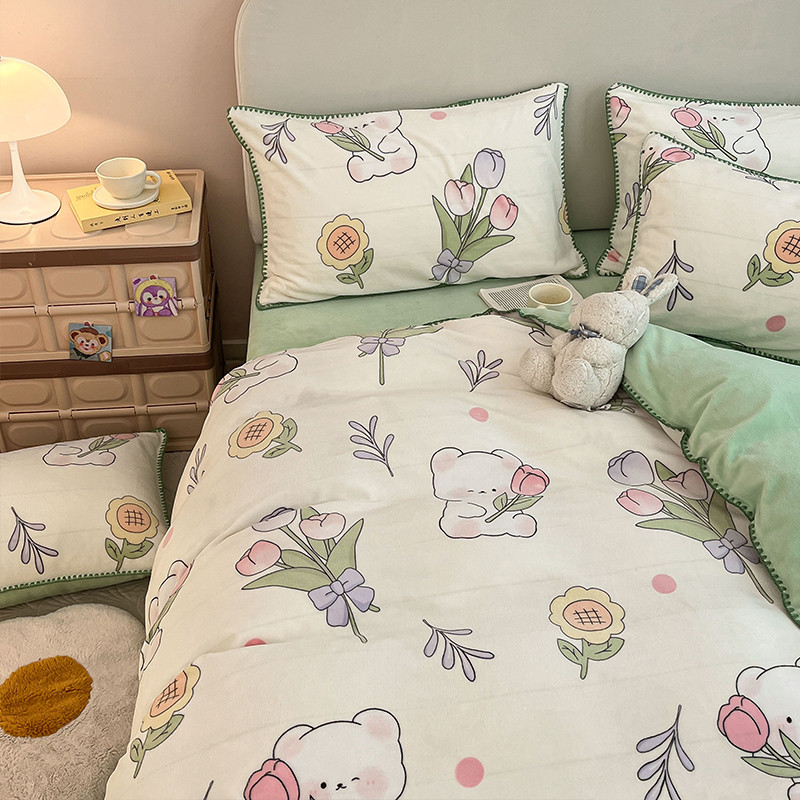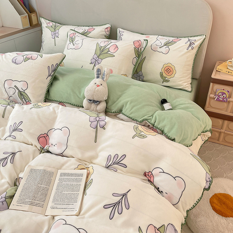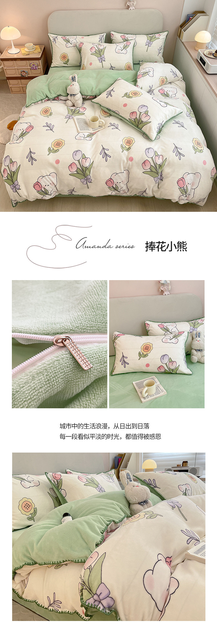 当前位置: 91家纺网 > 商品网购 > 床品套件 > 四件套 > 牛奶绒四件套 > 安哆啦 新款贝壳边工艺牛奶绒珊瑚绒四件套单被套 捧花小熊
