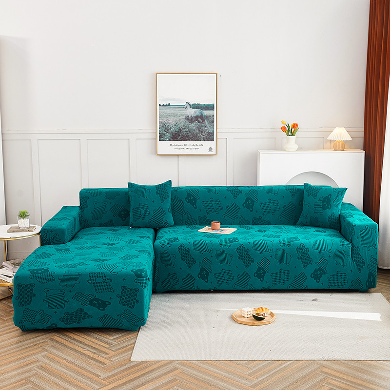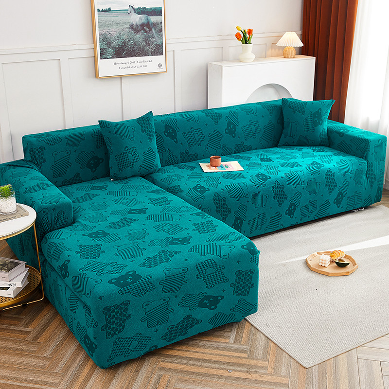 商品名称:逐日沙发套 2023新款阳离子雕花沙发套 饼干熊 墨绿