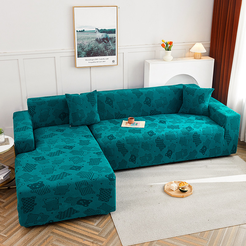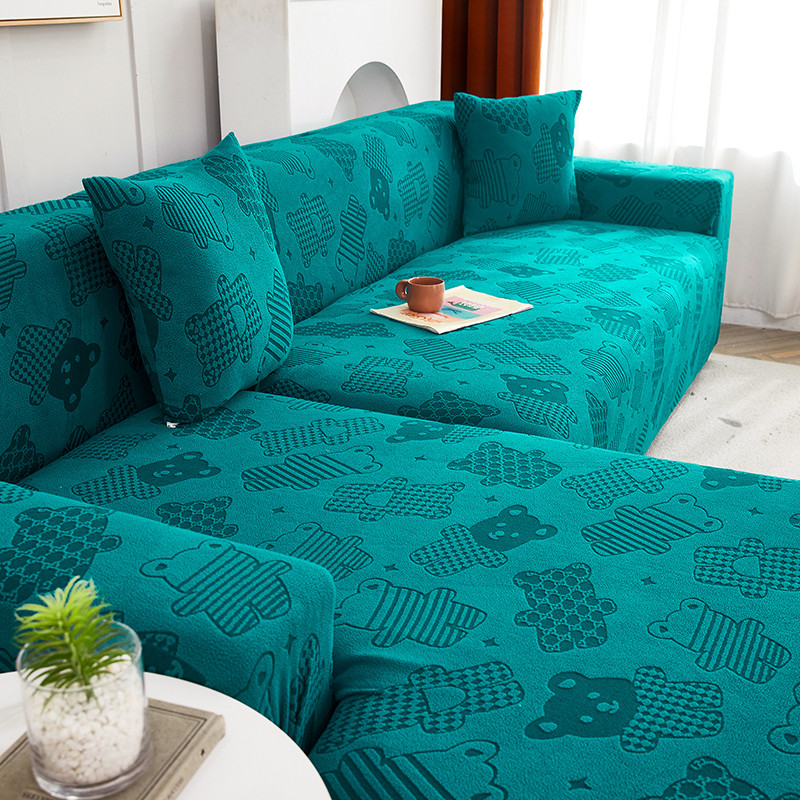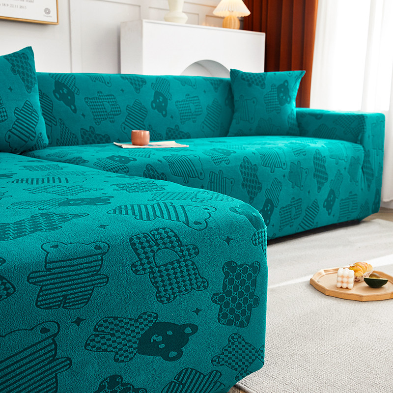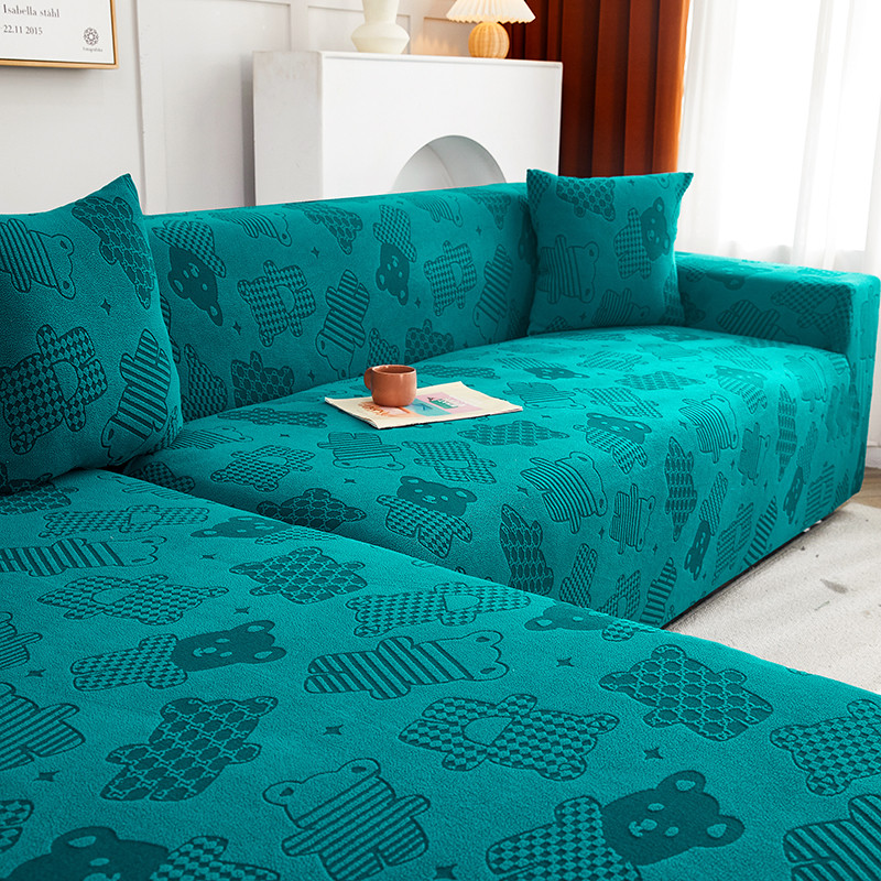 逐日沙发套 2023新款阳离子雕花沙发套 饼干熊 墨绿