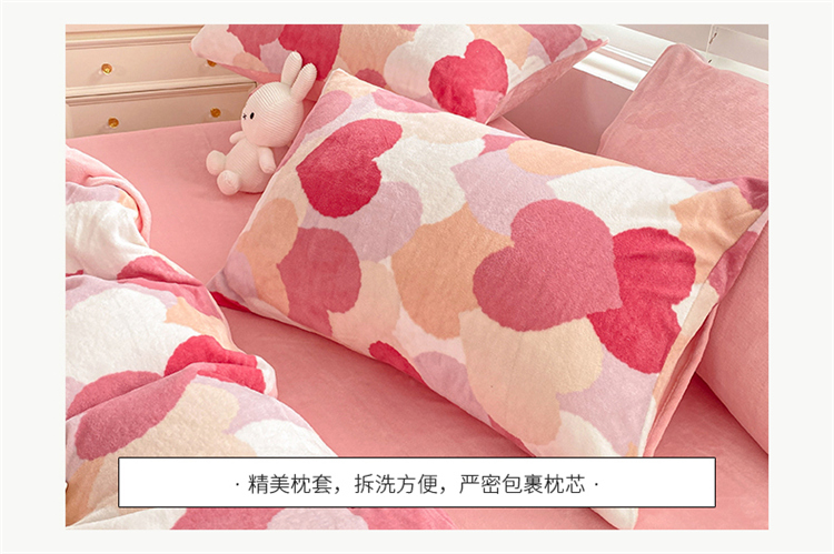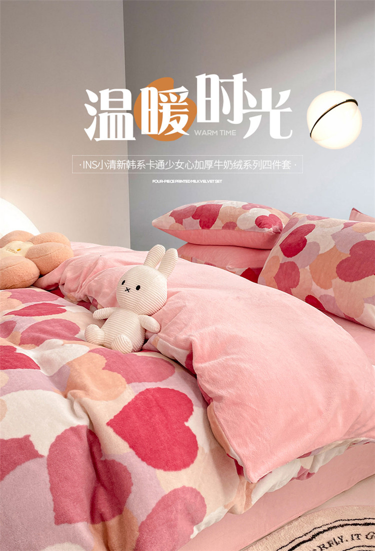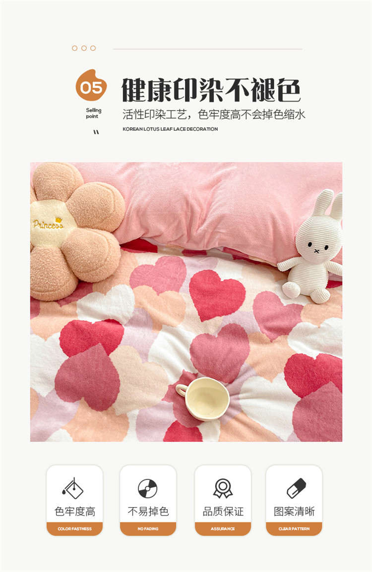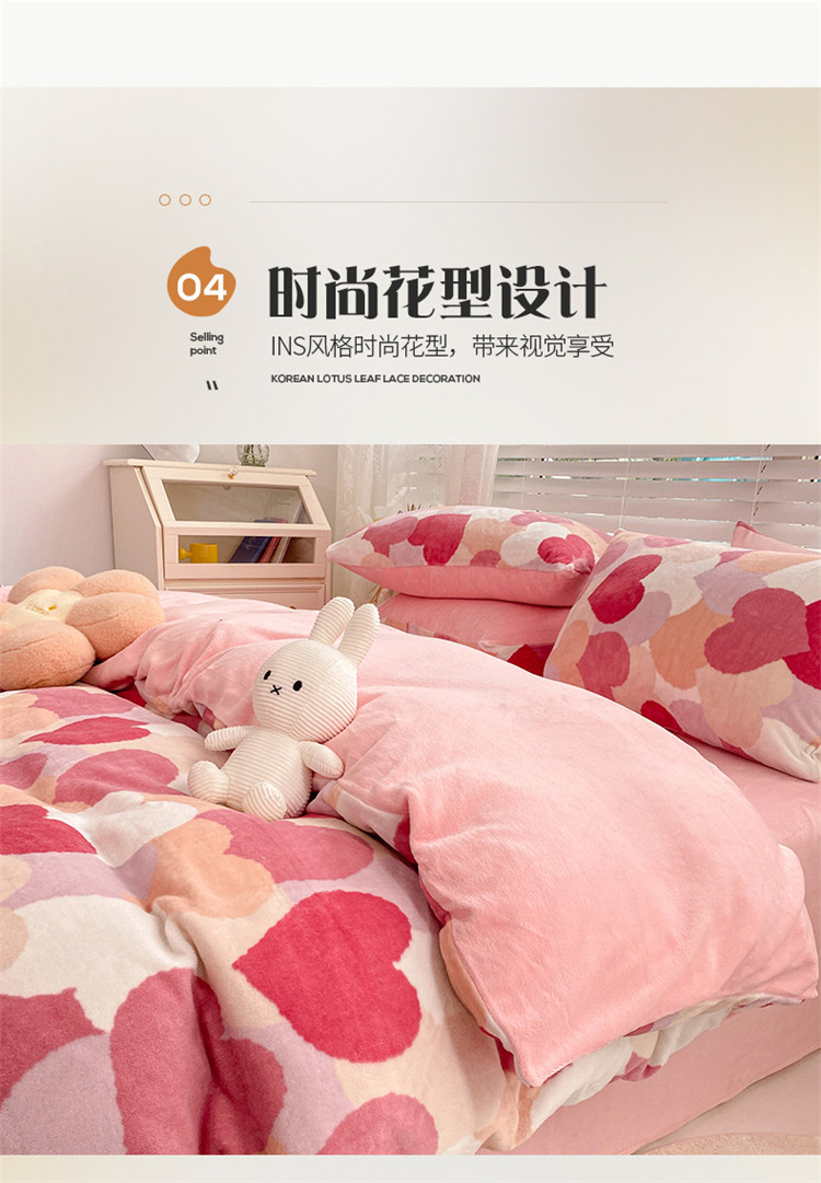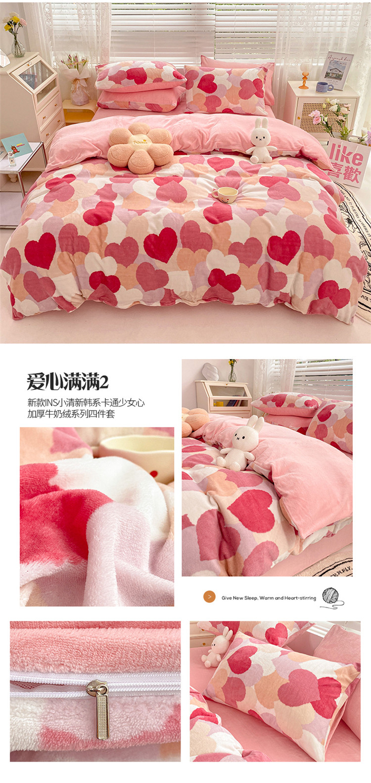桃子家居 2022新款ins小清新韩系加厚牛奶绒系列四件套 绒-爱心满满2