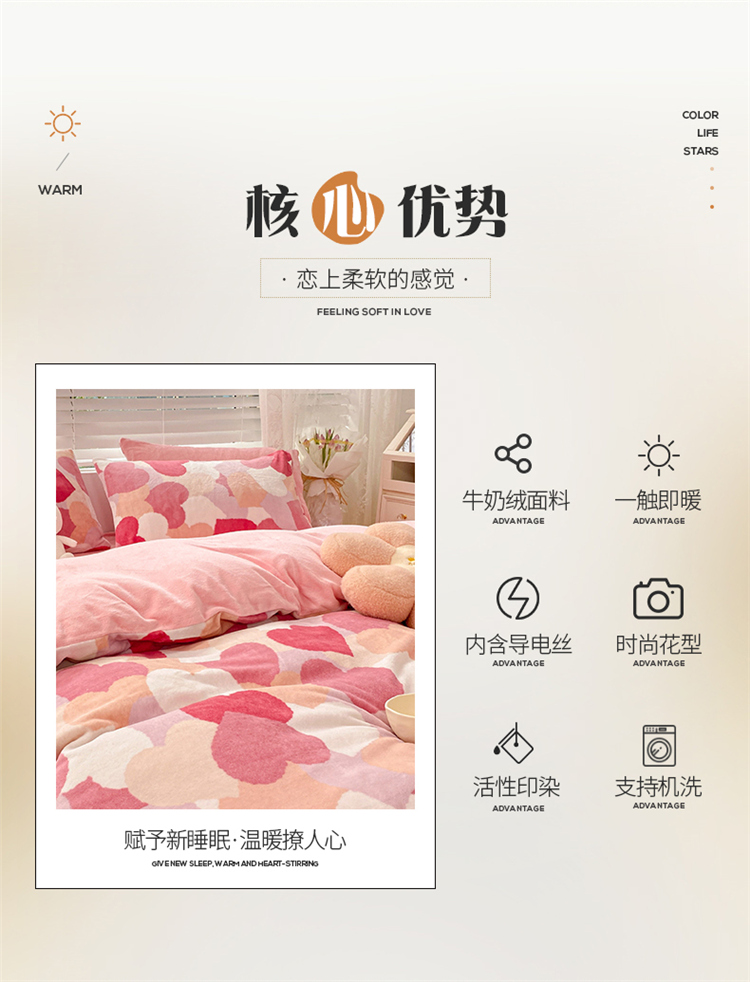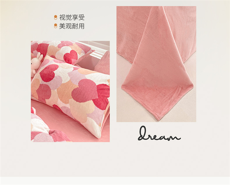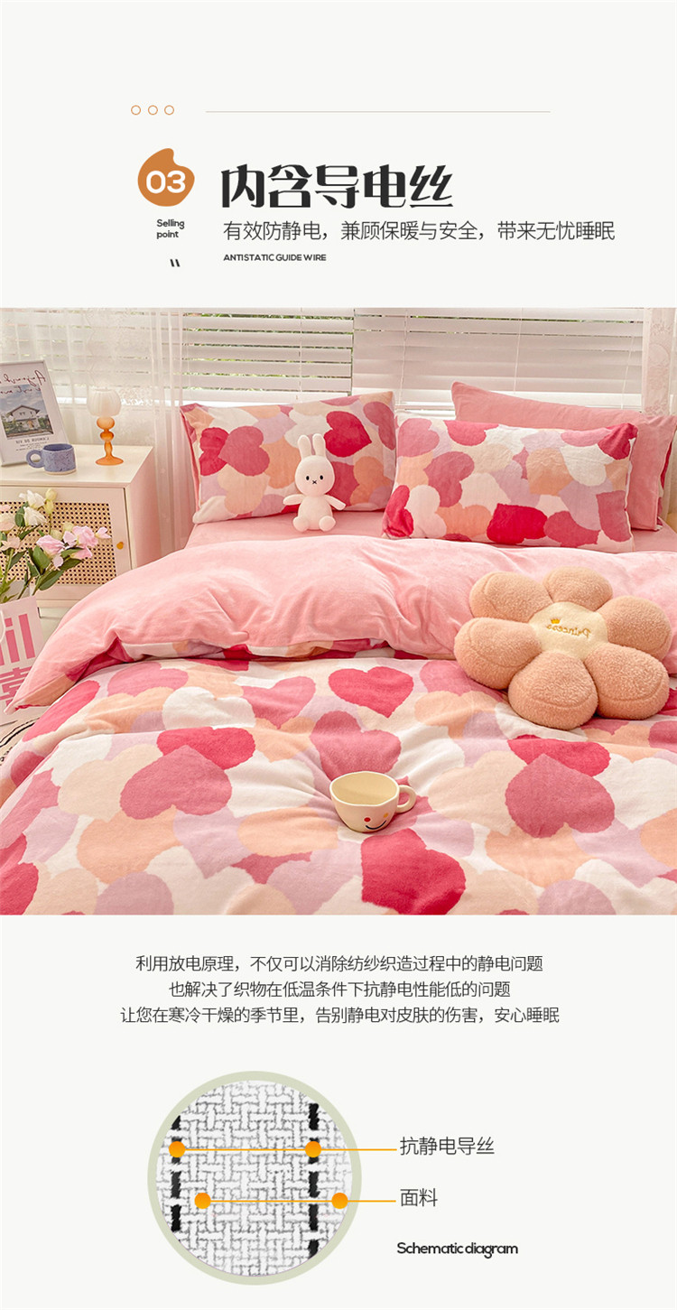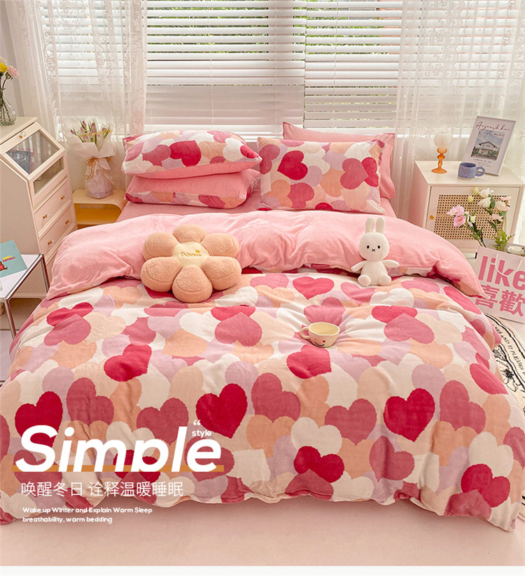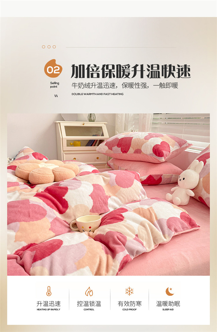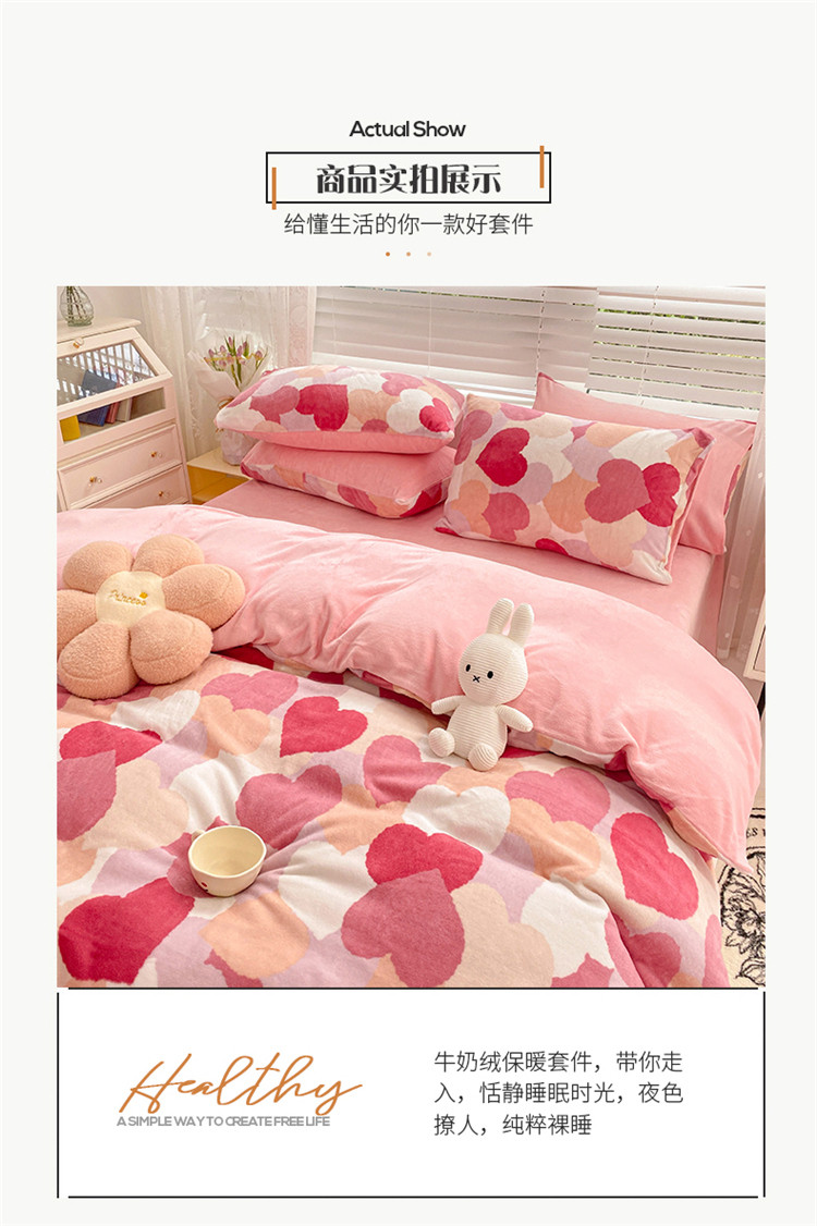 桃子家居 2022新款ins小清新韩系加厚牛奶绒系列四件套 绒-爱心满满2