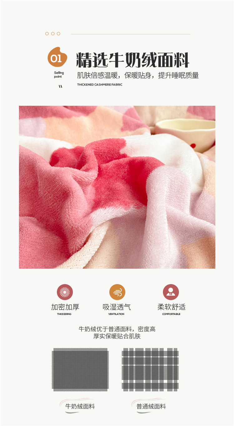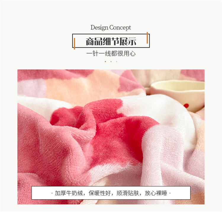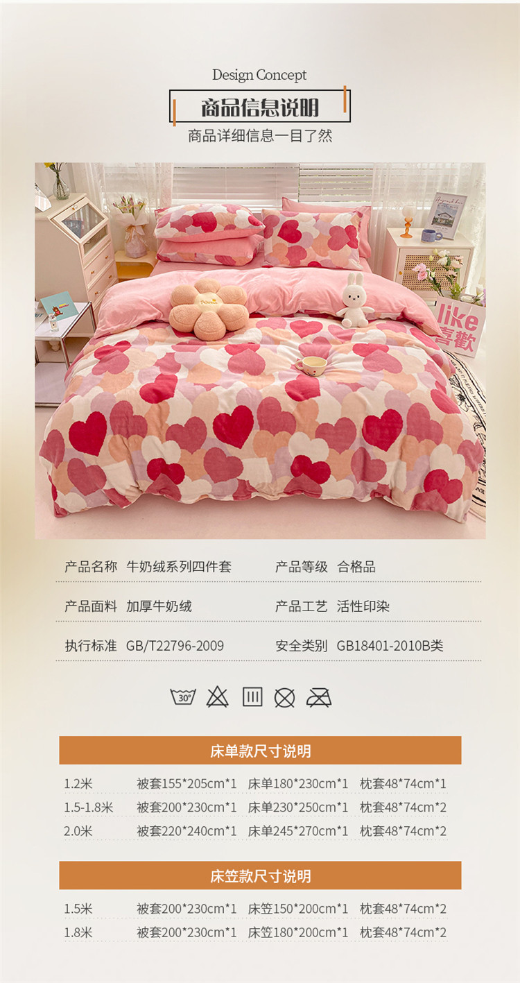 商品名称:桃子家居 2022新款ins小清新韩系加厚牛奶绒系列四件套 绒-爱心满满2