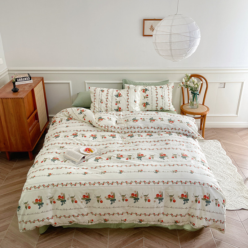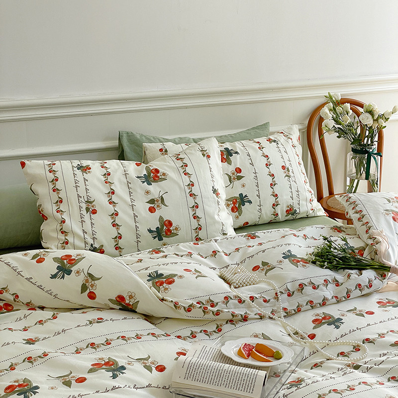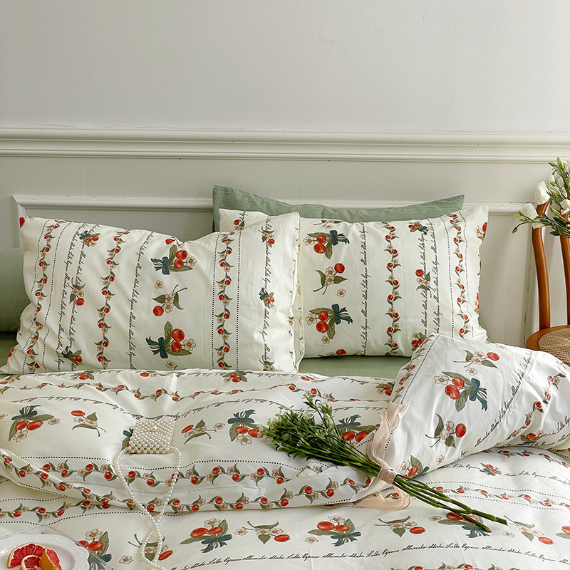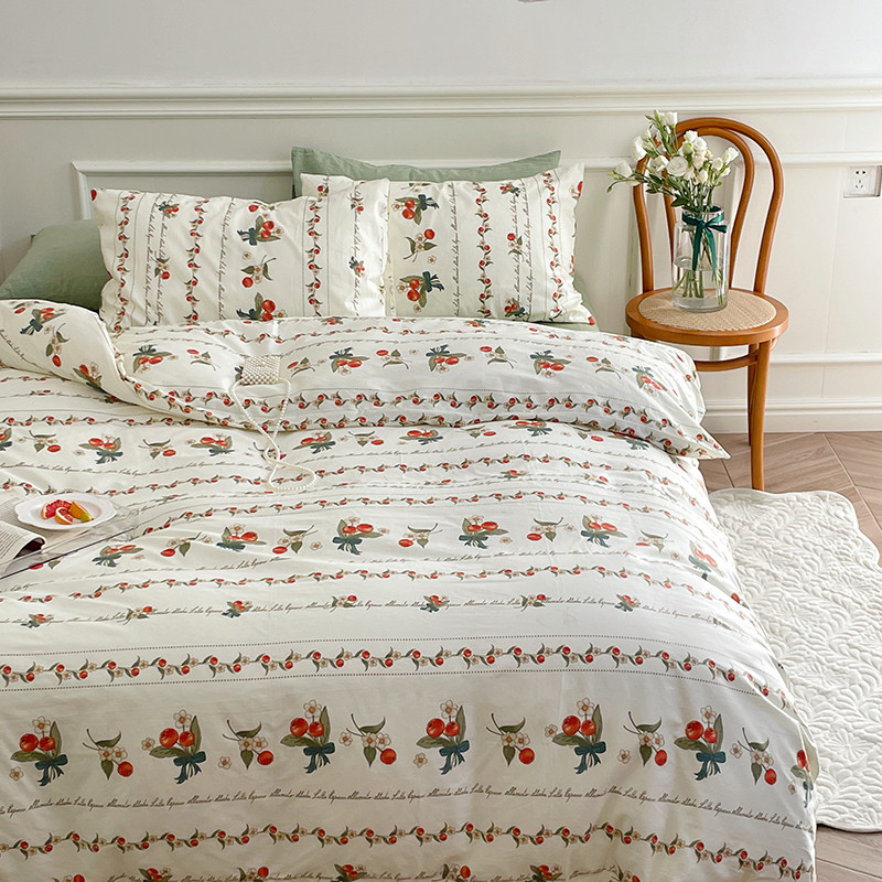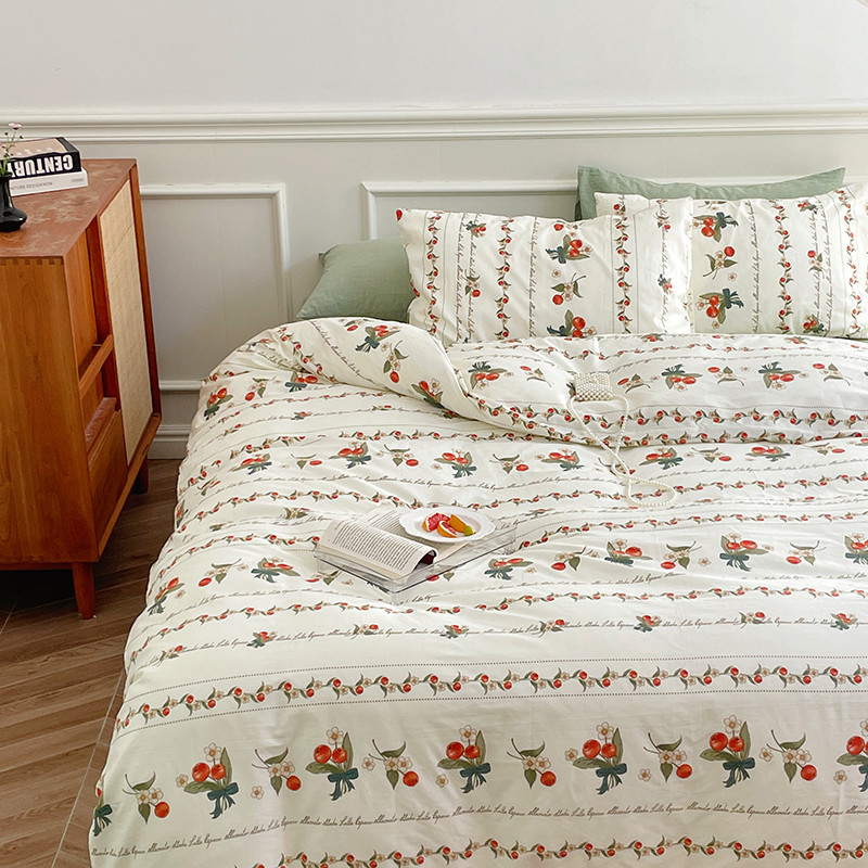 昔可家纺 2022新款仙女风全棉爱丽丝系列印花四件套 樱桃花