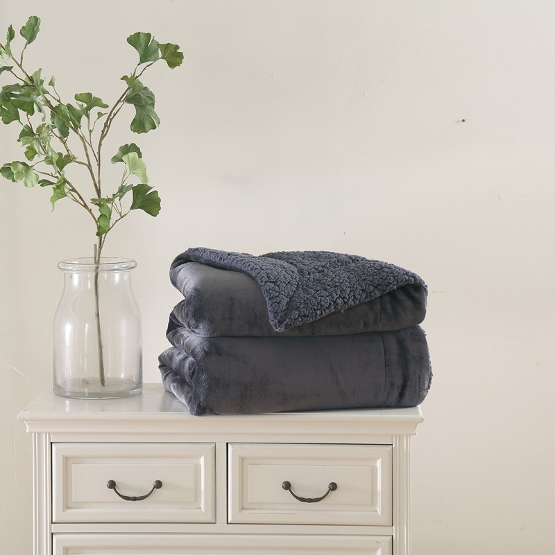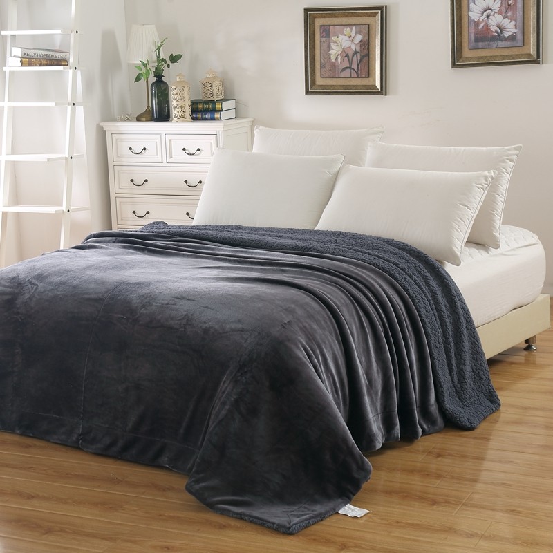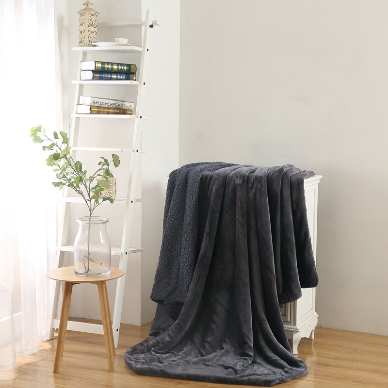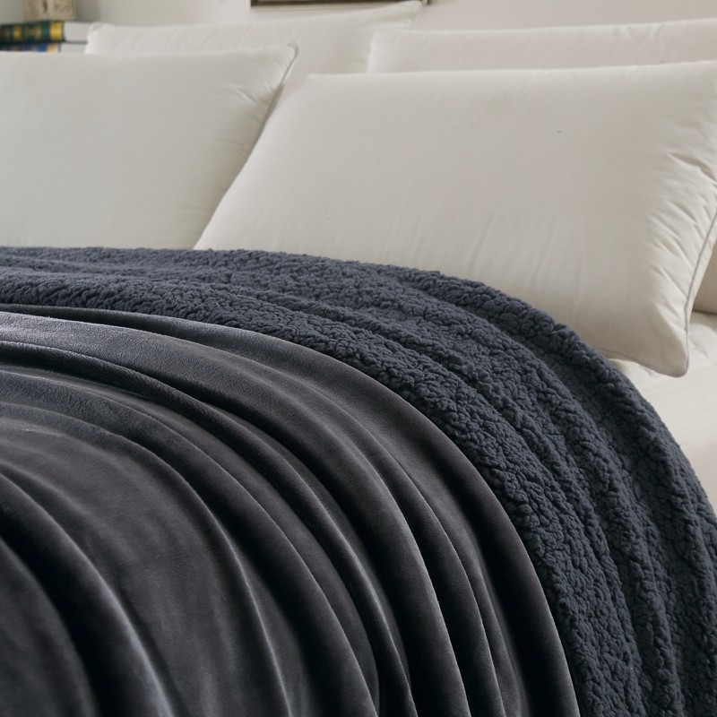 卡琪曼 2022新双面法兰绒羊羔绒毛毯办公室午睡盖毯子 深空灰