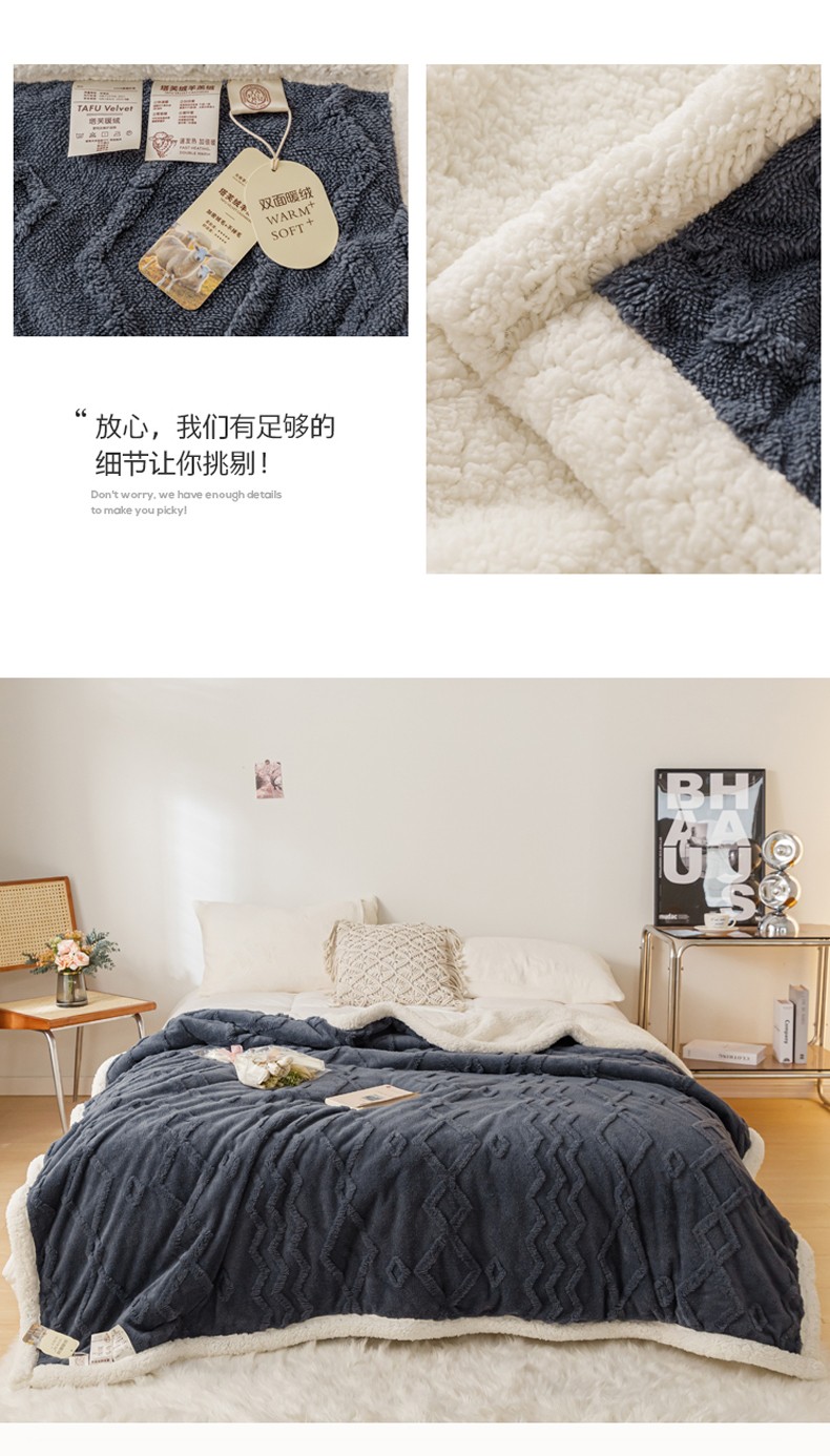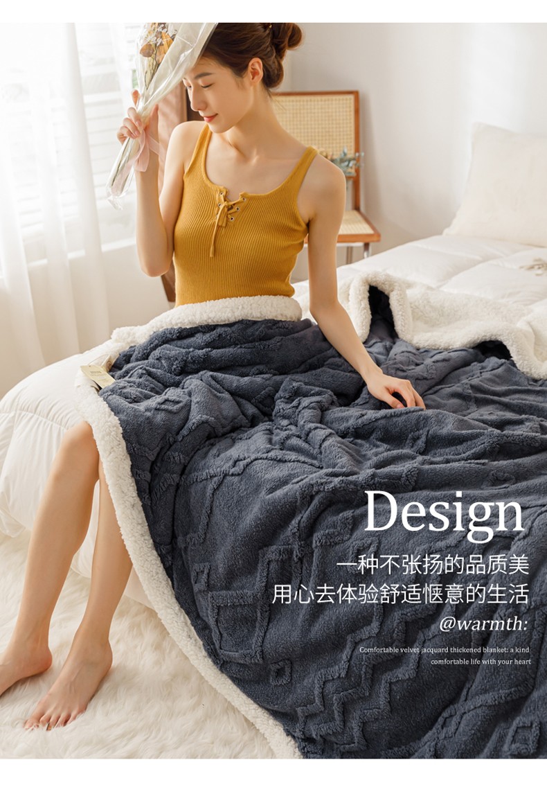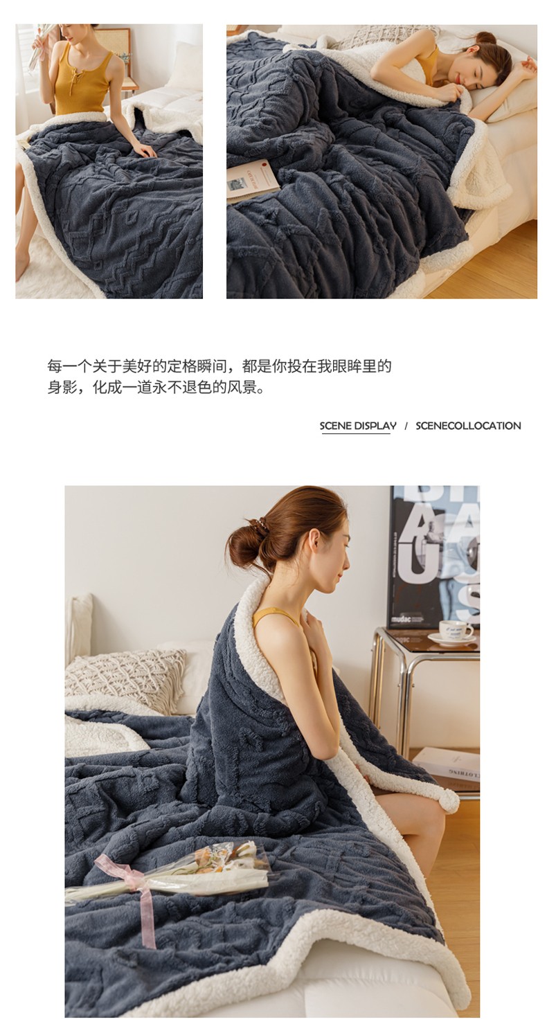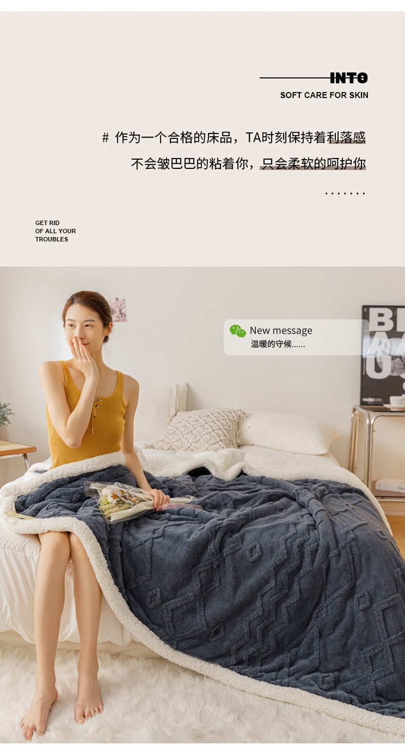 商品名称:简爱-2025加厚舒棉绒羊羔绒盖毯毛毯 纹路菱形格-北卡蓝