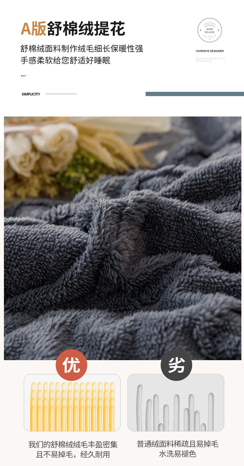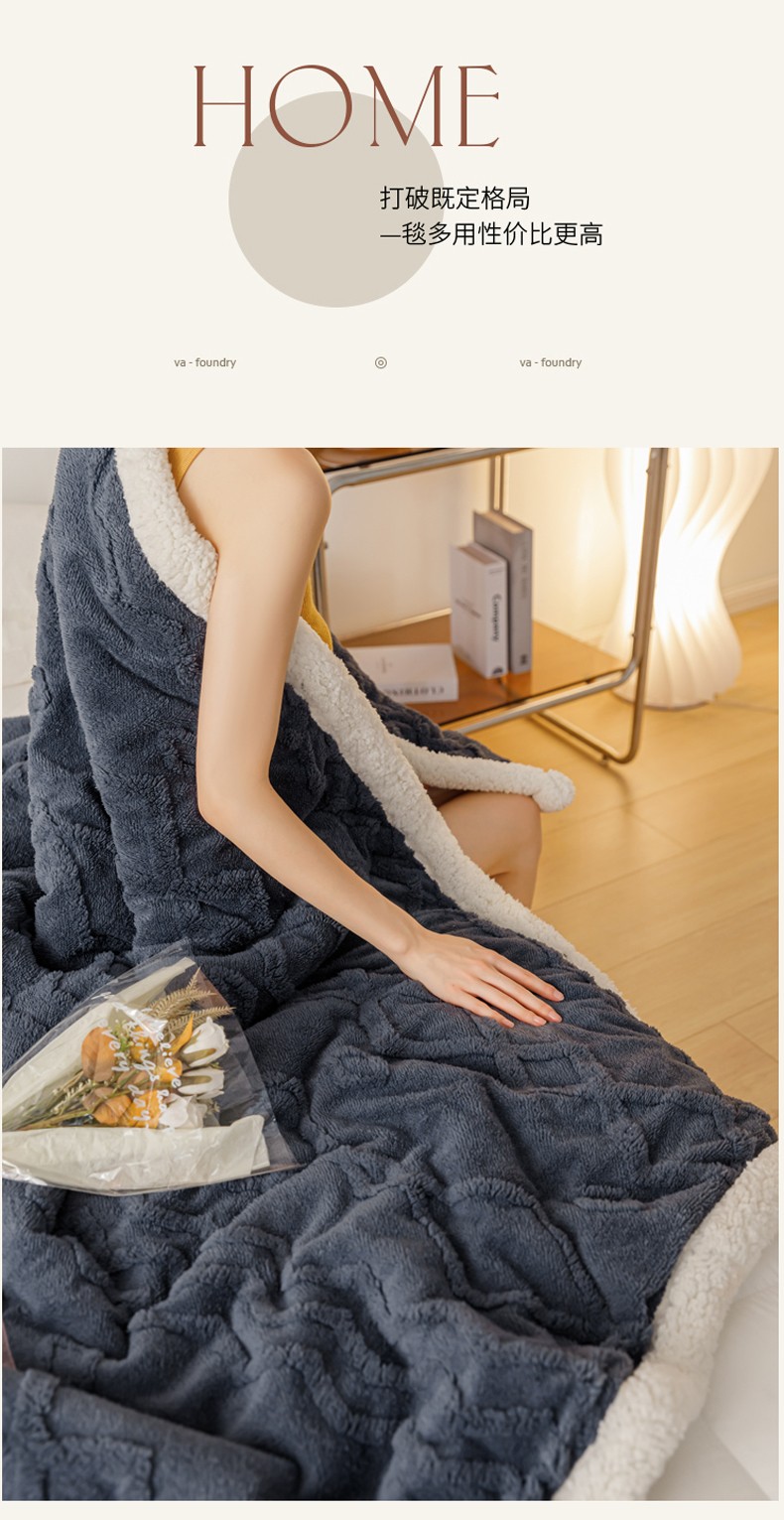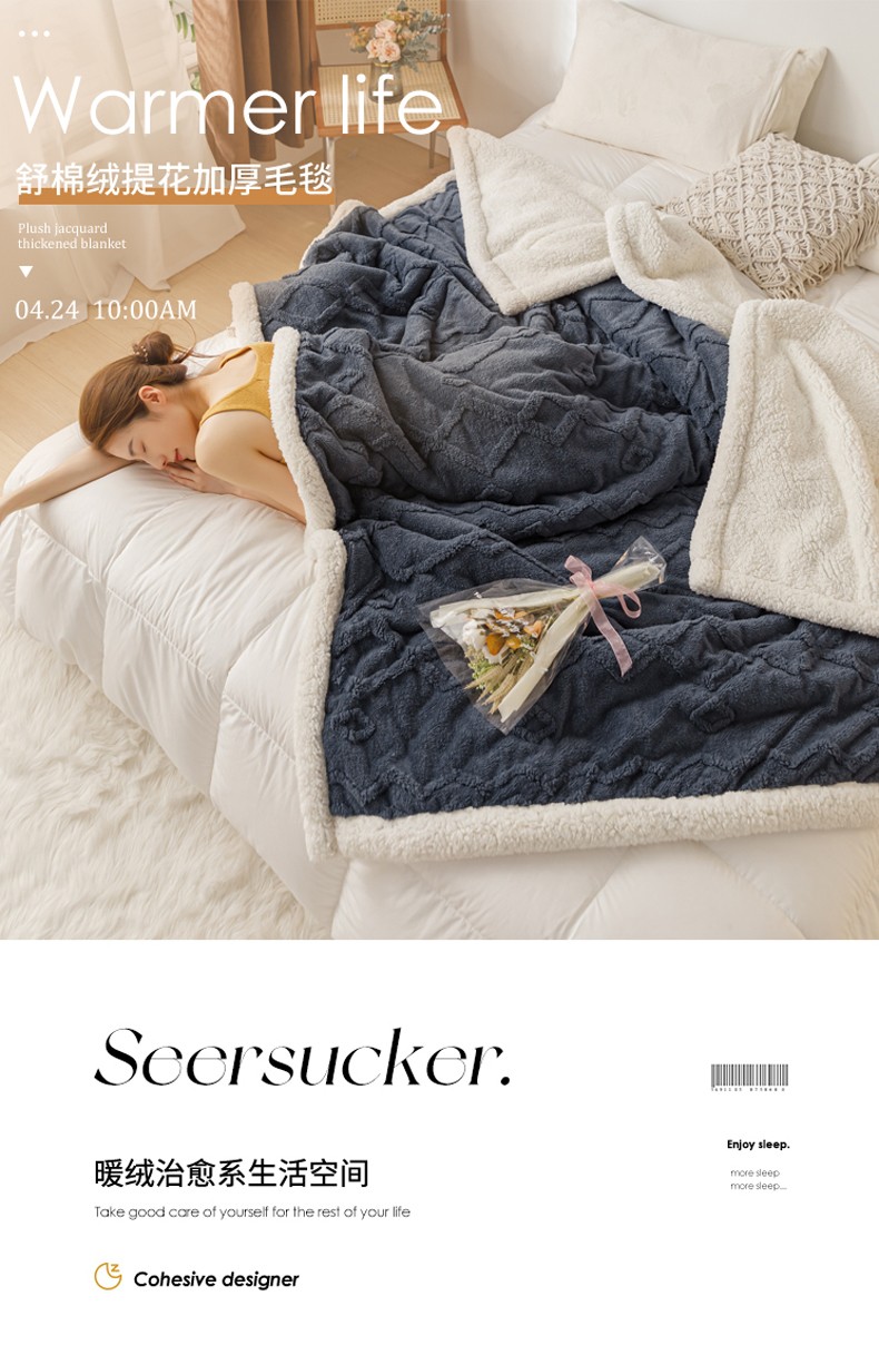 商品名称:简爱-2025加厚舒棉绒羊羔绒盖毯毛毯 纹路菱形格-北卡蓝