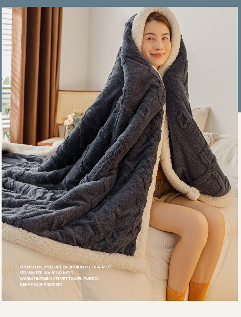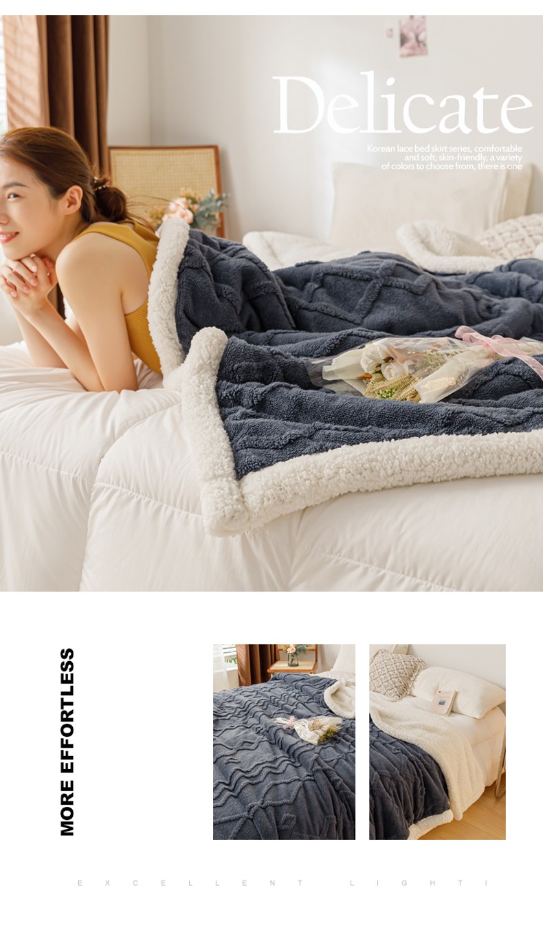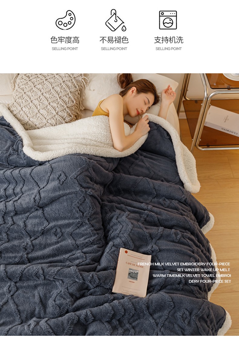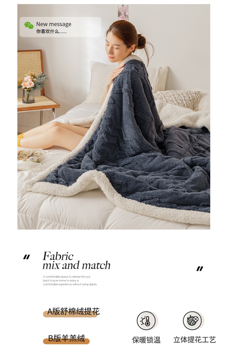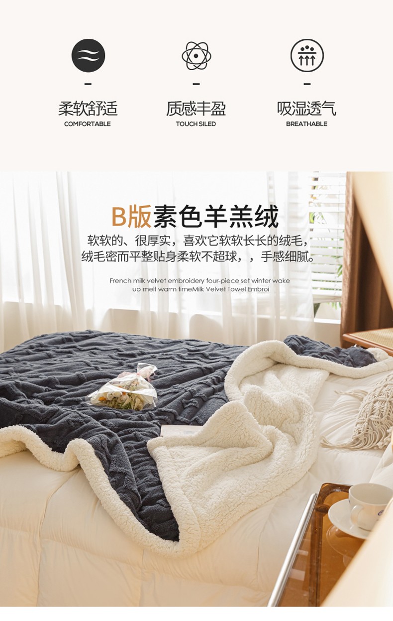 (总)简爱 2025新款法莱绒羊羔绒多功能被套毯,藏青,豆沙,鹅黄,湖蓝,酒红,咖啡,浅绿,深灰,驼色,夕阳红,银灰,玉色