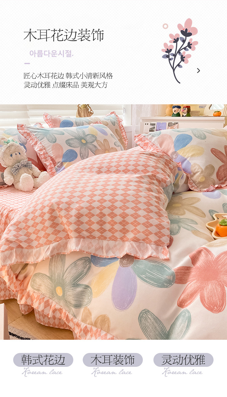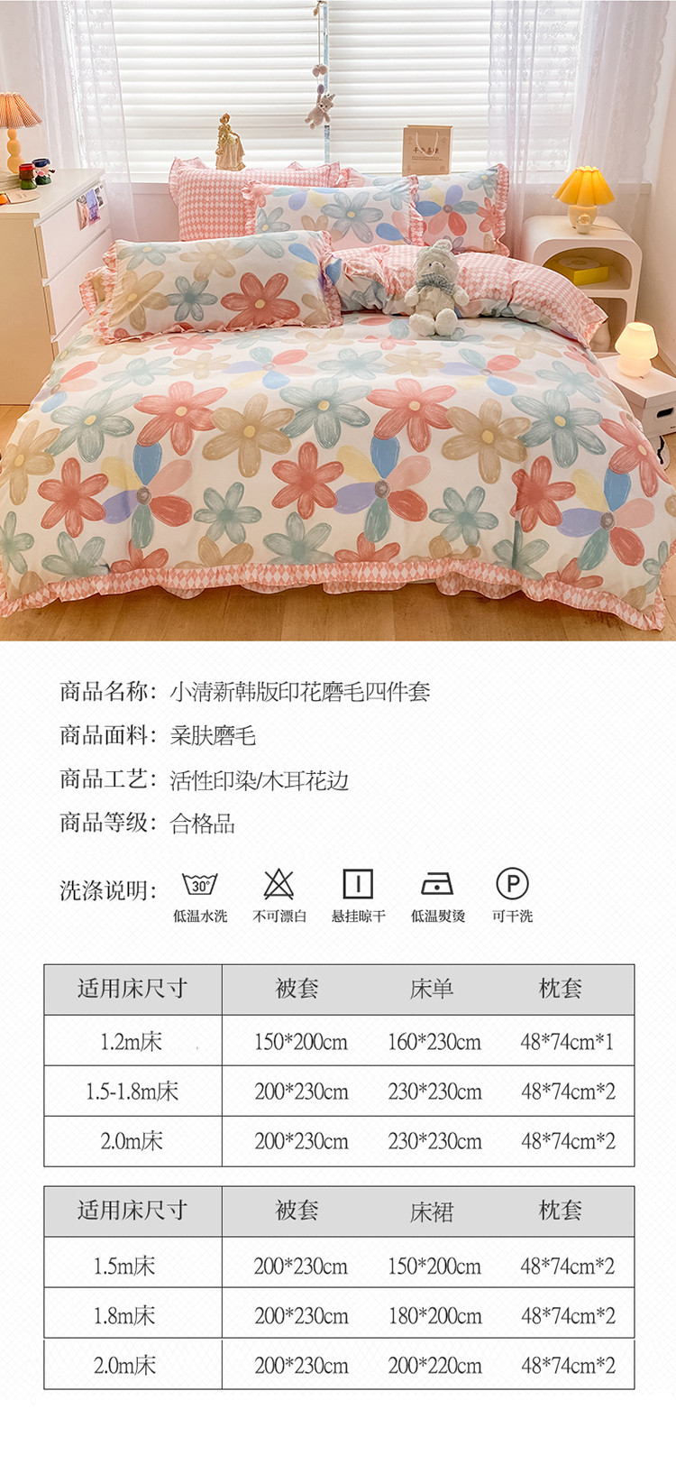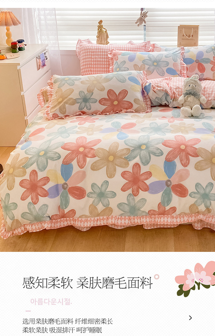 当前位置: 91家纺网 > 商品网购 > 床品套件 > 四件套 > 上尚居 2024新款小清新韩版花边磨毛四件套水洗棉花束之美