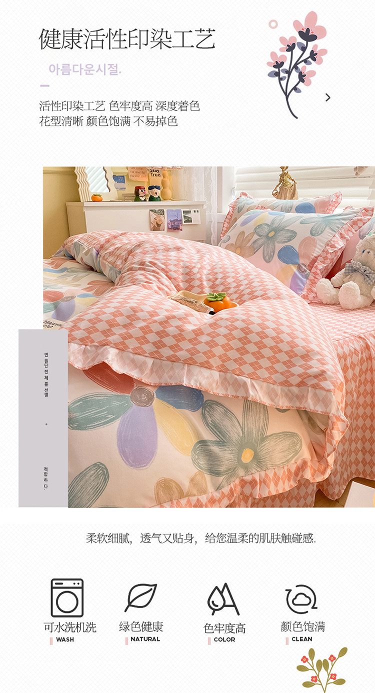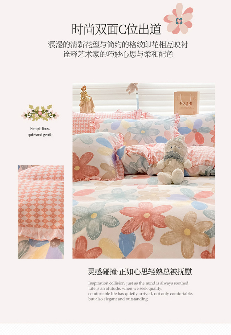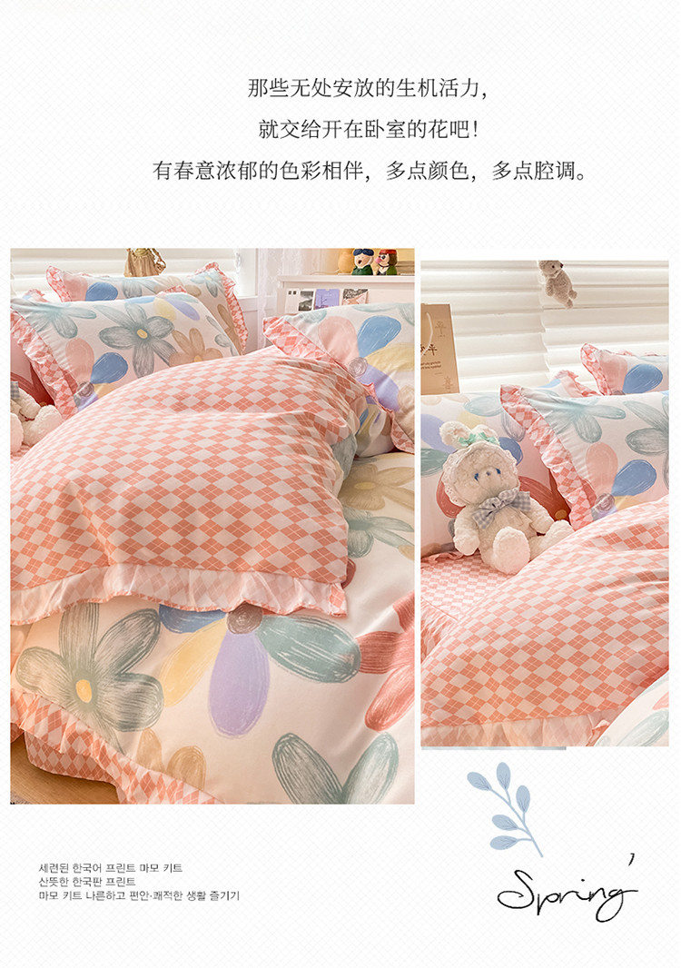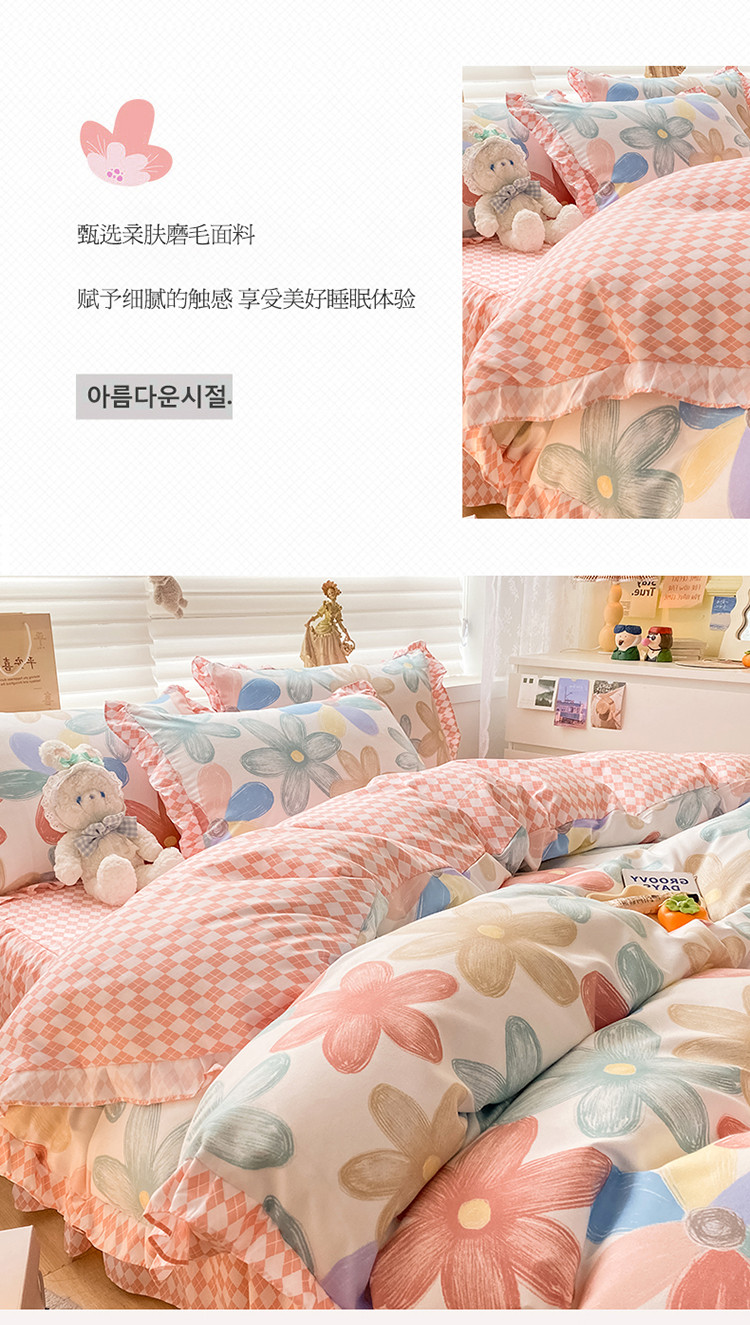 当前位置: 91家纺网 > 商品网购 > 床品套件 > 四件套 > 上尚居 2024新款小清新韩版花边磨毛四件套水洗棉花束之美
