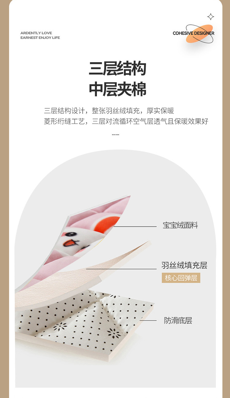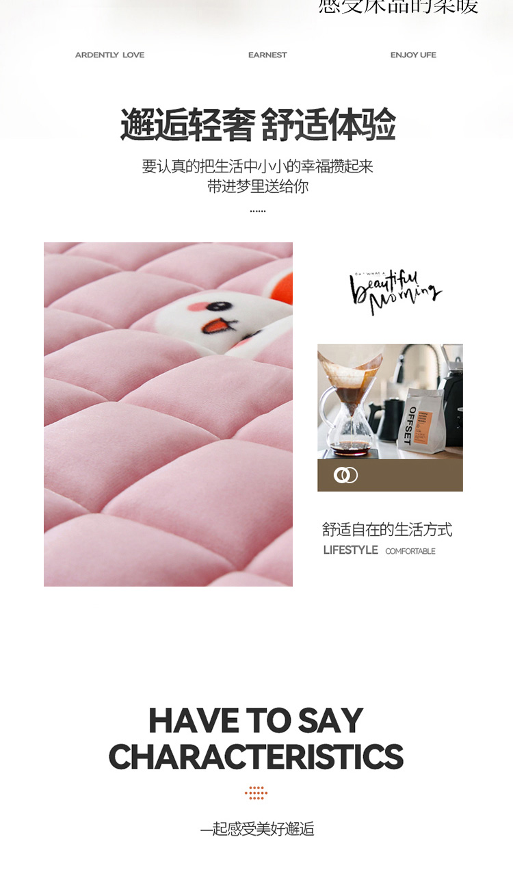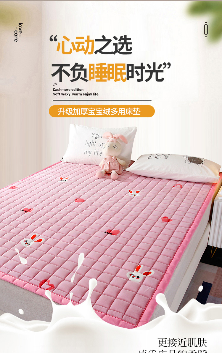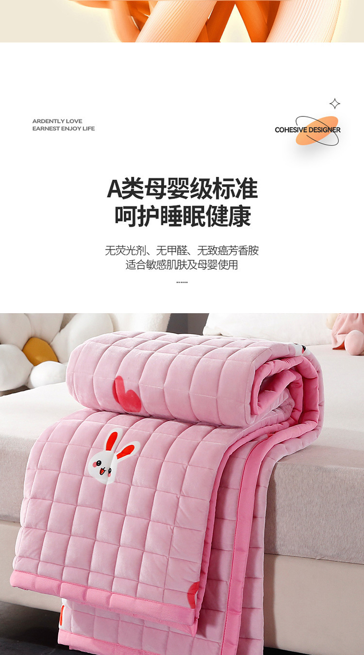 当前位置: 91家纺网 > 商品网购 > 床垫/床褥/床护垫 > 普通床垫 > 东宇 2022新款直播供货A类母婴级高克重宝宝绒床垫 爱心兔