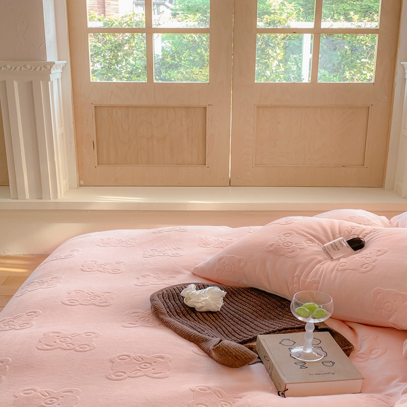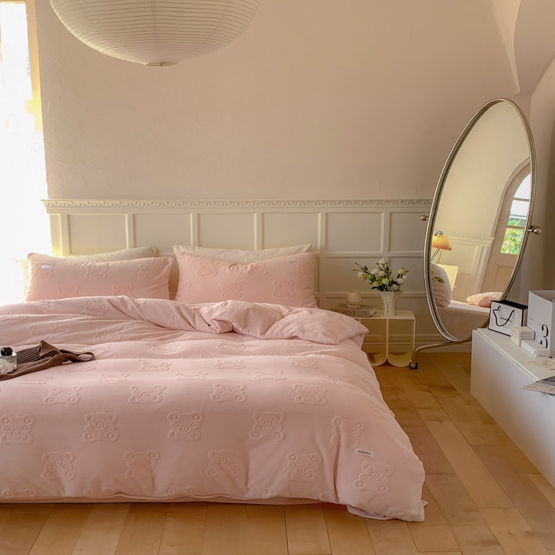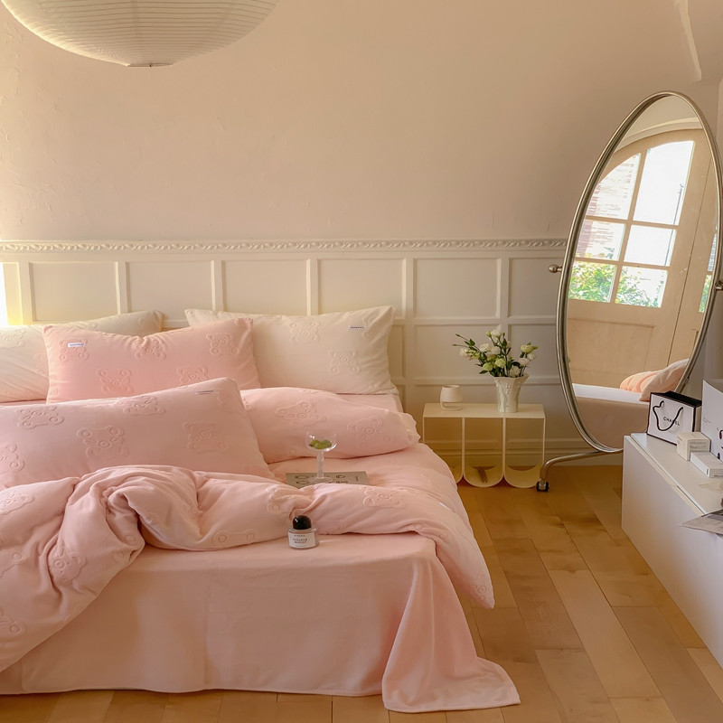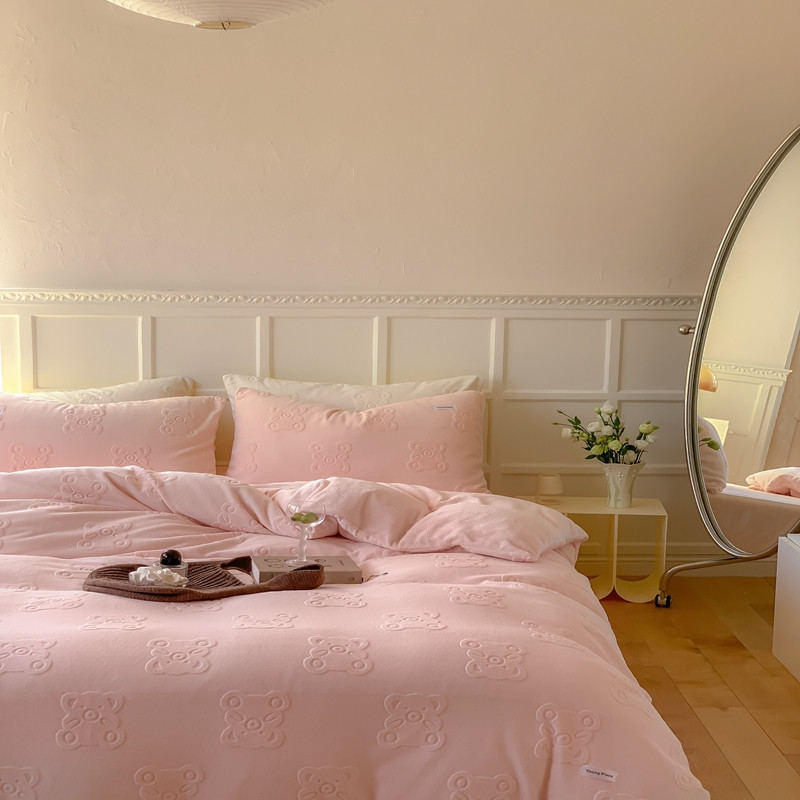 洋铭区 2022新款牛奶绒四件套小熊软糖 小熊软糖奶粉色