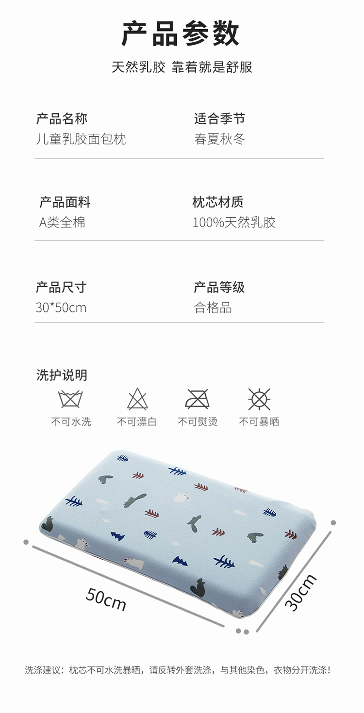 商品名称:(总)其乐2023新款儿童全棉乳胶枕30*50彩棉面包枕超30天不退不换