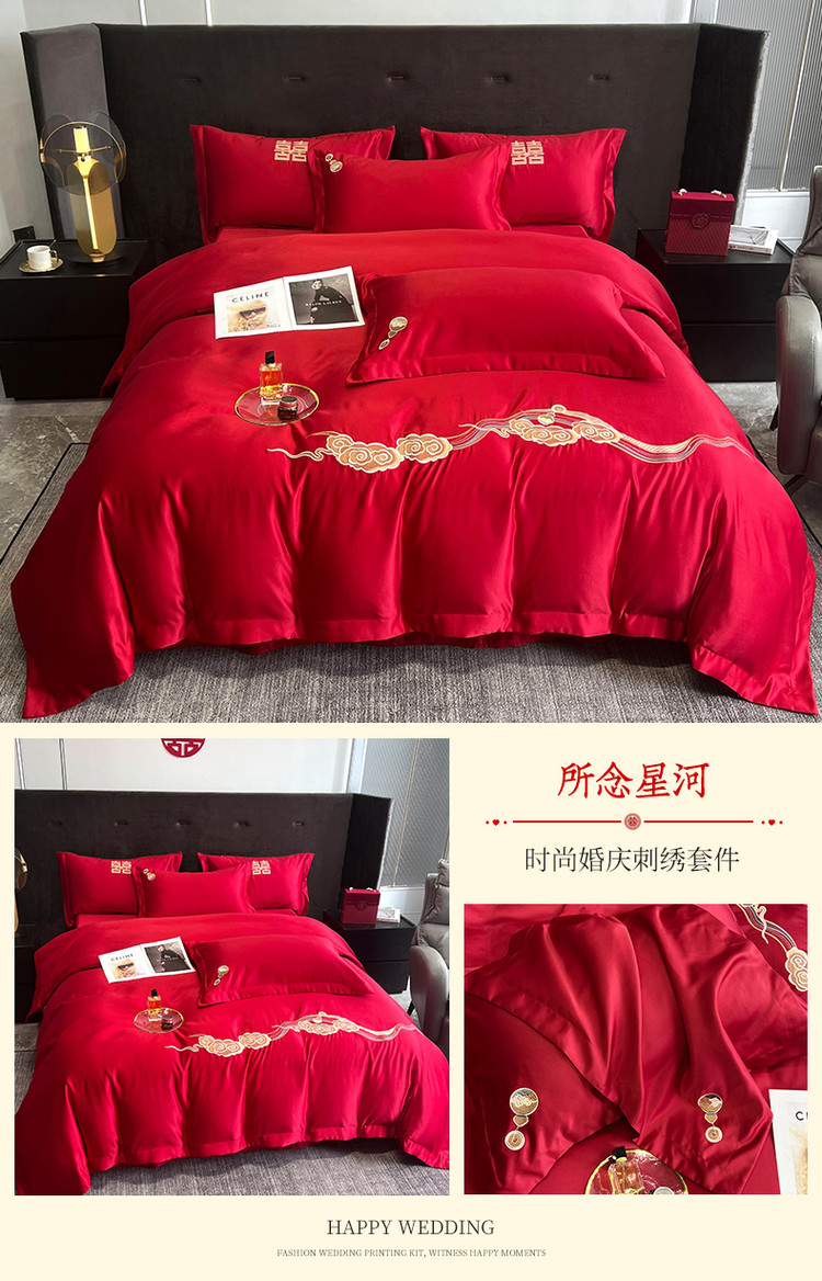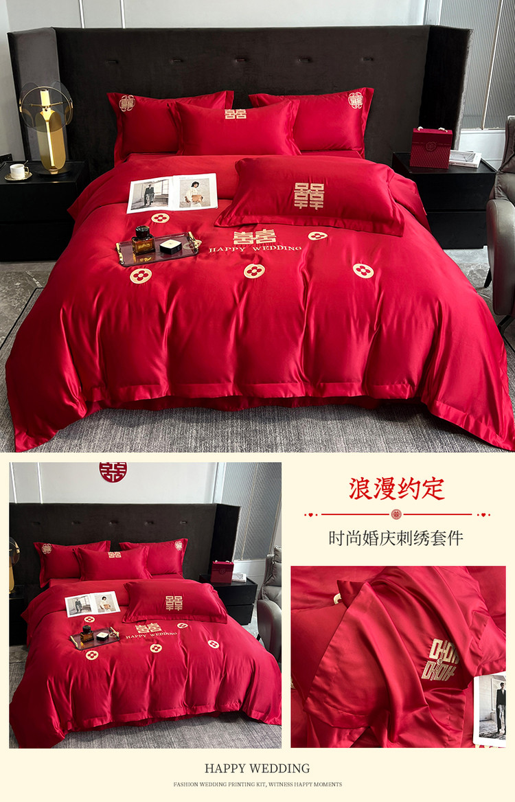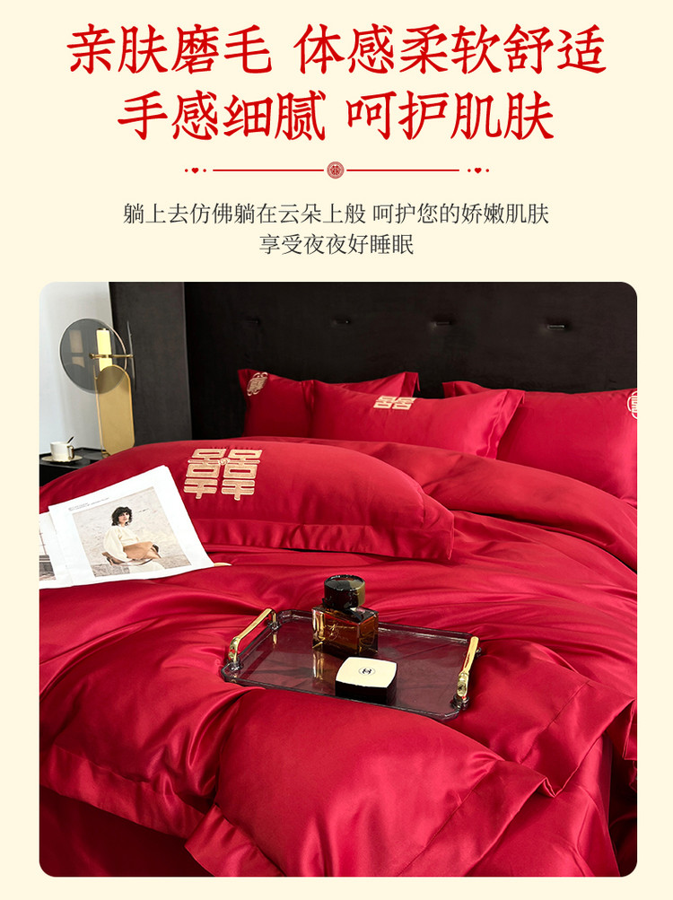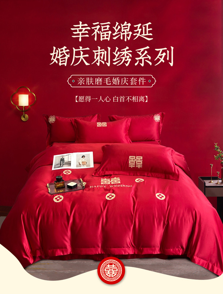 (总)优悦 2022新款超柔亲肤磨毛刺绣款婚庆四件套