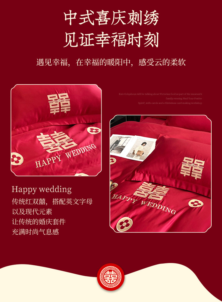 (总)优悦生活馆 2025新款亲肤婚庆夹棉床盖四件套,花嫁,喜悦,心田,予你,缘定