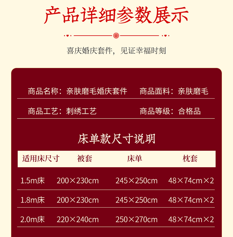 商品名称:(总)优悦 2022新款超柔亲肤磨毛刺绣款婚庆四件套