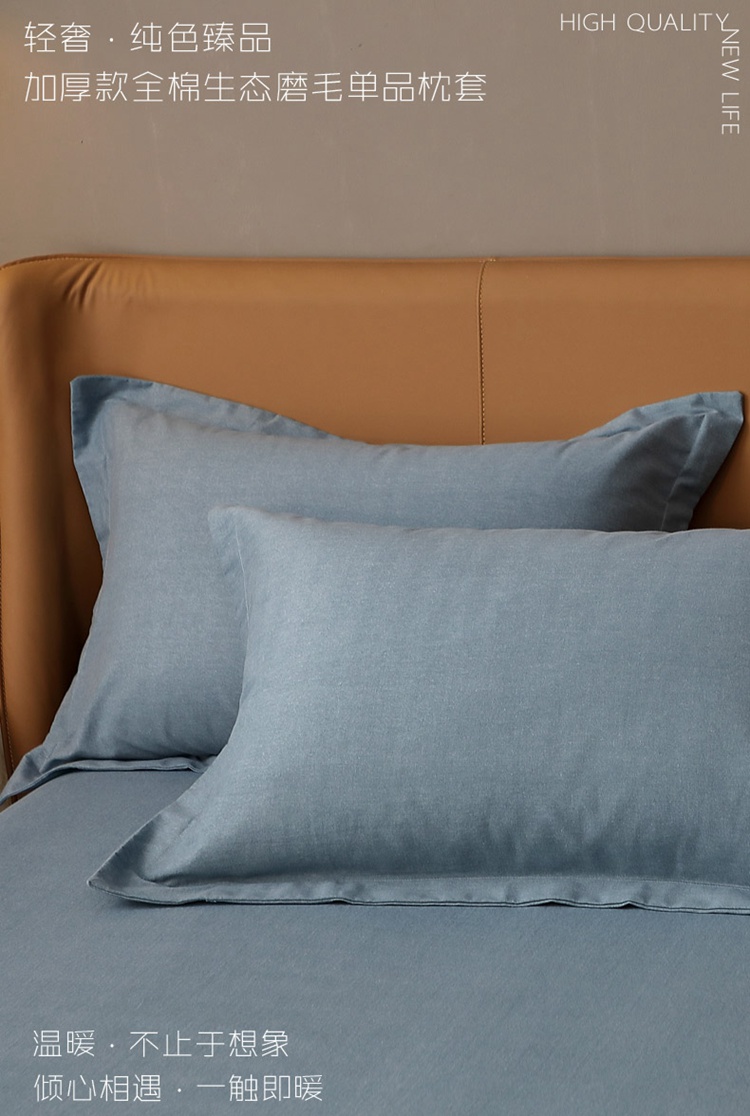 商品名称:晶缦家纺 加厚全棉纯色生态磨毛多规格系列单品枕套纯依-蓝灰