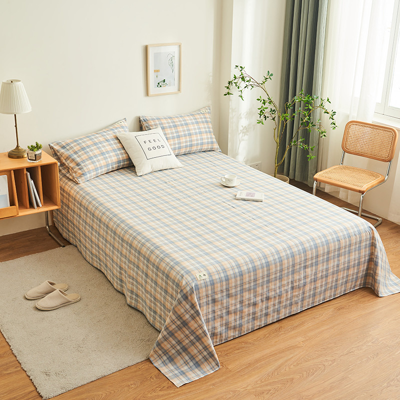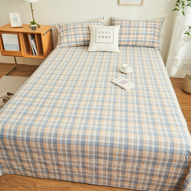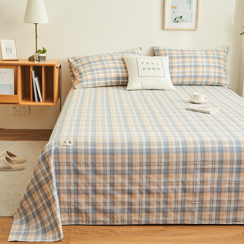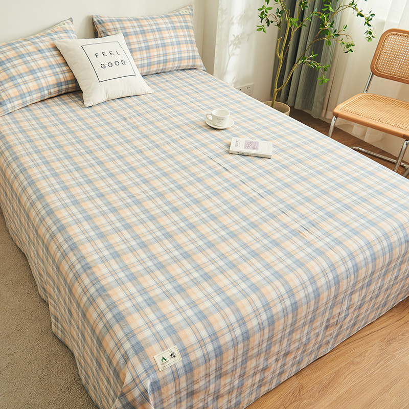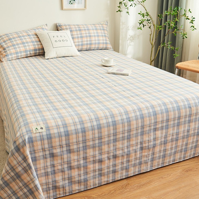 21度C 2023新款A类全棉色织水洗棉单品床单 七分格蓝
