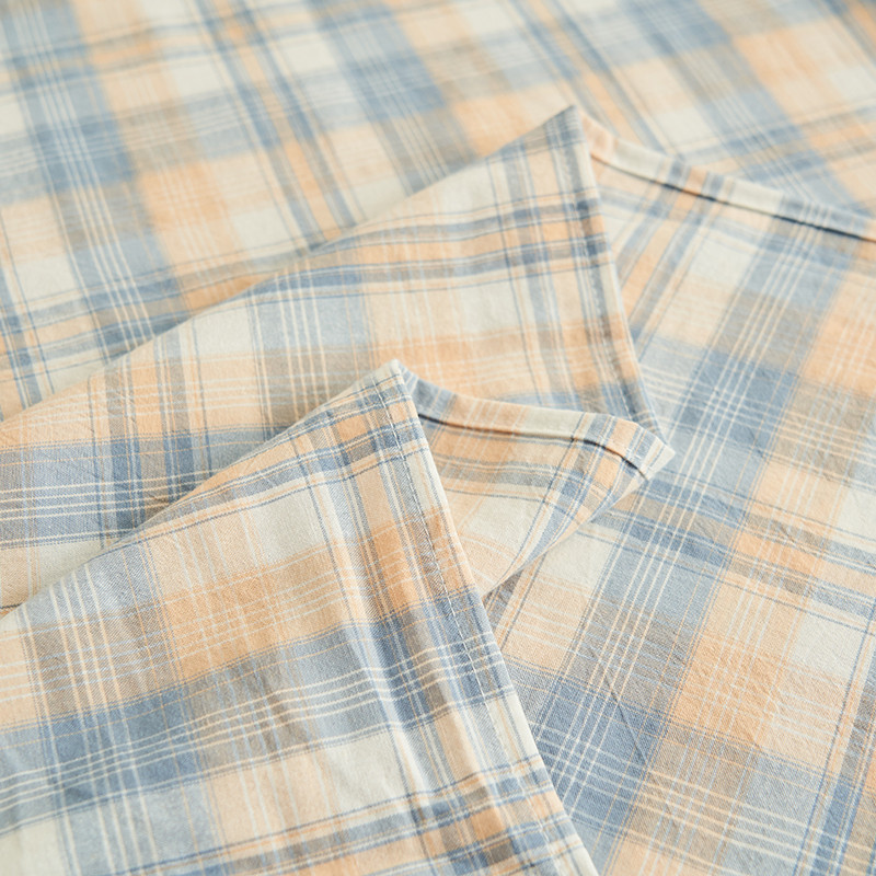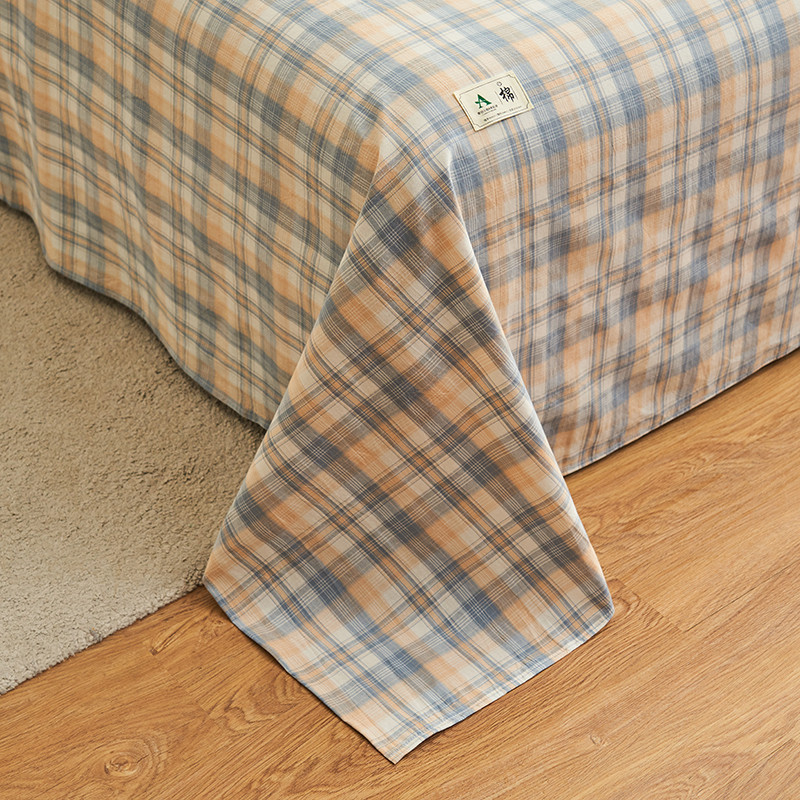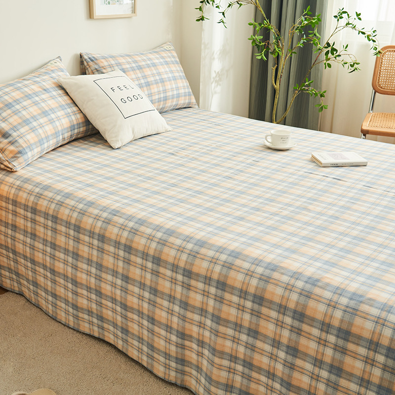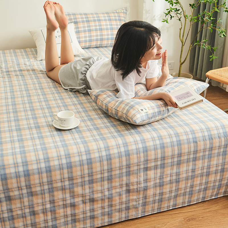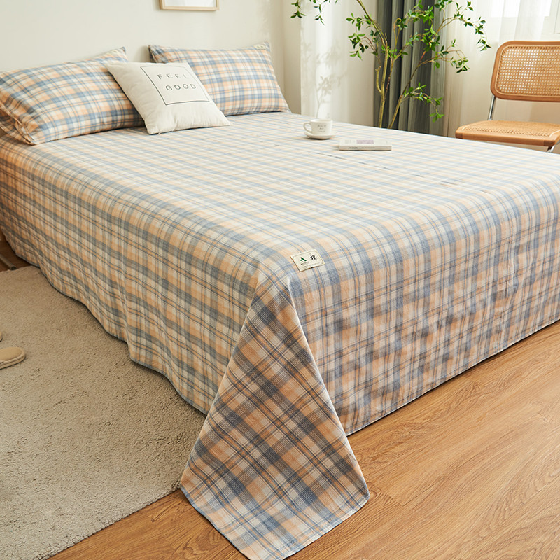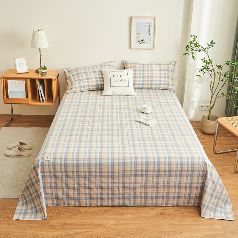 21度C 2023新款A类全棉色织水洗棉单品床单 七分格蓝