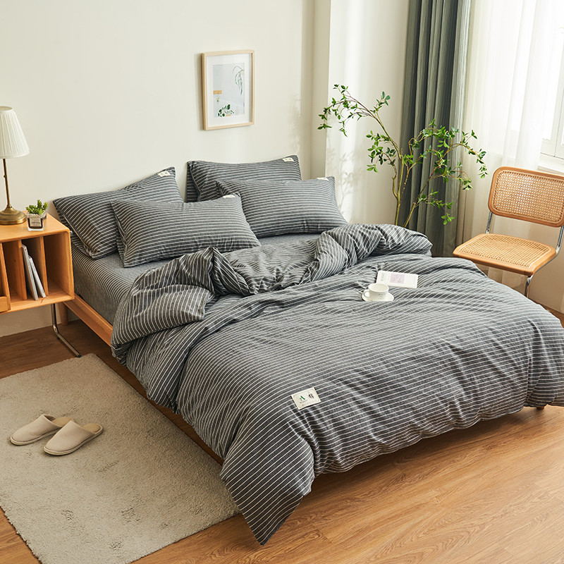 • 91家纺网 家纺一手货源 找家纺 21度C 2023新款A类全棉色织水洗棉单品被套 细条灰