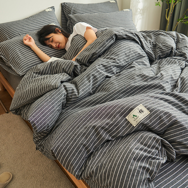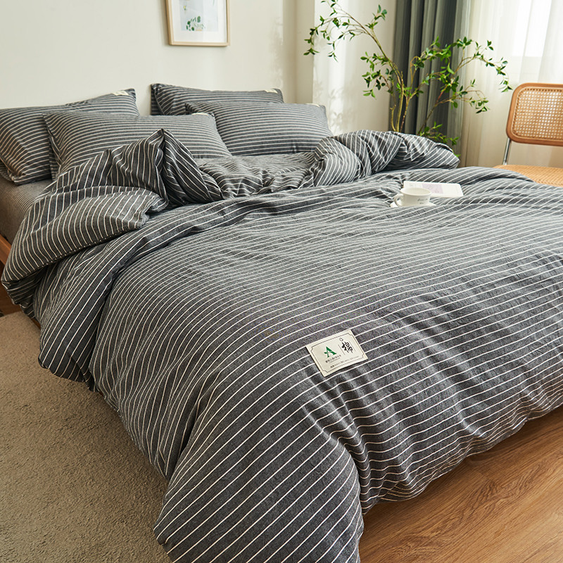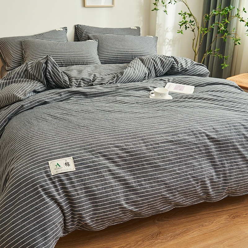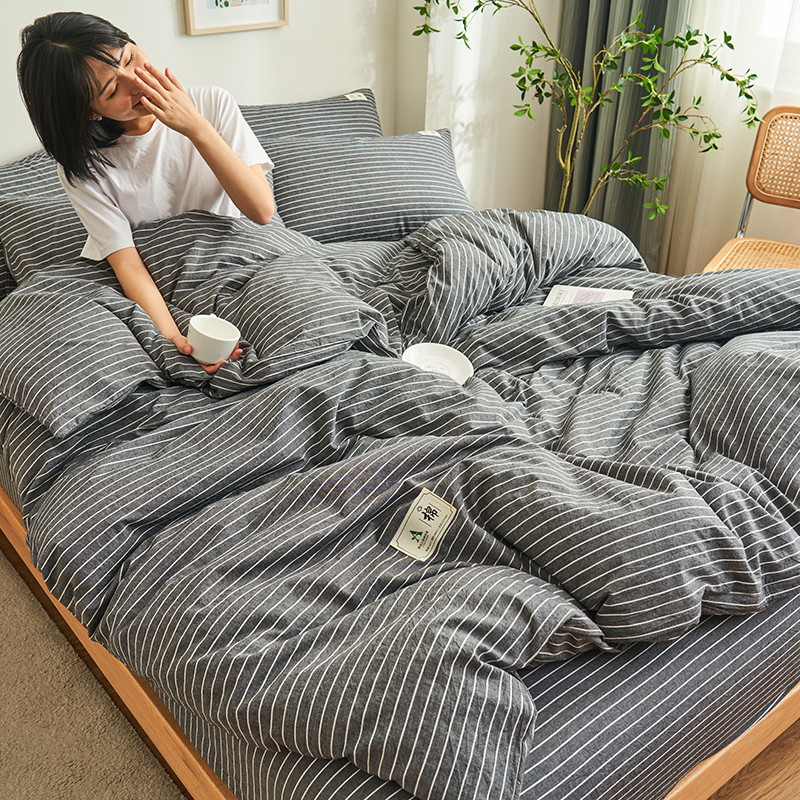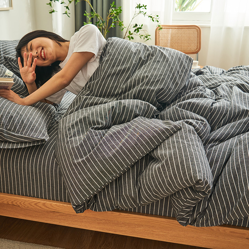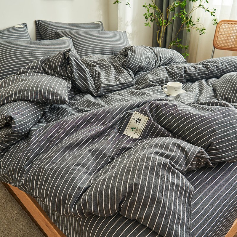 21度C 2023新款A类全棉色织水洗棉单品被套 细条灰