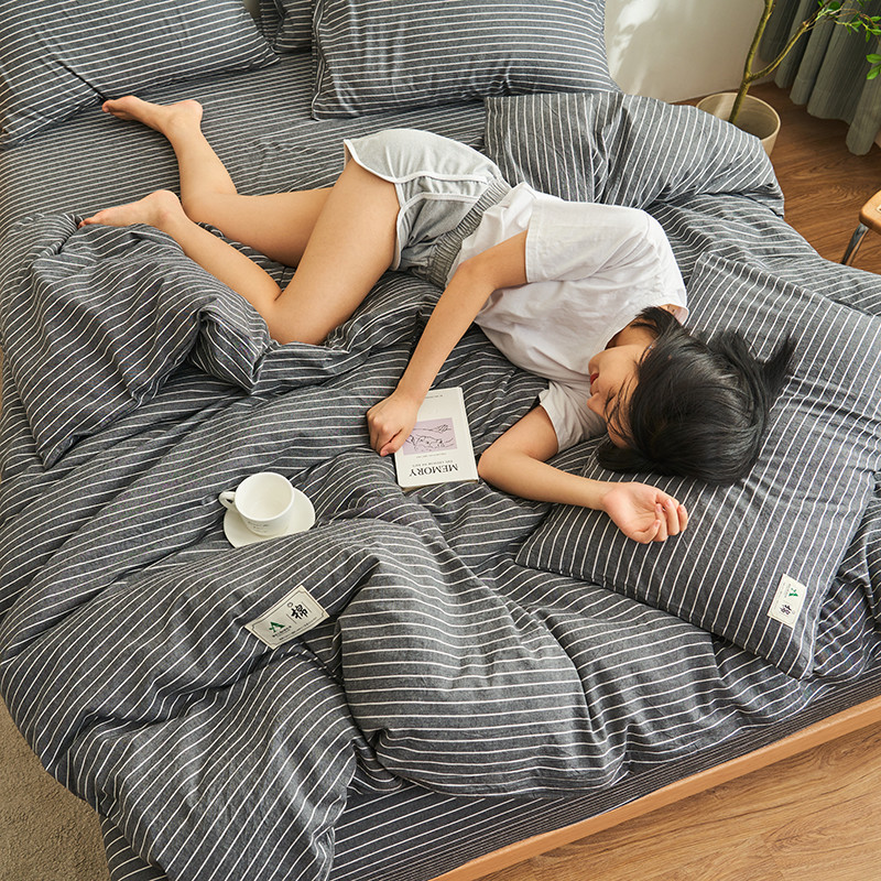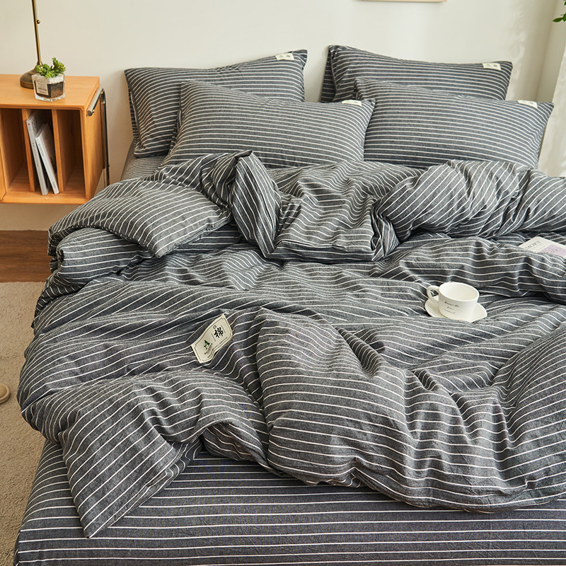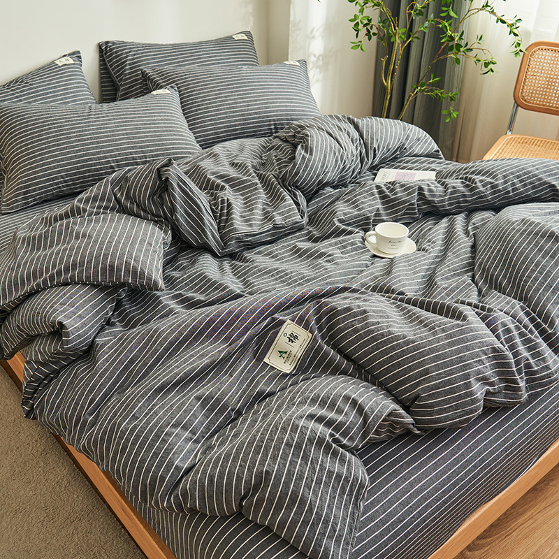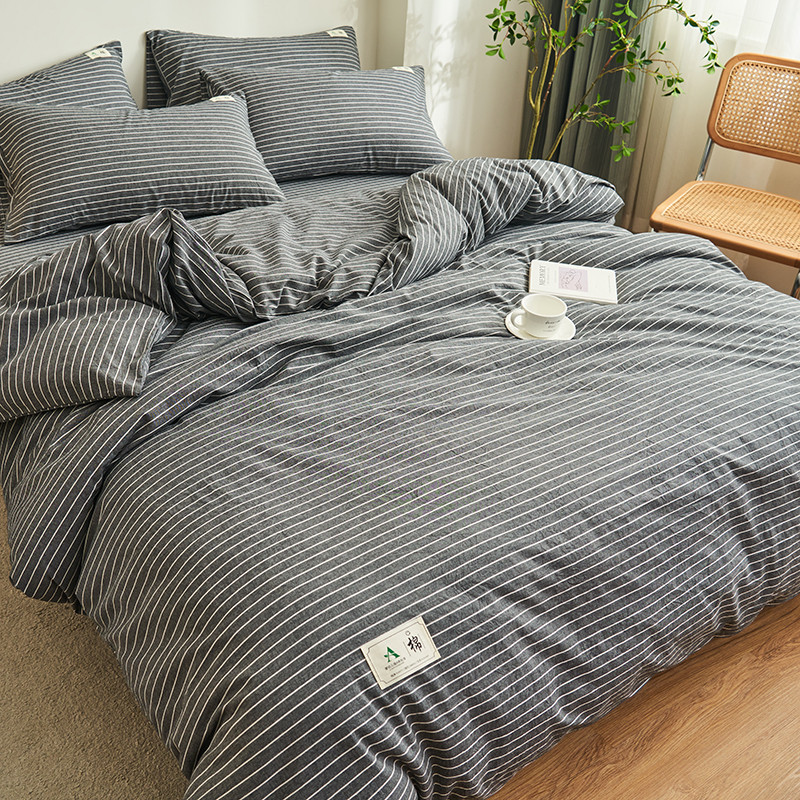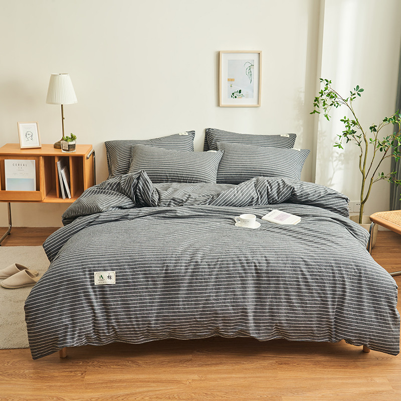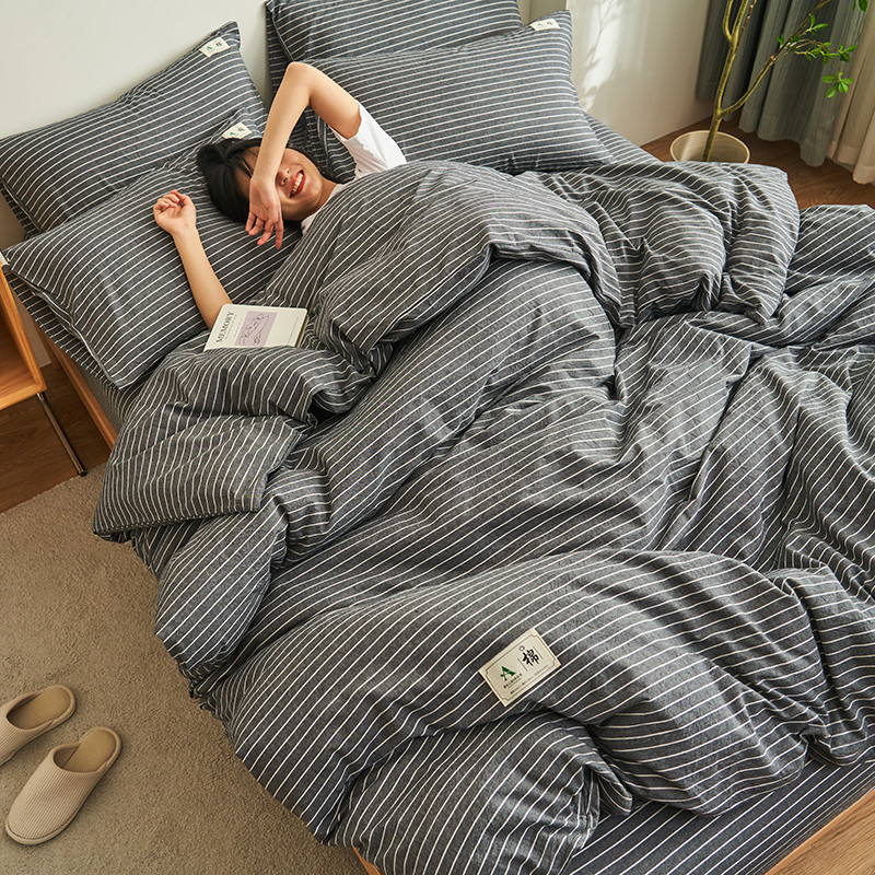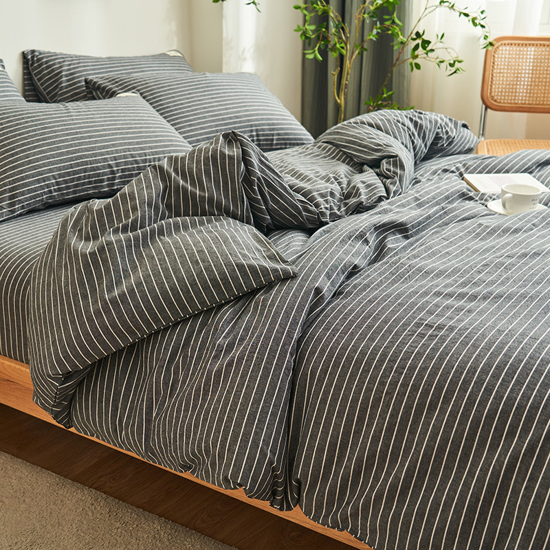 21度C 2023新款A类全棉色织水洗棉单品被套 细条灰