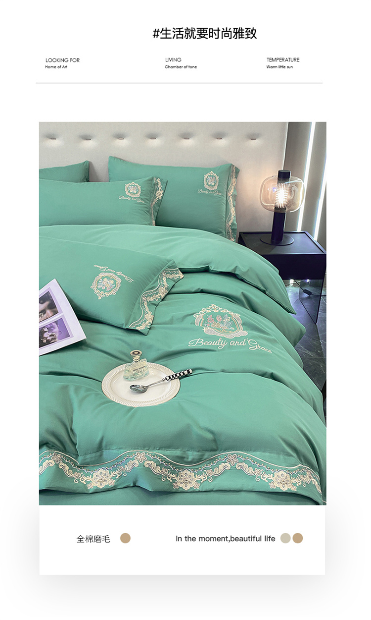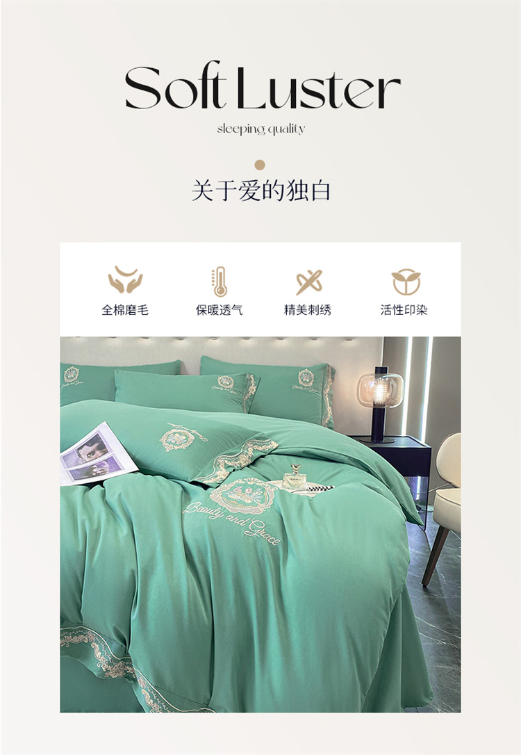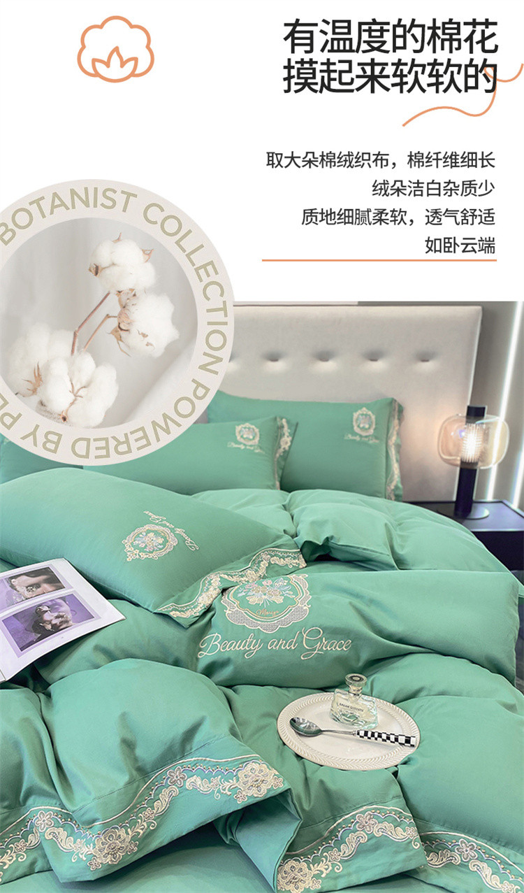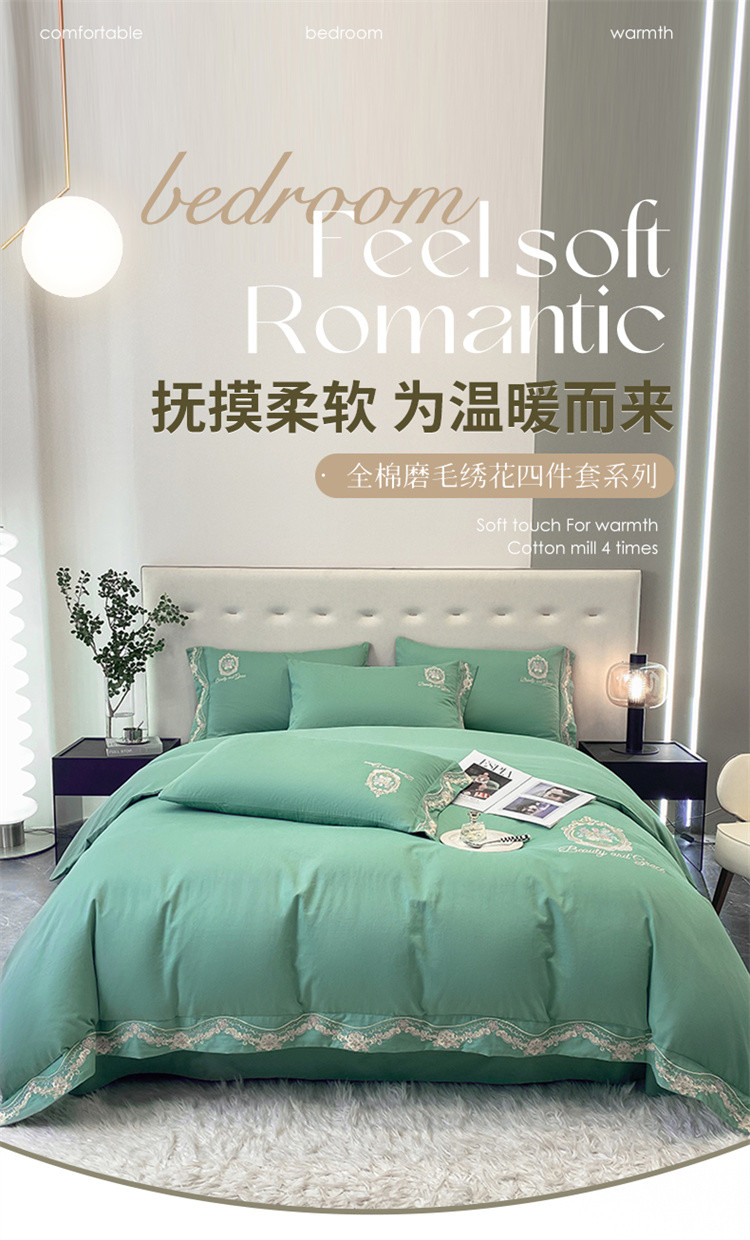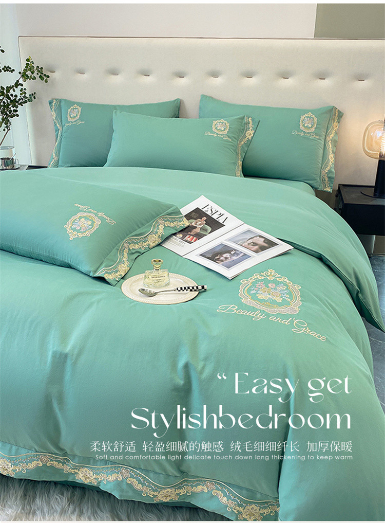 (总)家居1号家纺 2025新款全消光牛奶绒刺绣圣玛丽四件套,圣玛丽-粉豆沙,圣玛丽-果绿,圣玛丽-晴蓝,圣玛丽-绅士灰,圣玛丽-香槟金
