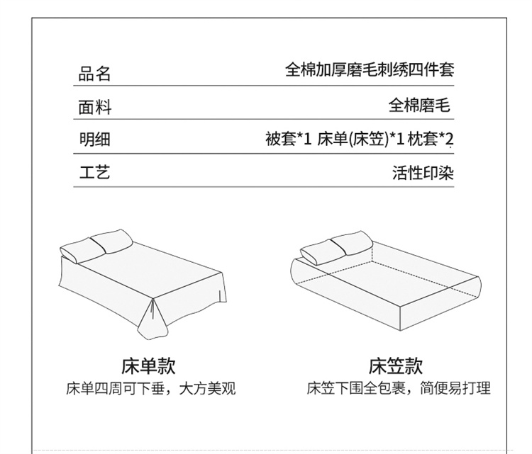 商品名称:冬季新品加厚1长绒棉全棉纯棉磨毛刺绣四件套床单被套爆款