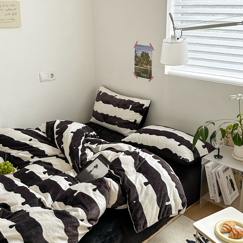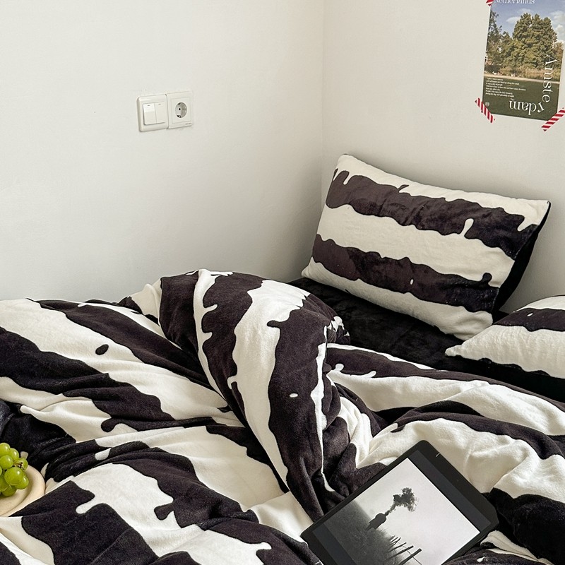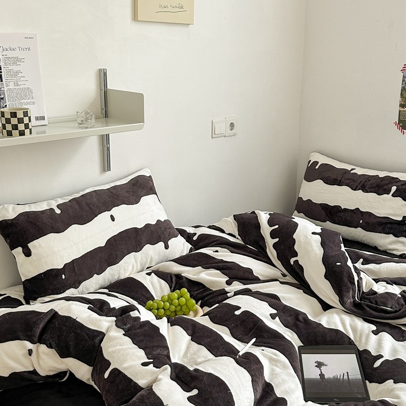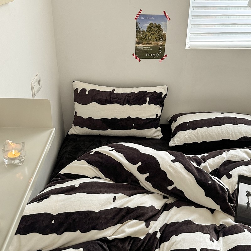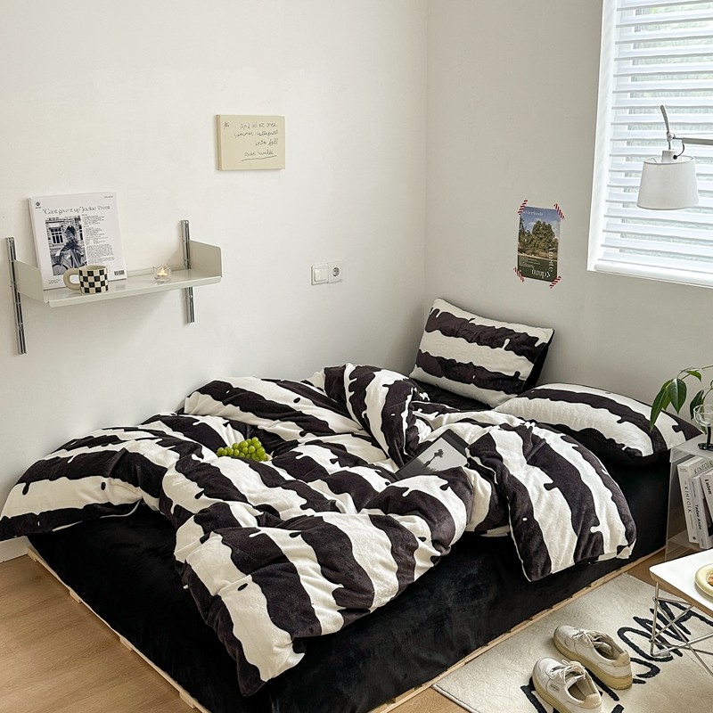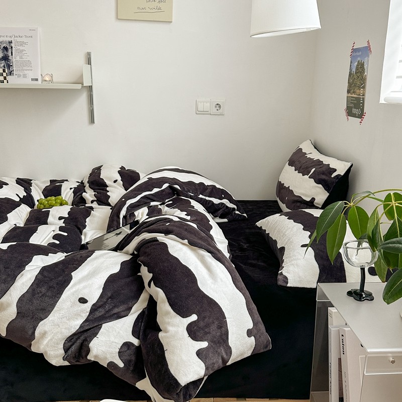 柚子 2022新款现代空间牛奶绒四件套 融化-黑
