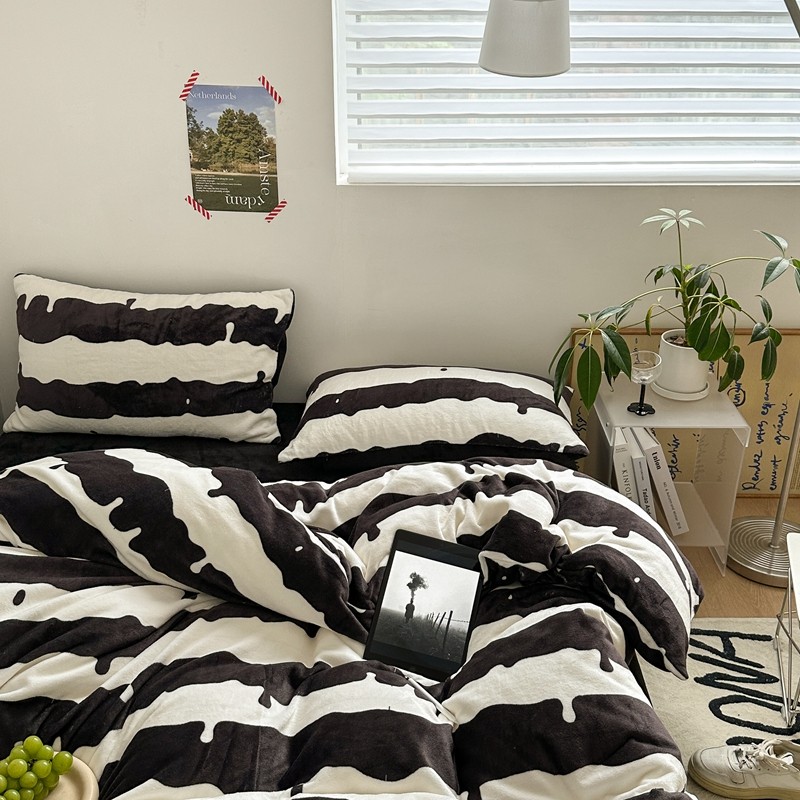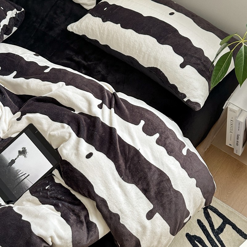 商品名称:柚子 2022新款现代空间牛奶绒四件套 融化-黑