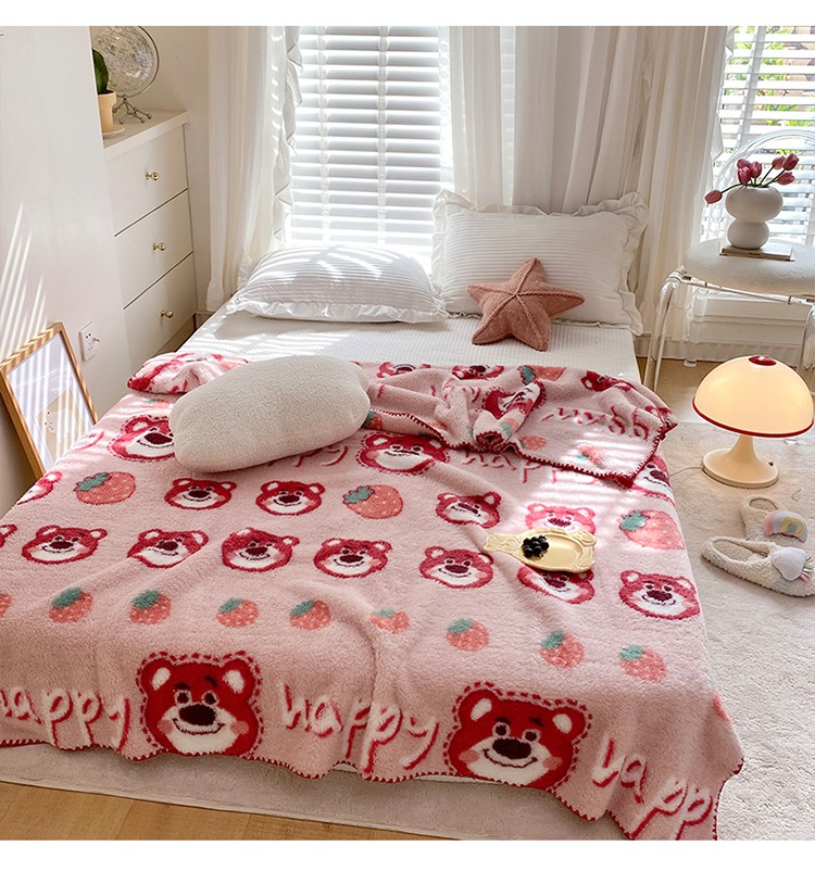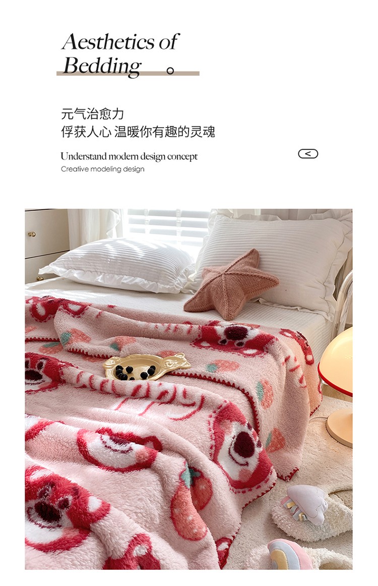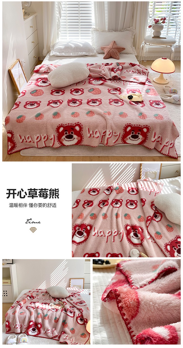 商品名称:眠屿 2022新款舒绒棉高克重单层双面毛毯 开心草莓熊